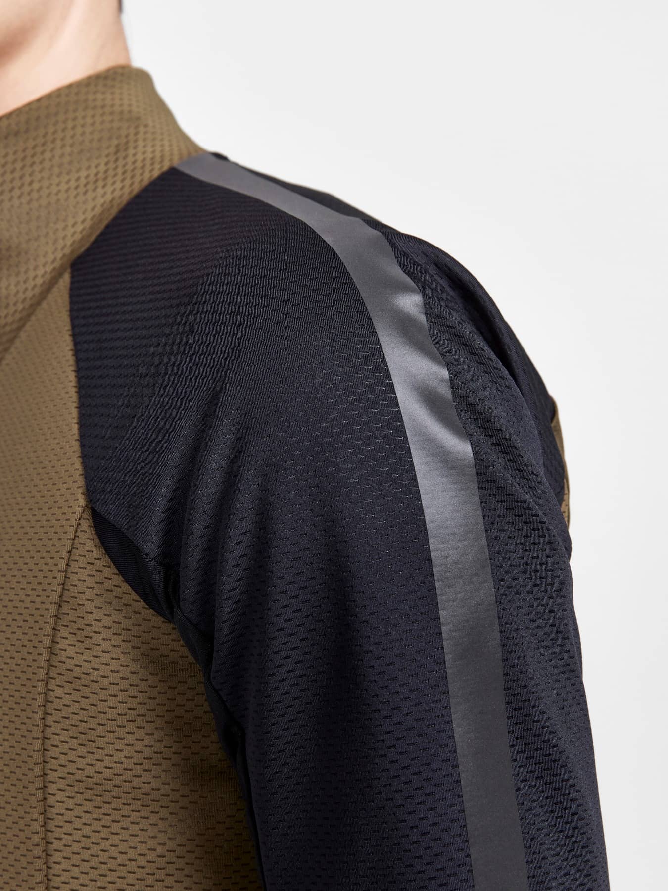 Torso vorne: Vorne 90% Polyester 10% Elastan, Mitte 100% Polyurethan Rückseite 79% Polyester 21% Elastan, Torso hinten: 87% Polyester, 13% Elastan