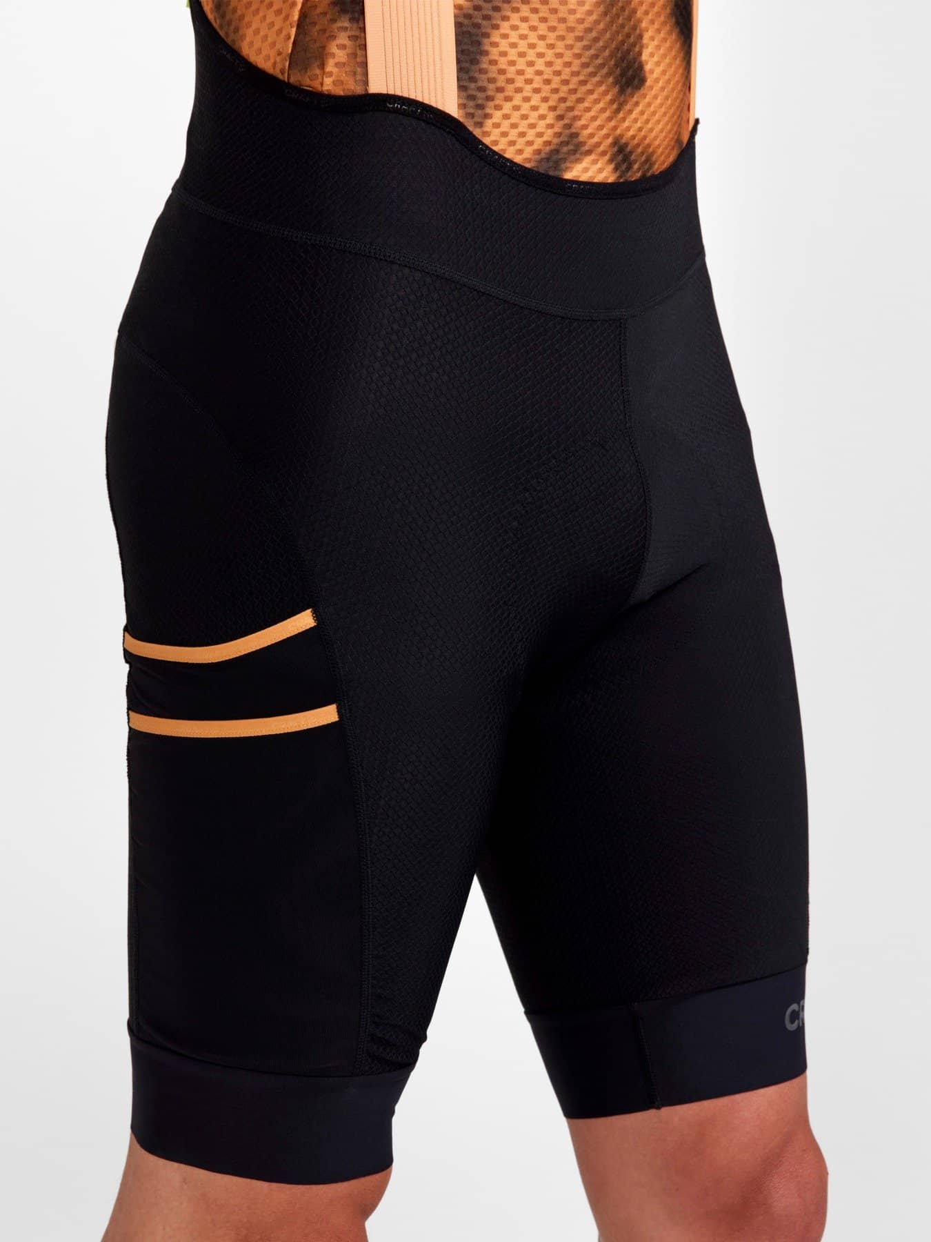 Pro-Level Bib-Shorts aus elastischem, strapazierfähigem Lycra® Sport Energy-Gewebe für intensive Ausfahrten. Taschen seitlich an den Beinen und am Rücken. Ausgestattet mit unserem besten Pad, dem Infinity C1 Pad.
