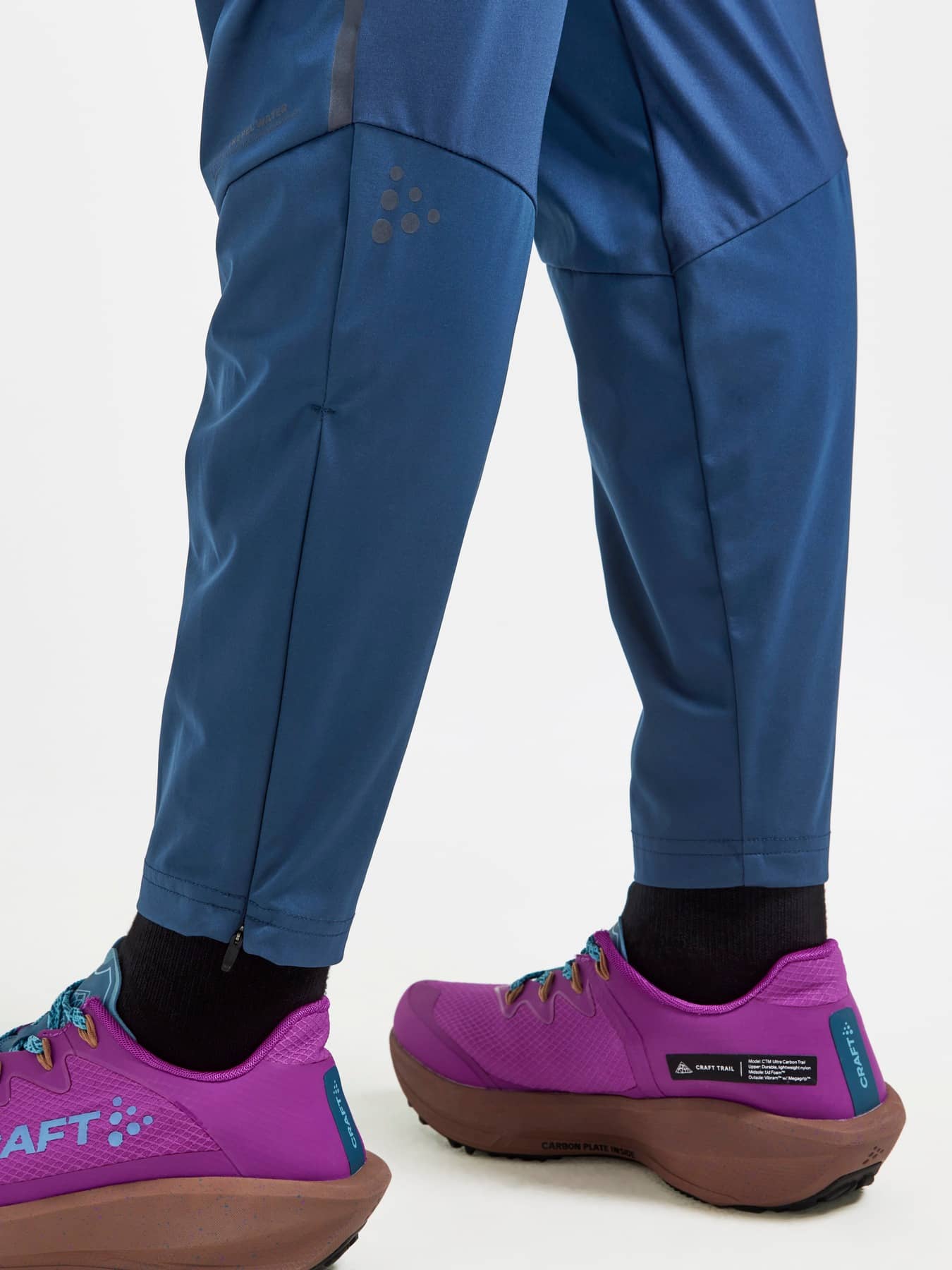 Ensiluokkaiset juoksuhousut, joissa on hengittävä, tuulen- ja vedenpitävä 3-kerroksinen Ventair-kangas edessä ja säärissä(WP 15 000 / MVP 10 000). Joustava materiaali takana optimaalisen istuvuuden ja tehokkaan kosteudensiirron takaamiseksi. Housuissa on vetoketjulliset etutaskut, vetoketjut lahkeensuissa ja heijastavat yksityiskohdat.