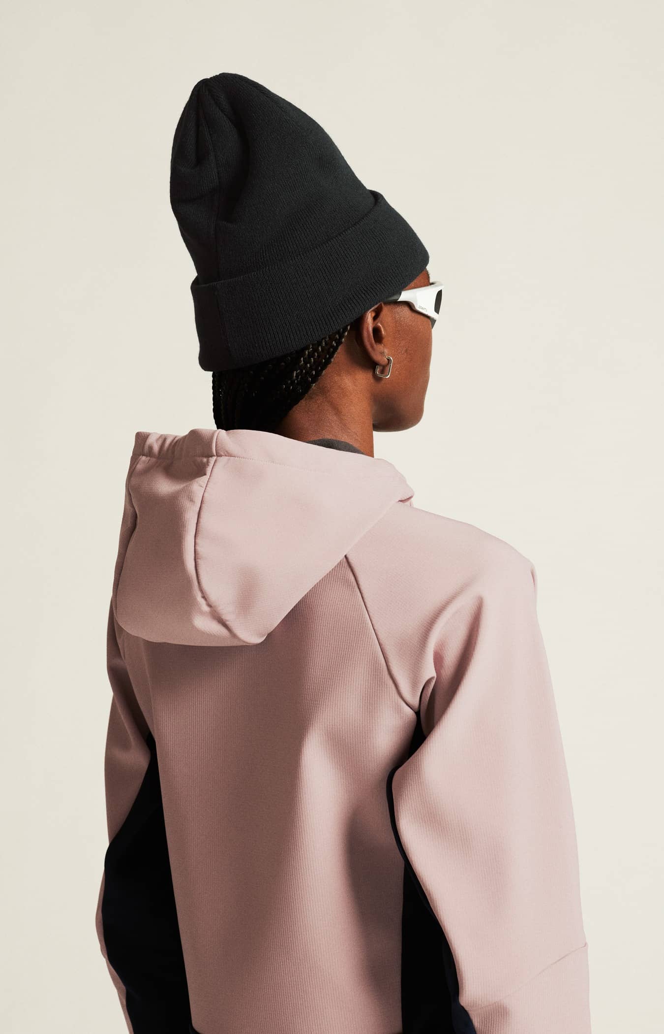 • Hood with adjustable elastic drawcord for protection against cold wind