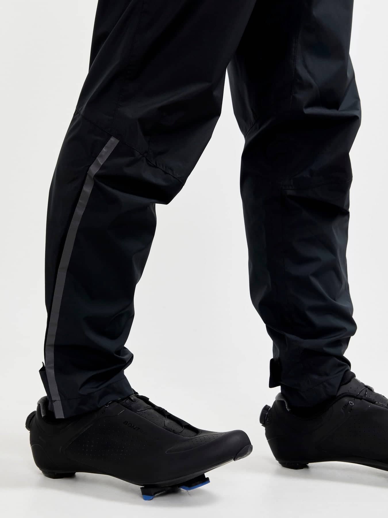 Pantalon cycliste très technique Homme - Empiecements rétro-refléchissants pour une meilleure visibilité et sécurité • Coupe-vent • Imperméabilité 8000 mm / Respirabilité : 8000 grs/m2 • Coutures thermo-soudées • Inserts réflective • Taille + chevilles réglables velcro • 2 poches devant