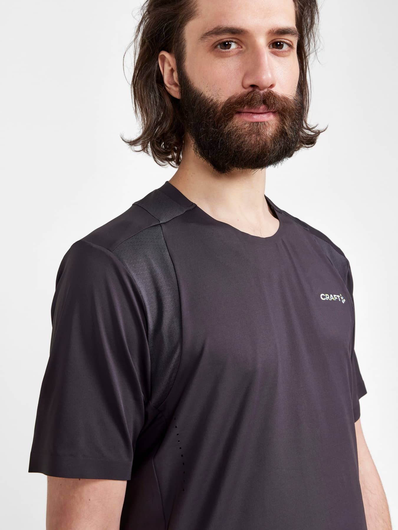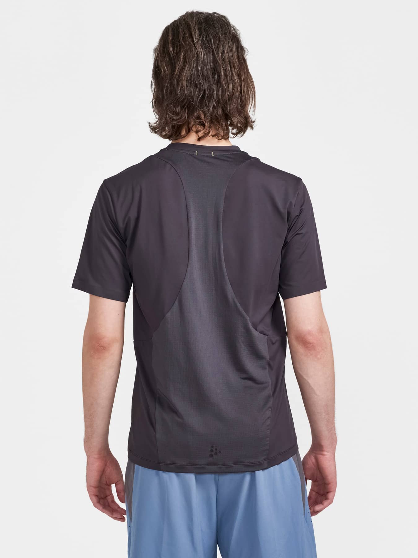 The tee is made of a stretchy and quick-drying fabric from recycled polyester and feature laser-cut perforation and mesh details for enhanced ventilation. In addition, the tee's ergonomic design combined with its great elasticity ensures excellent freedom of movement and optimal comfort. Taped at front collar and sleeve ends for a clean look.