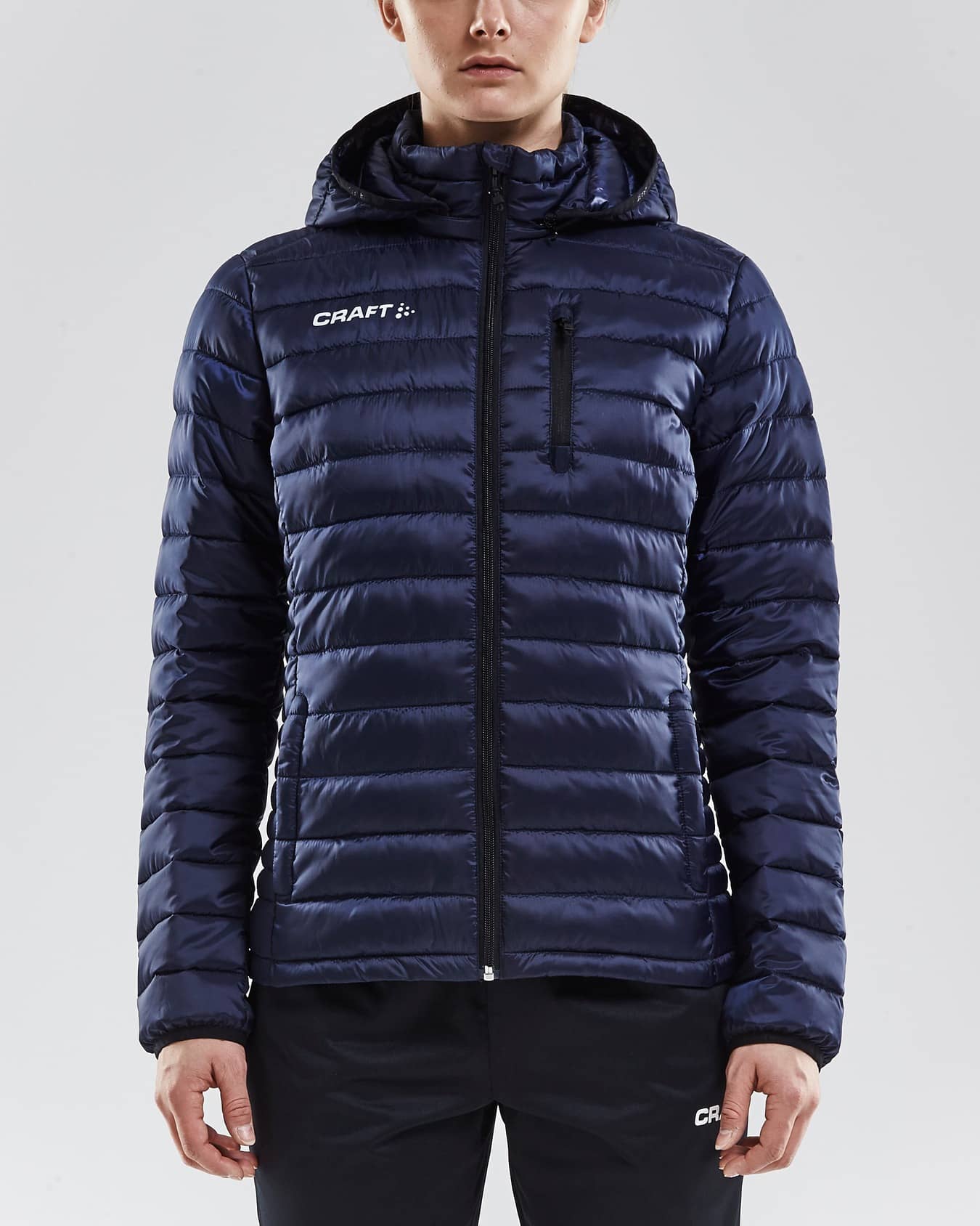 Padded, wind- and water-resistant jacket designed for warm-ups as well as more formal occasions. Features removable hood, zippered chest pocket and adjustable bottom hem. Padding made of microfiber with good thermal properties. Jacket is a good addition for every occasion, for both corporate- and sportevents.