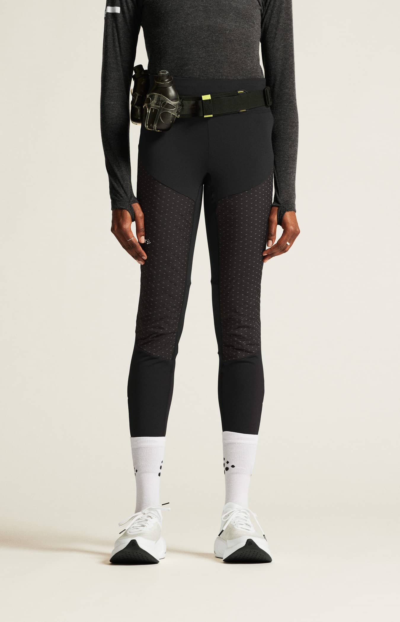 ADV SubZ Lumen Padded Tights 4 är högfunktionella löpartights med vadderad front och reflekterande print för intensiv träning i kalla vinterförhållanden. Dessa tekniskt avancerade tights har vindavvisande Ventair® Wind och tunn vaddering på framsidan som värmer även när det är riktigt kallt ute. Borstad trikå av återvunnen polyester och elastan upptill fram, upptill bak och i benens nedre del ger värme och komfort. Bred, elastisk resår i midjan för optimal passform och hög komfort.