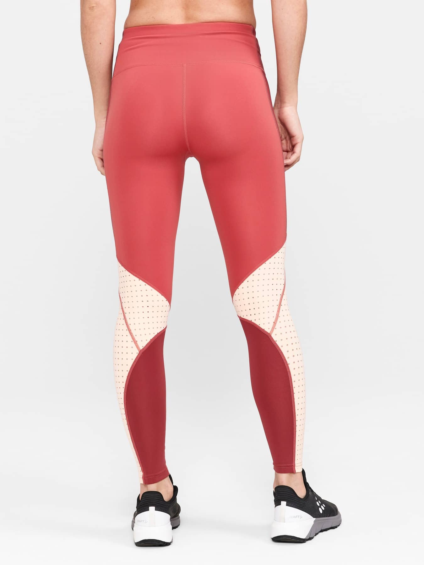Plagget är gjort av ett mjukt, elastiskt och snabbtorkande trikåmaterial av återvunnen polyester och elastan som ger effektiv fukttransport och bra rörelsefrihet. Träningstightsen har även hög midja med bred resår för bra passform och optimal komfort