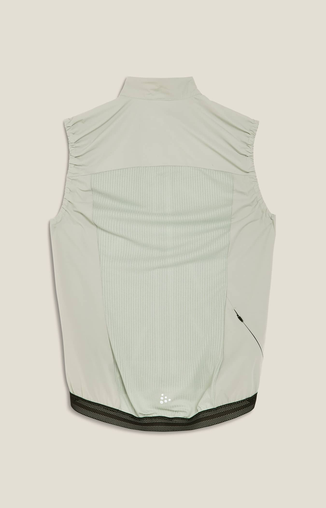 Diese technisch fortschrittliche Fahrradweste aus hochfunktionellen, recycelten Materialien verfügt über einen belüfteten und elastischen Netzrücken, der eine hervorragende Passform und ein ausgezeichnetes Körperwärmemanagement bei intensiven Fahrten gewährleistet. Darüber hinaus sorgt ein Gummizug mit Silikongriff am unteren Saum dafür, dass die Weste an Ort und Stelle bleibt, während reflektierende Details für bessere Sichtbarkeit sorgen. Lässt sich leicht in einer Trikottasche verstauen.