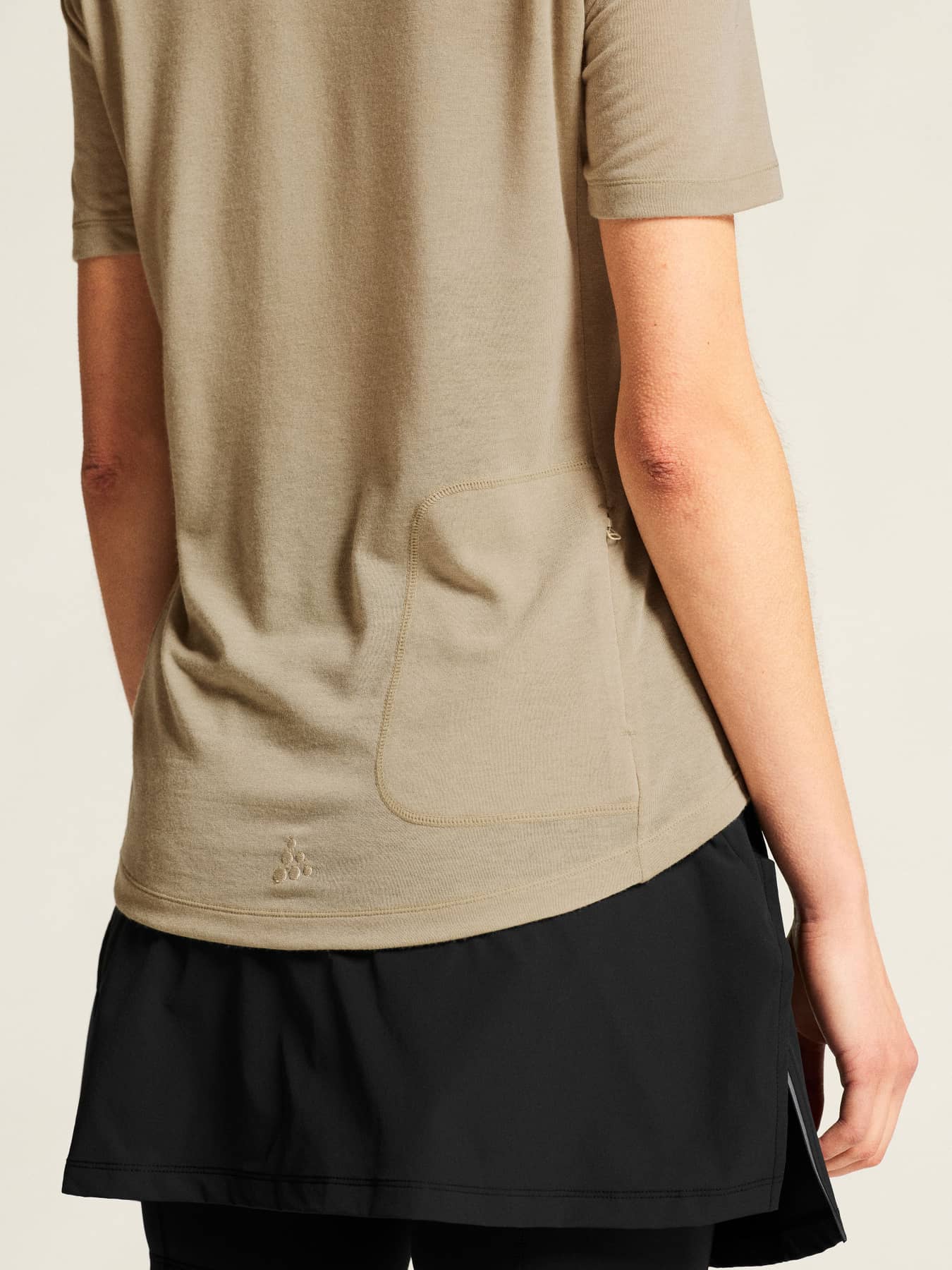 Dieses vielseitige Fahrrad-T-Shirt besteht aus einem weichen, elastischen Material aus Merinowolle und recyceltem Polyester. Die Merinowolle sorgt für Wärme, während das Polyester einen effizienten Feuchtigkeitstransport gewährleistet. Darüber hinaus verfügt das Kleidungsstück über eine Seitentasche mit Reißverschluss und einen leicht verlängerten Rücken. Entworfen für den Weg zur Arbeit, E-Bike-Touren und alltägliche Fahrten.
