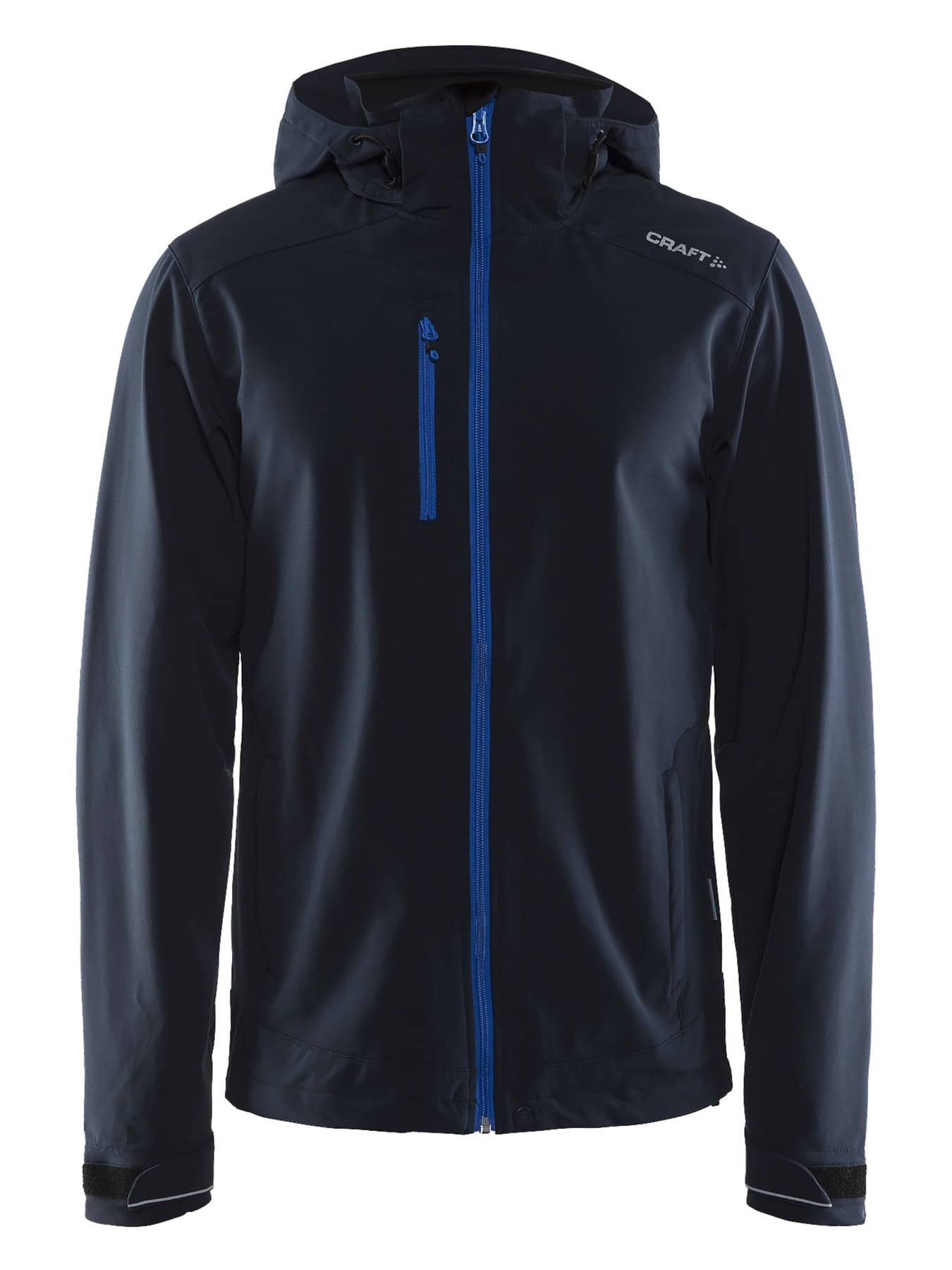 Sehr leichte Softshelljacke aus winddichtem und wasserabweisendem 3-Lagen VentAirTM Material. Abnehmbare Kapuze, Brusttasche mit Reißverschluss, 2 Fronttaschen mit Reißverschluss und verstellbare Ärmelbündchen (Klettverschluss).