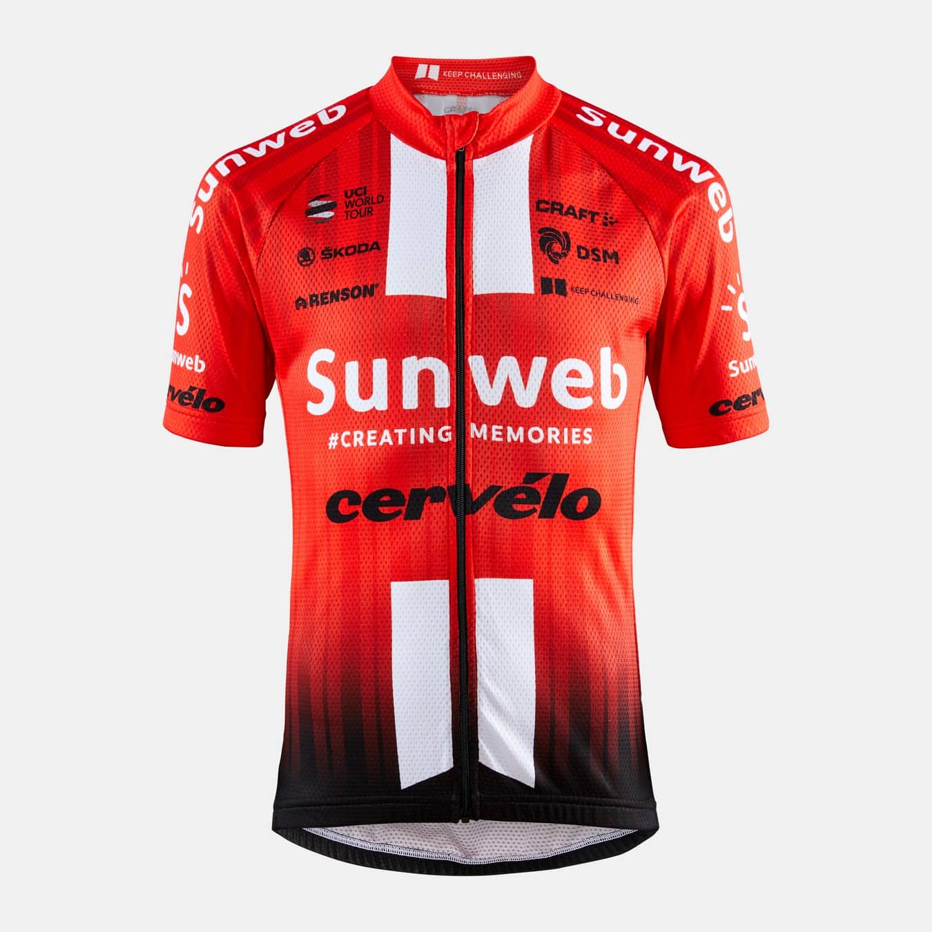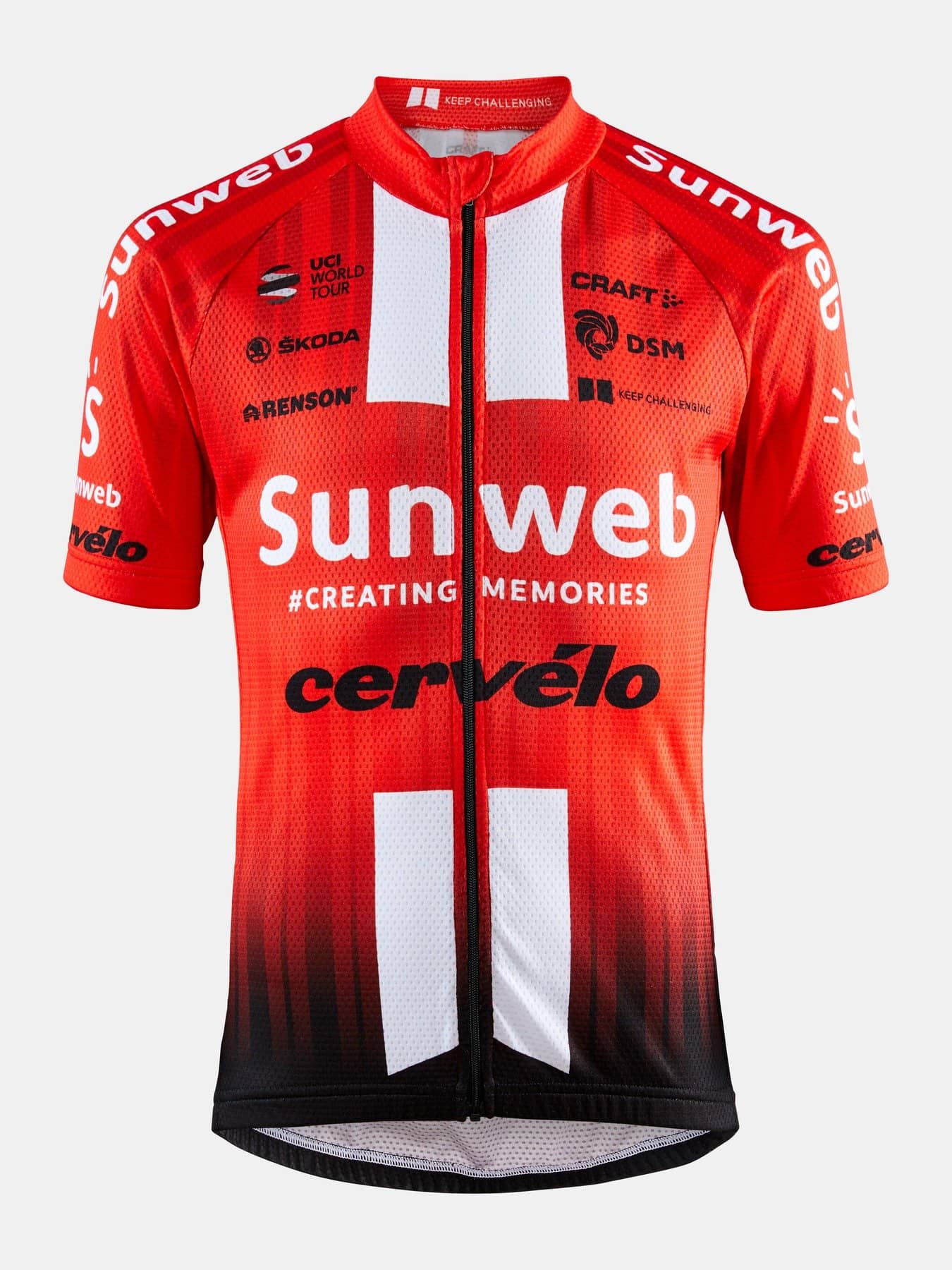 Team Sunweb Replica Jersey is a functional full-zip bike jersey made of soft and stretchy fabric for excellent fit and comfort. Efficient moisture transport ensures great body-temperature management while. silicone gripper at lower back keeps the jersey in place. Comes with three back pockets.
