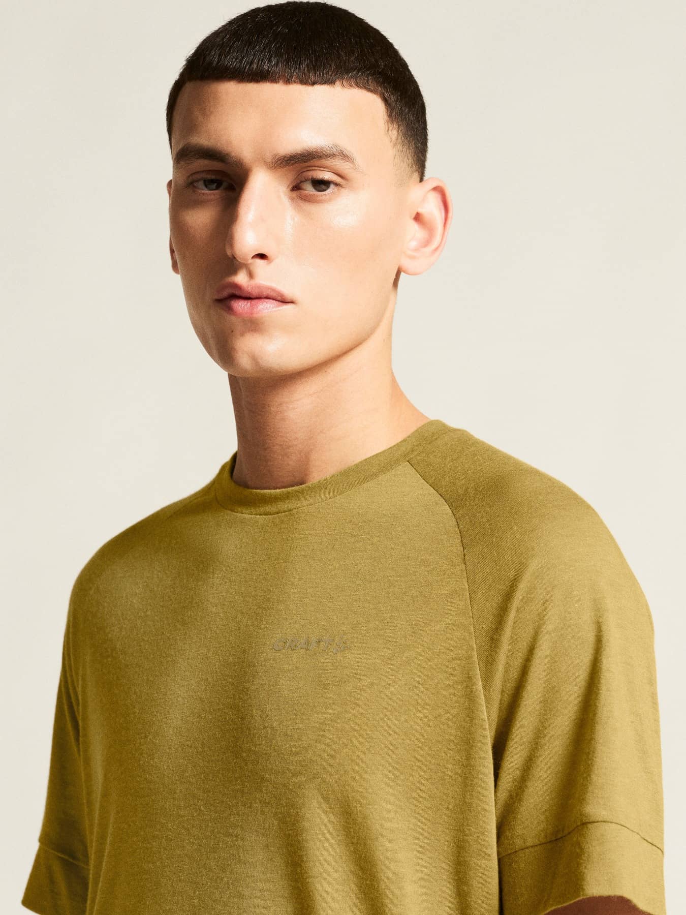 T-Shirt mit Rundhalsausschnitt und Raglanärmeln. Angenehm wärmender Materialmix aus recyceltem Polyester und Wolle.