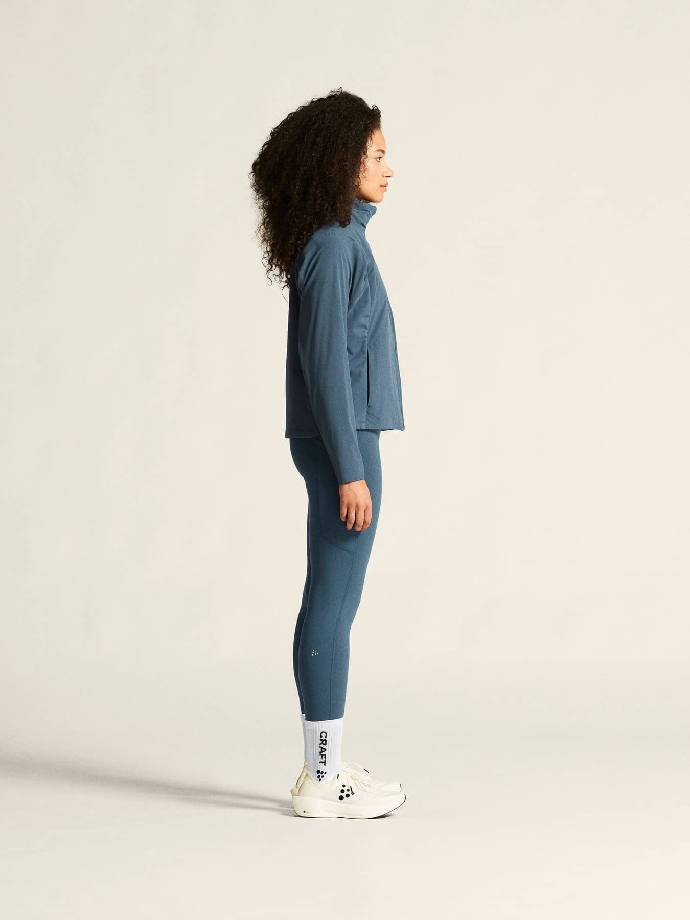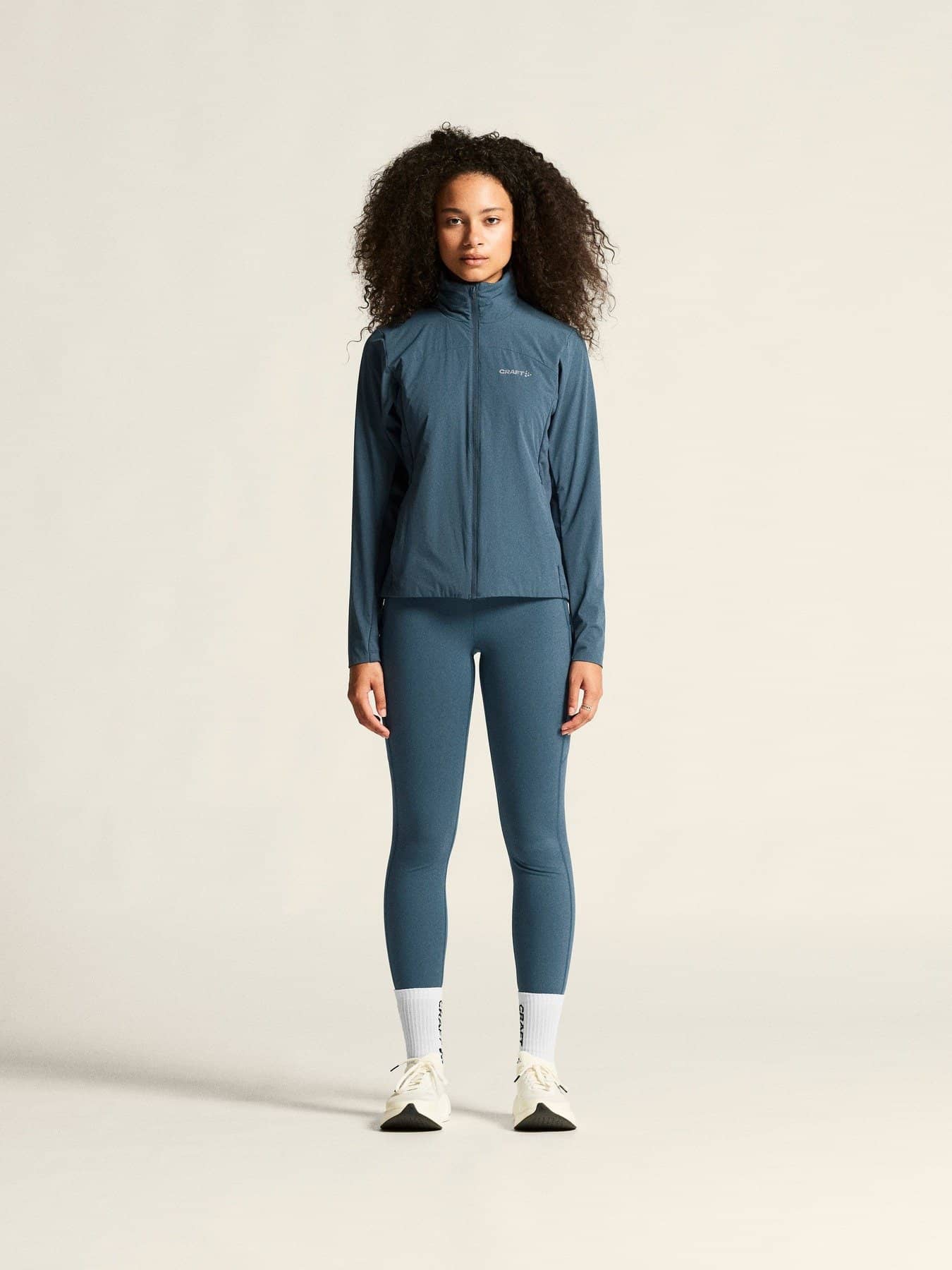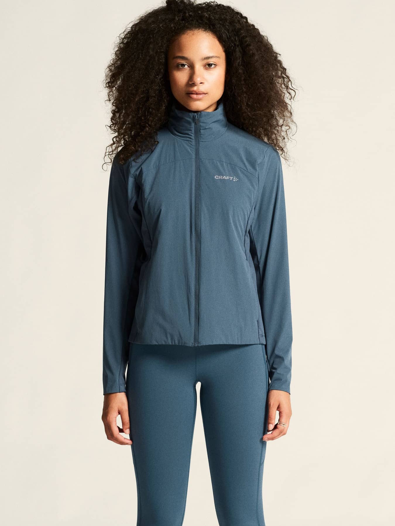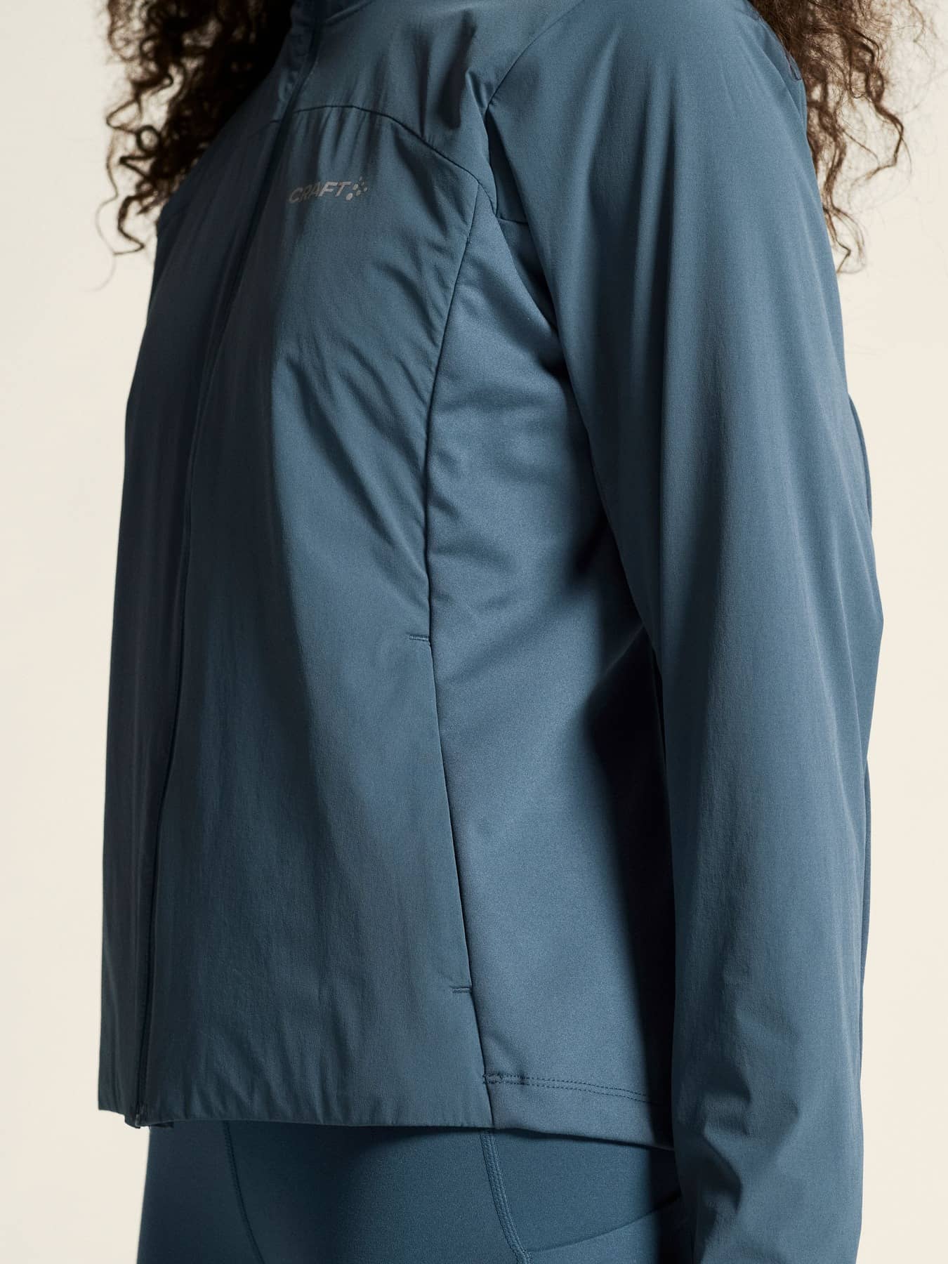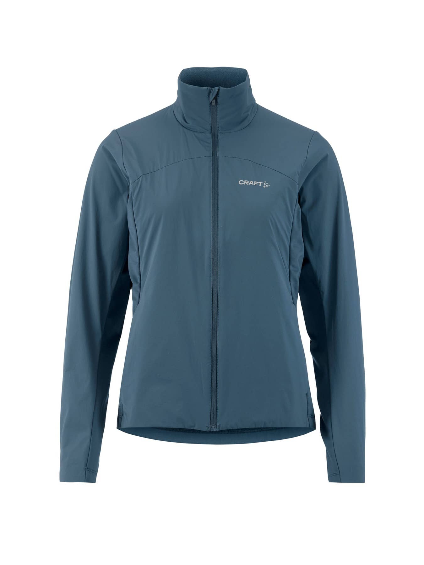 Warm multi-sport jacket with quilted padding and wind-protective fabric at front and back. Two zip side pockets at front and elastic at back for optimal fit.. Reflective print for enhanced visibility.