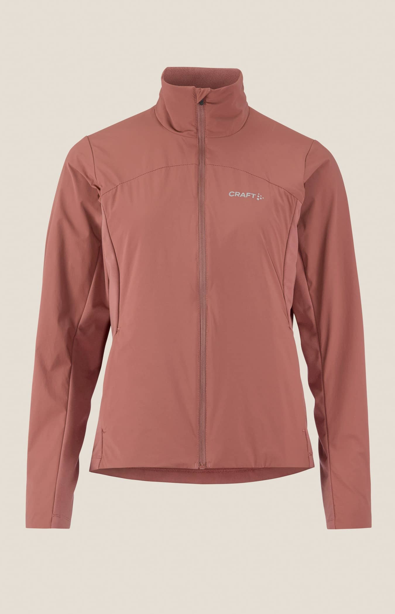 Warm multi-sport jacket with quilted padding and wind-protective fabric at front and back. Two zip side pockets at front and elastic at back for optimal fit.. Reflective print for enhanced visibility.