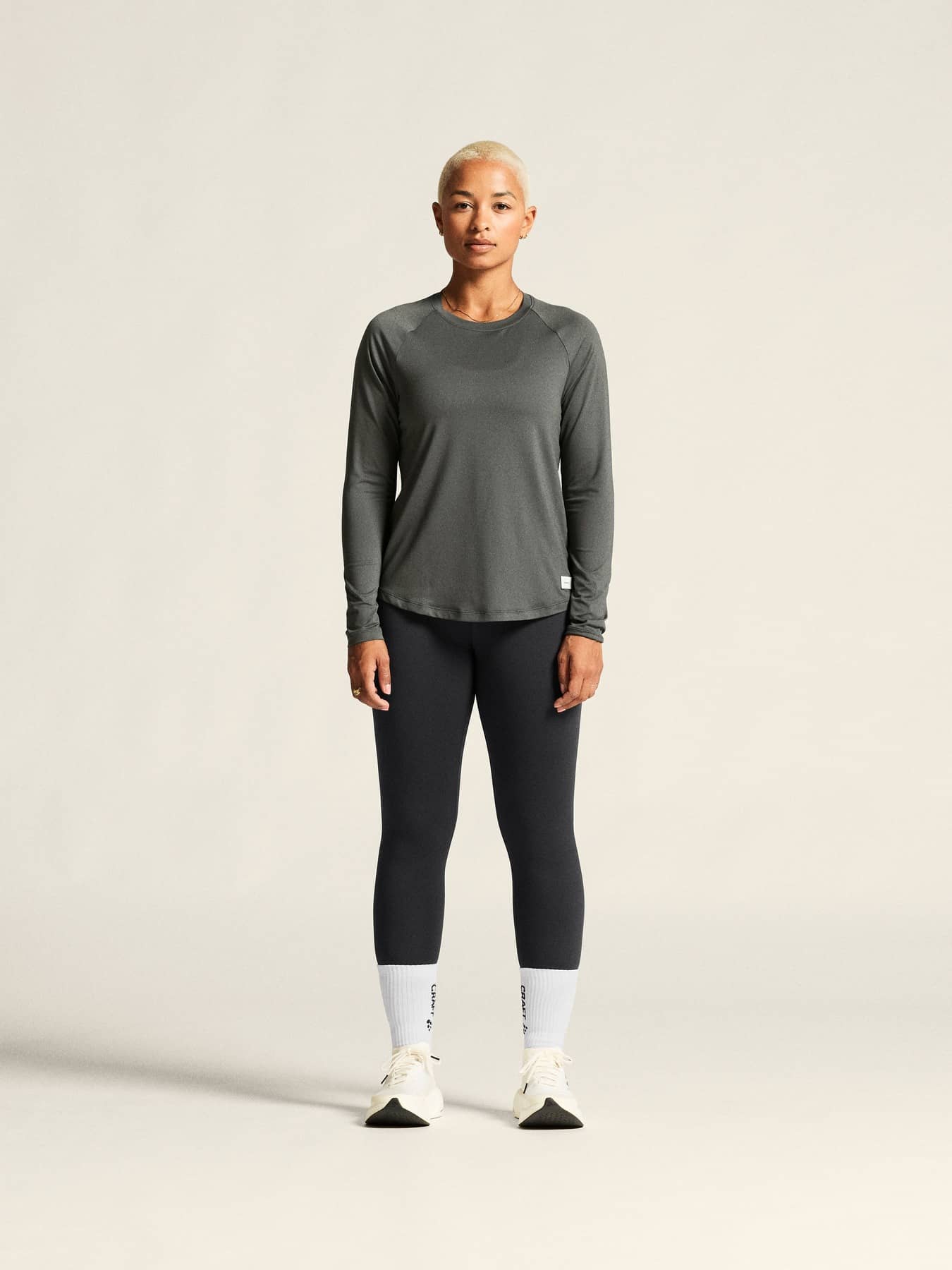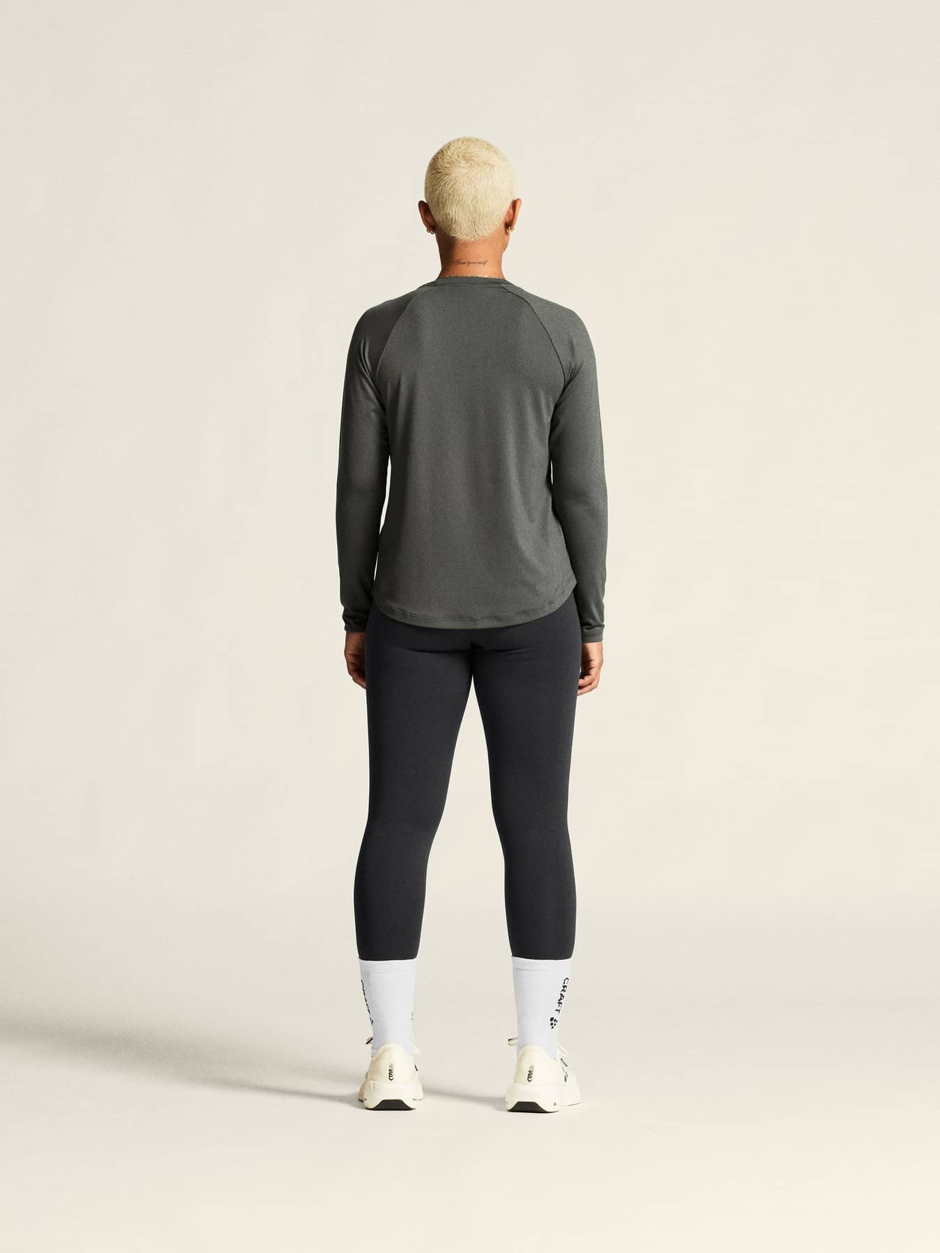 Le t-shirt Collective LS Tee est un t-shirt d'entraînement à manches longues exceptionnellement doux avec un design intemporel qui passe sans effort des séances d'entraînement à la vie quotidienne - vous assurant de rester à l'aise avec élégance tout au long de la journée. Conçu pour un confort ultime, ce vêtement d'entraînement polyvalent est confectionné à partir d'un mélange de polyester extensible avec une surface peau de pêche, offrant une sensation luxueusement douce et une excellente gestion de la température corporelle. Il est également doté de manches raglan et d'un bas arrondi pour une silhouette féminine, incarnant un savoir-faire exquis dans chaque détail. • Tissu extensible très doux fabriqué à partir de polyester recyclé et d'élasthanne • Surface peau de pêche • Manches raglan • Bas arrondi • Coupe classique