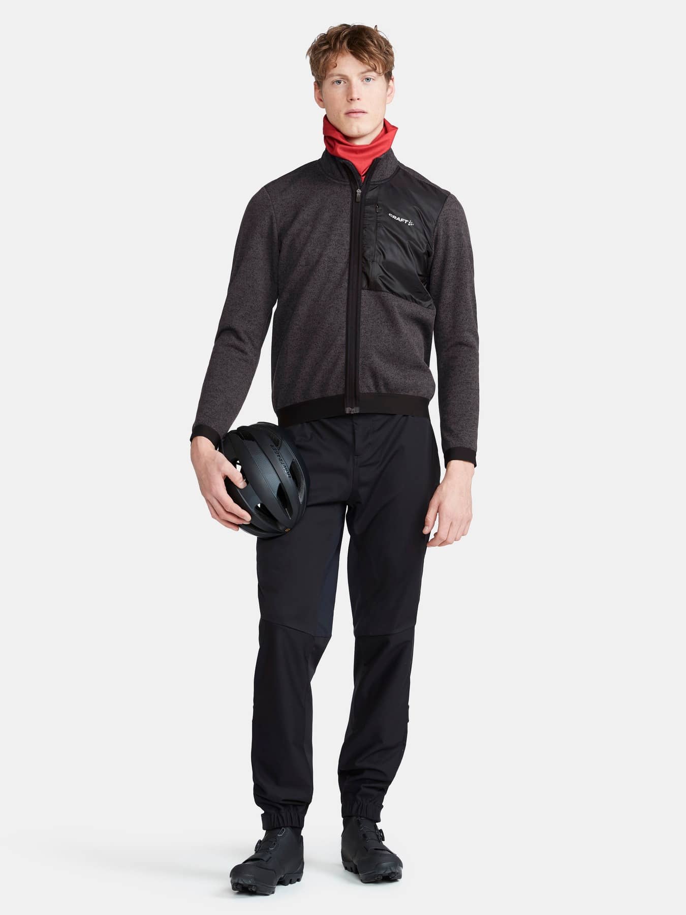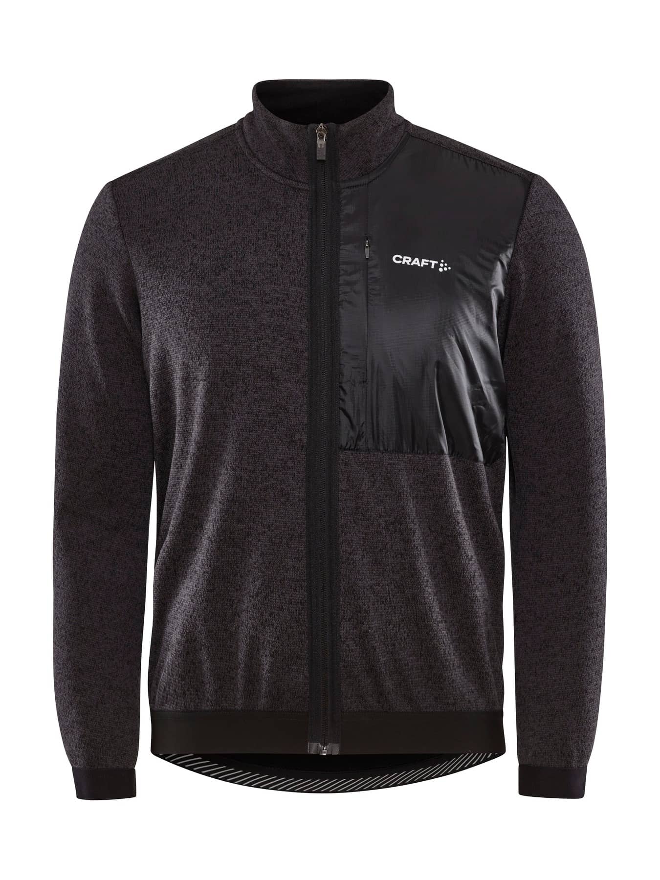 Warme Fahrradjacke aus winddichtem und wasserabweisendem 3-Lagen-Mateial mit gestrickter Oberfläche aus recyceltem Polyester. Gemacht für kalte Herbst- und Winterfahrten.