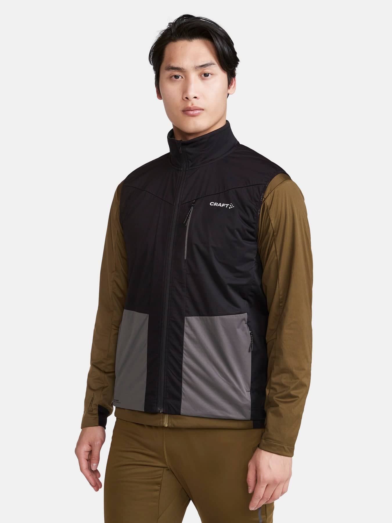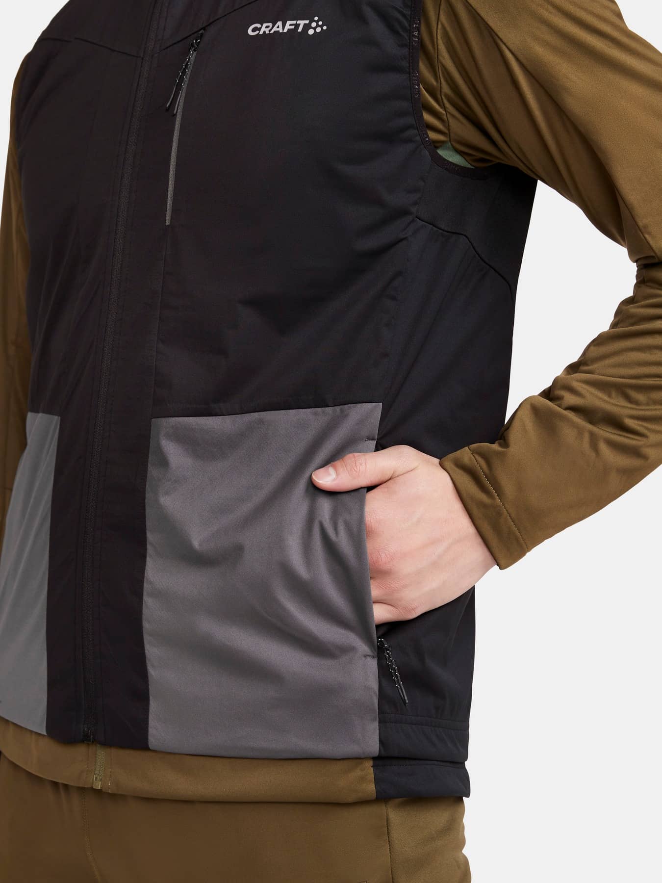 Diese isolierende und elastische Langlaufweste hat ein wind- und wasserdichtes Material an der Vorderseite und an den Ärmeln sowie angerauten Polyester-Jersey am Rücken, der die Körpertemperatur optimal reguliert. Das dünne und glatte Gitter-Fleece-Futter auf der Vorderseite bildet Luftpolster, die für zusätzliche Isolierung sorgen und gleichzeitig einen effizienten Feuchtigkeitstransport gewährleisten. Die Weste hat zwei Seitentaschen mit Reißverschluss und Mesh-Futter, das besonders atmungsaktiv ist, sowie eine Brusttasche mit verdecktem Reißverschluss.