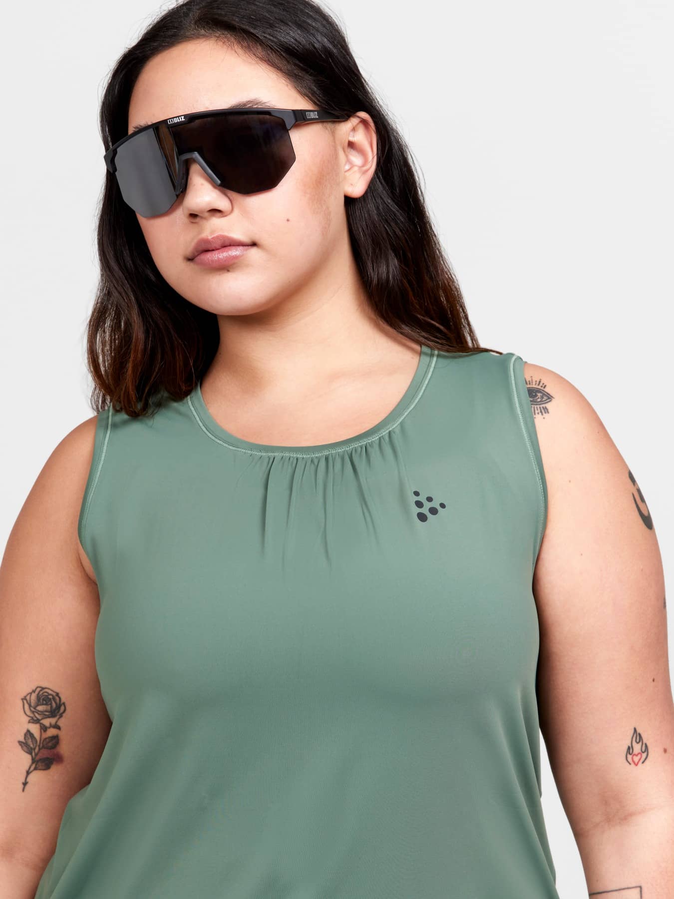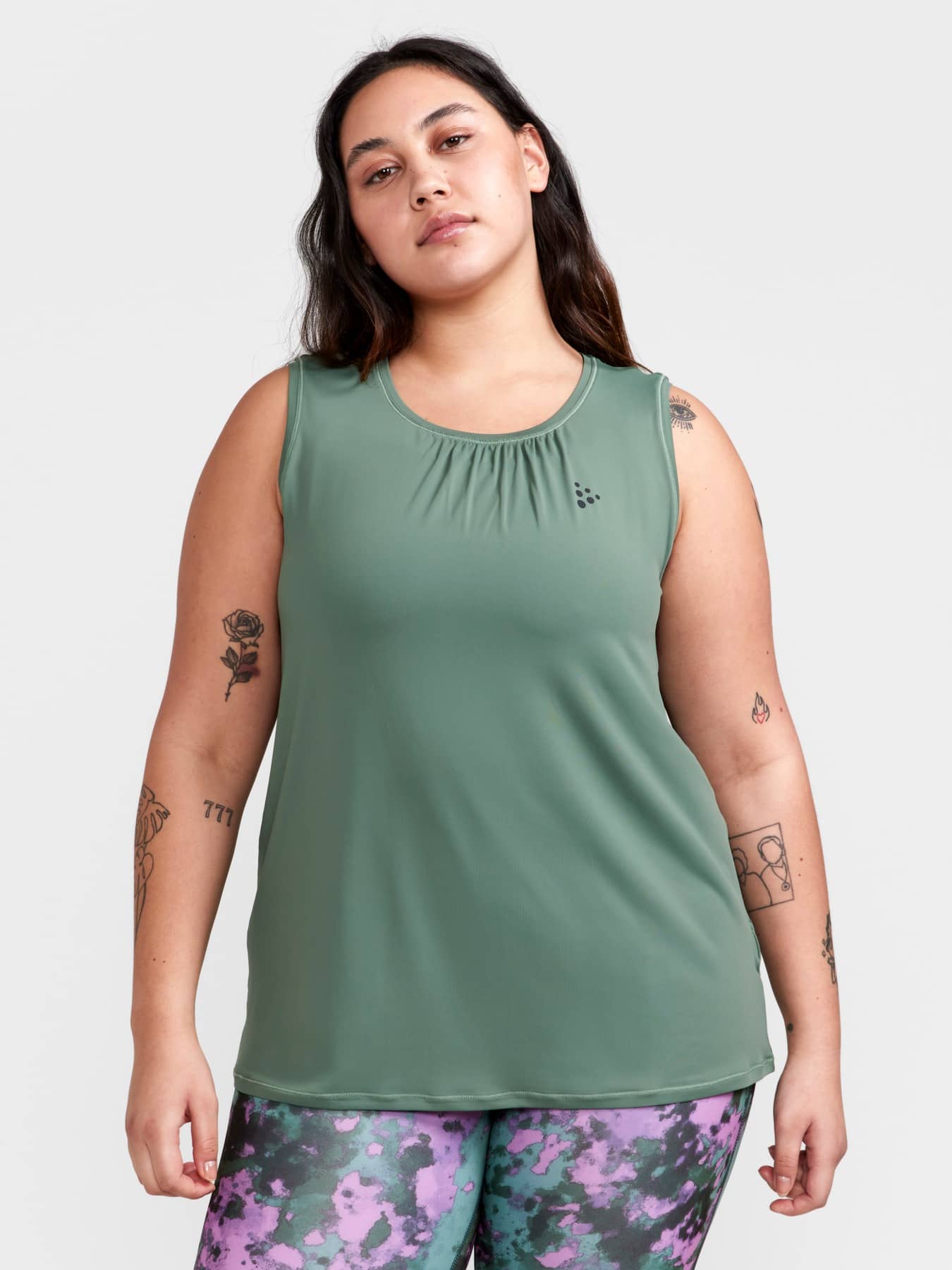 CORE Essence Plus Tank is a plus-size functional training singlet designed for all types of intense everyday workouts. The tank is made of recycled polyester and comes with gathering around neck hole and pleat at back for extra width. • Soft and comfortable jersey fabric made from recycled polyester • Gathering around neck hole • Pleat at back for extra width • Plus-size regular fit