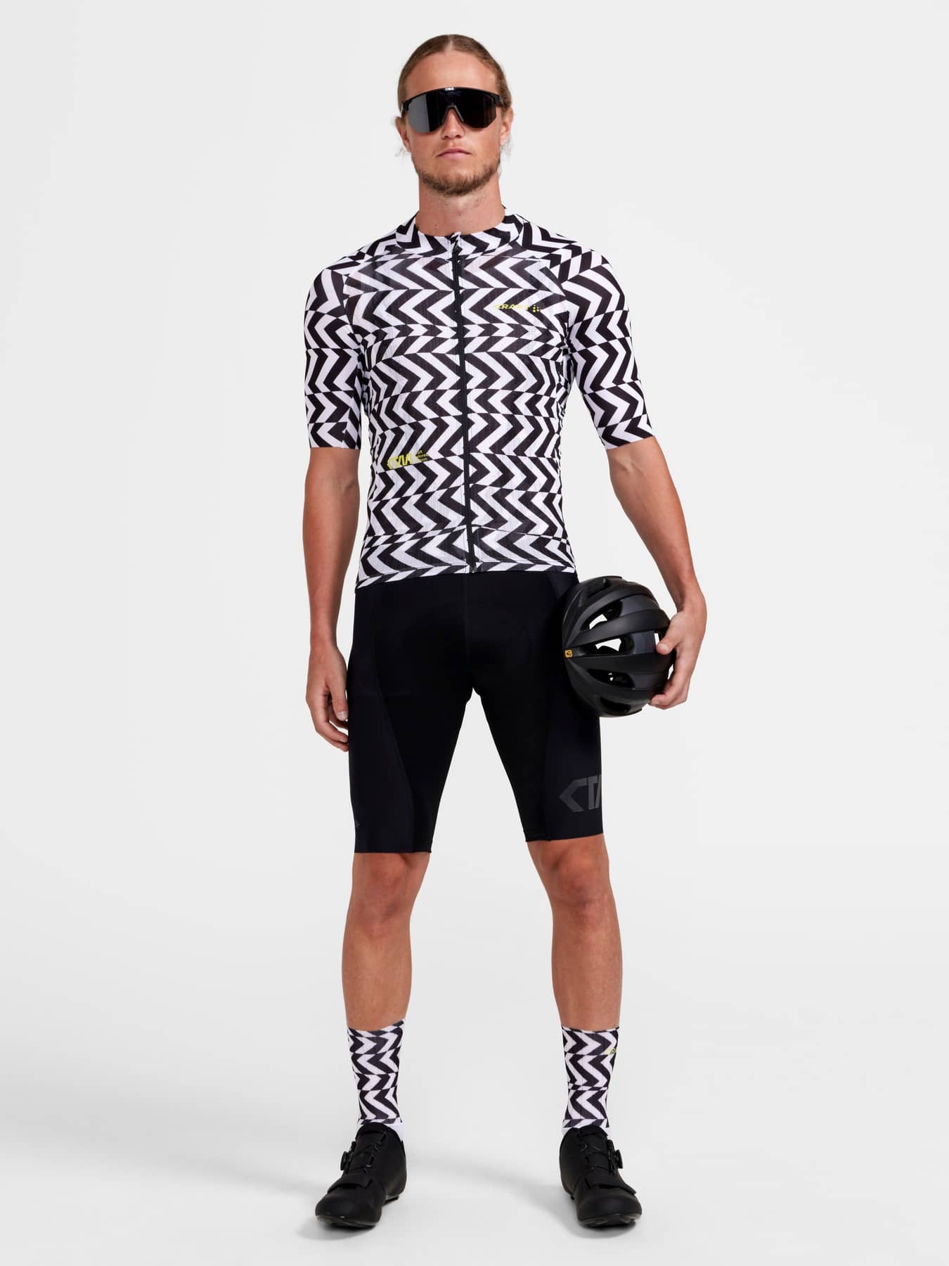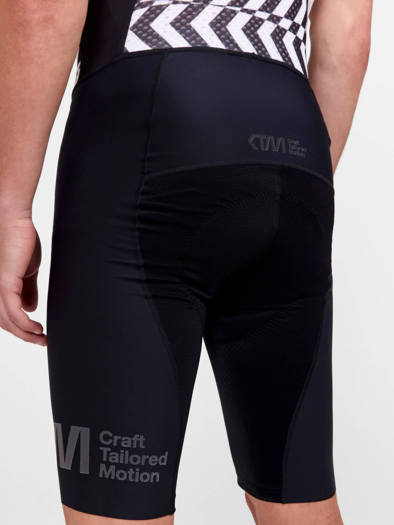 Die CTM Bike Bib Shorts sind hochwertige Trägerhosen mit einem leistungsorientierten, aerodynamischen Design, die sich an anspruchsvolle Fahrer richten, die jeden Aspekt ihres Fahrradtrainings optimieren möchten. Diese technisch ausgereiften Fahrrad-Trägerhosen sind aus Materialien von herausragender Funktionalität hergestellt, darunter Lycra® Sport Energy Body-Control-Gewebe mit 4-Wege-Stretch, das Muskelvibrationen reduziert und die Kraft fokussiert, damit Höchstleistungen erzielt werden können. Die Shorts sind außerdem mit dem anatomisch geformten Infinity C1 Pad Men ausgestattet, das für überragenden Komfort sorgt. In Zusammenarbeit mit Fahrern aus dem Pro Tour-Peloton entwickelt. Für Fahrer, denen nur das Beste gut genug ist. Craft Tailored Motion CTM - CTM steht für Craft Tailored Motion und umfasst die fortschrittlichsten Stoffe und die neuesten Innovationen für die anspruchsvollsten Sportler. Wenn Aerodynamik, überragendes Temperaturmanagement und ein sehr geringes Gewicht für Sie im Mittelpunkt stehen, dann sind Sie hier richtig. • Lycra® Sport Energy Body-Control-Gewebe mit 4-Wege-Stretch • Trägerkonstruktion aus Mesh Superlight-Gewebe für optimale Atmungsaktivität • Strategisch platzierte Nähte für optimale Aerodynamik • Beinabschlüsse mit unbearbeiteten Kanten für verbesserte Aerodynamik • Silikonprint an den Beinabschlüssen verhindert das Verrutschen der Shorts • Rutschfester, strukturierter Sitz verhindert Gleiten - Reflektierende Details - Infinity C1 Pad Men