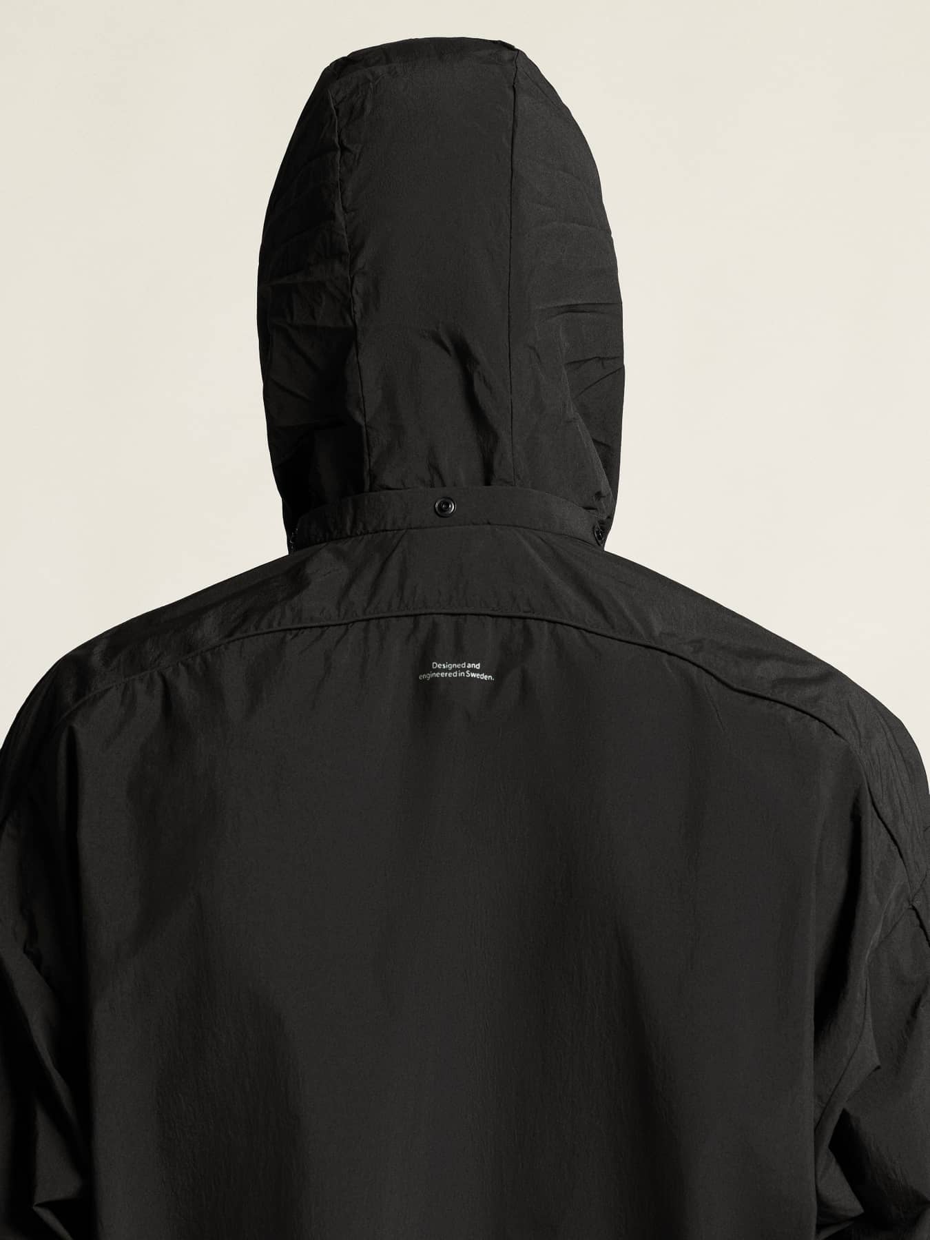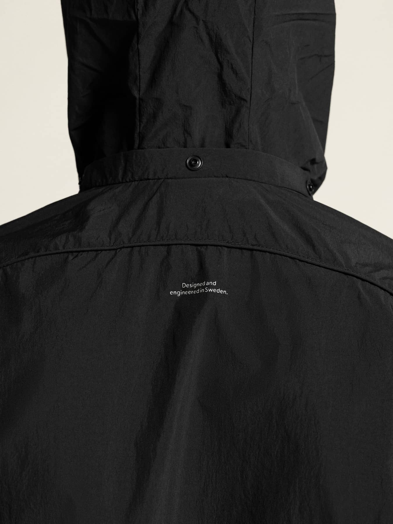 • Im Kragen verstaubare Kapuze mit Knöpfen am Hals