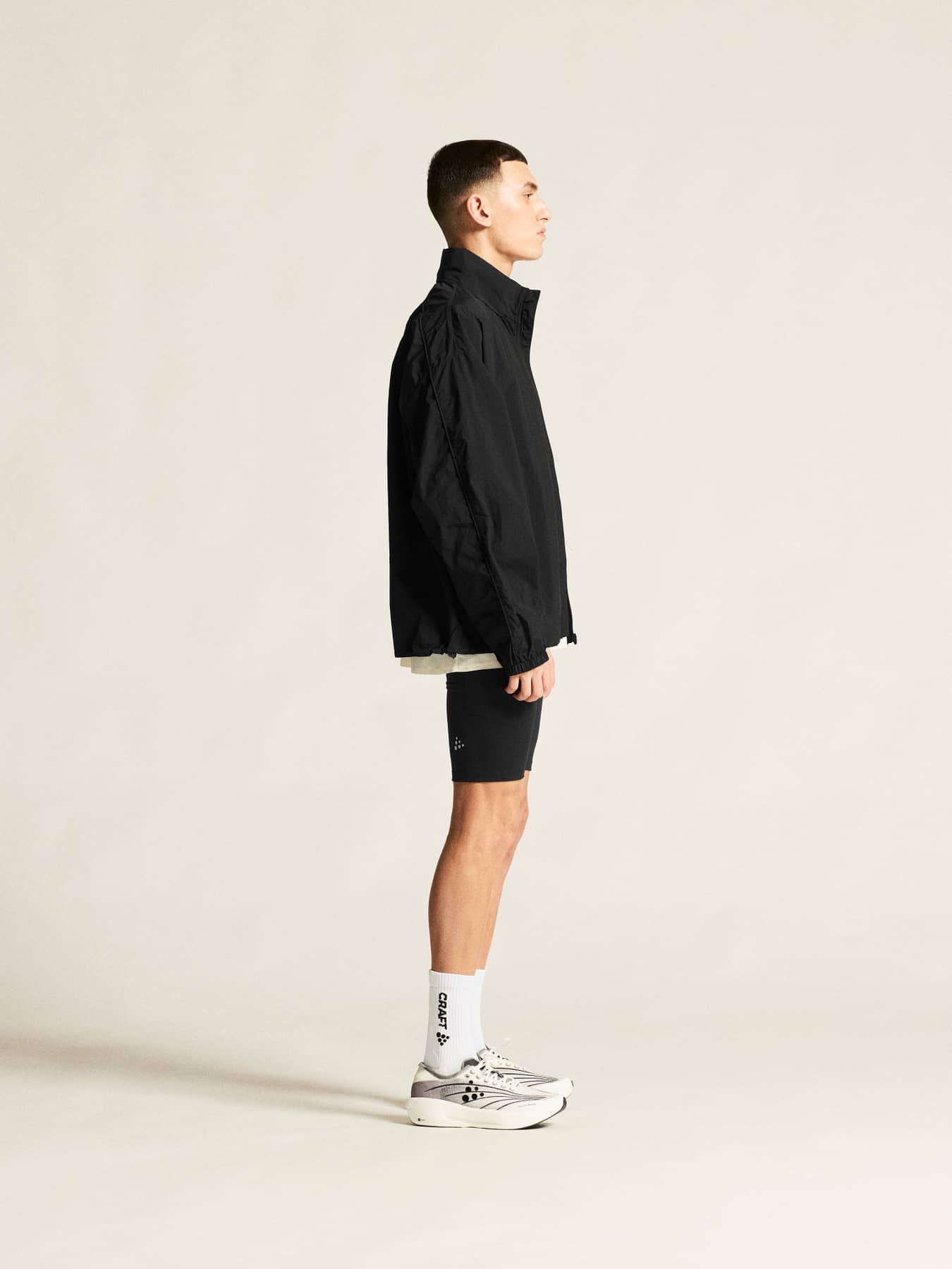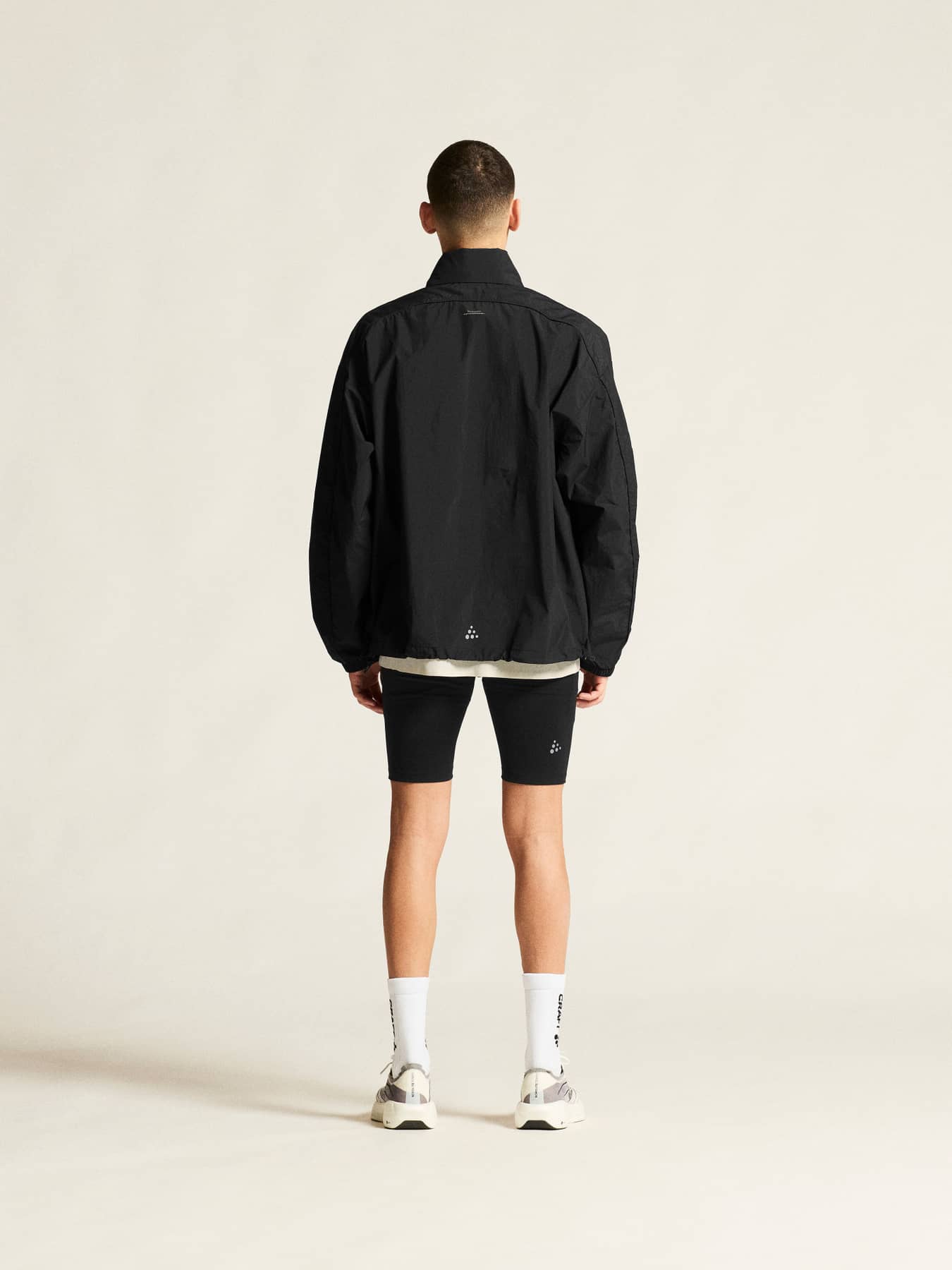 Inspiriert von Vintage-Laufbekleidung, ist diese Oversize-Jacke aus recyceltem Polyamid gefertigt, das eine hervorragende Belüftung und Feuchtigkeitsregulierung bietet. Zwei Seitentaschen mit Reißverschluss bieten sicheren Stauraum für Schlüssel, Energieriegel und andere wichtige Dinge, während zwei verstellbare Kordeln am unteren Saum eine individuelle Passform ermöglichen. Die Jacke verfügt außerdem über eine faltbare Kapuze, die sich ordentlich im Kragen verstauen lässt. Sie ist auf Anpassungsfähigkeit ausgelegt und lässt sich vollständig in der linken Tasche verstauen, wodurch sie sich in eine kleine Tasche verwandelt, die bequem an der Taille getragen werden kann und bei wechselhaften Wetterbedingungen schnell zur Hand ist.