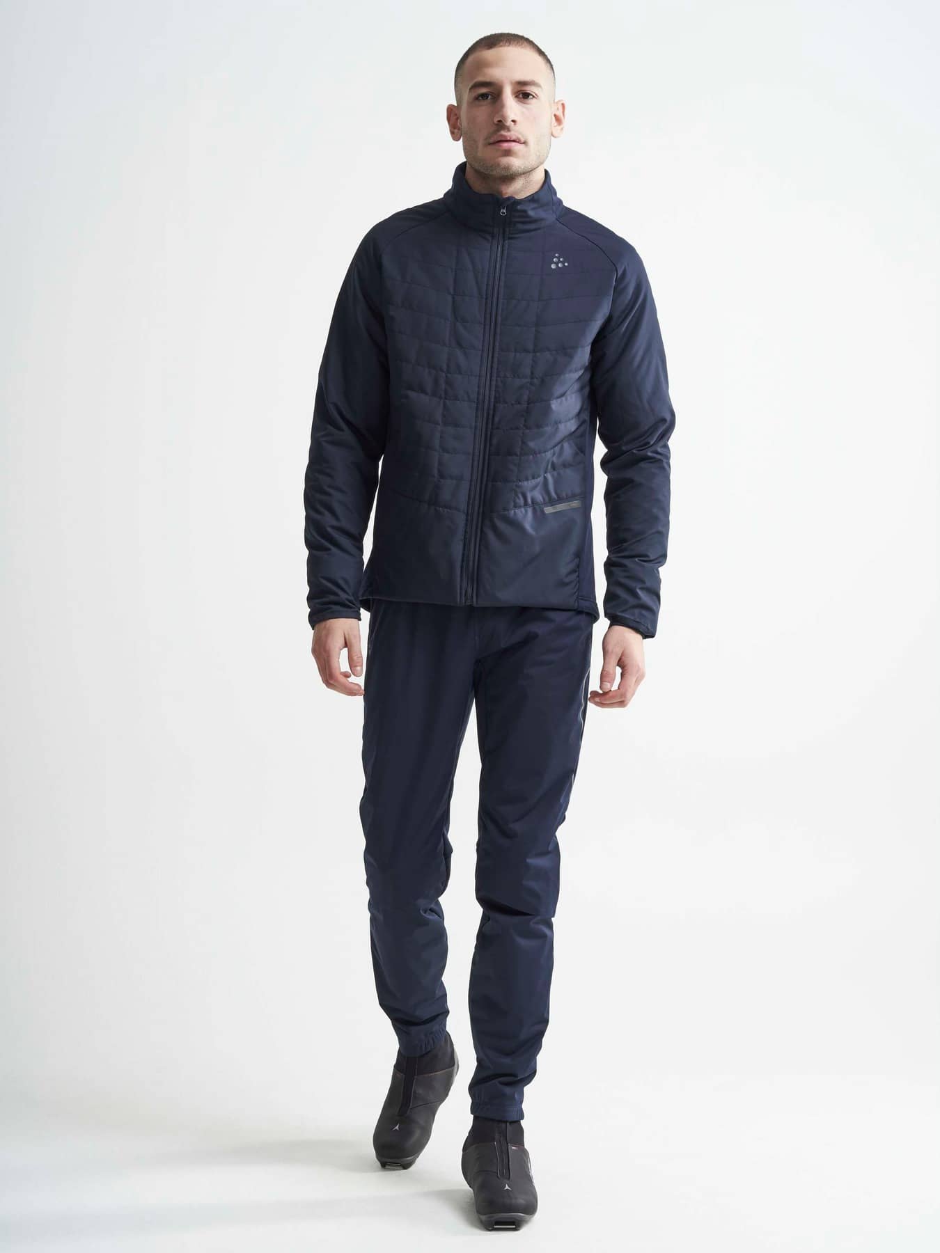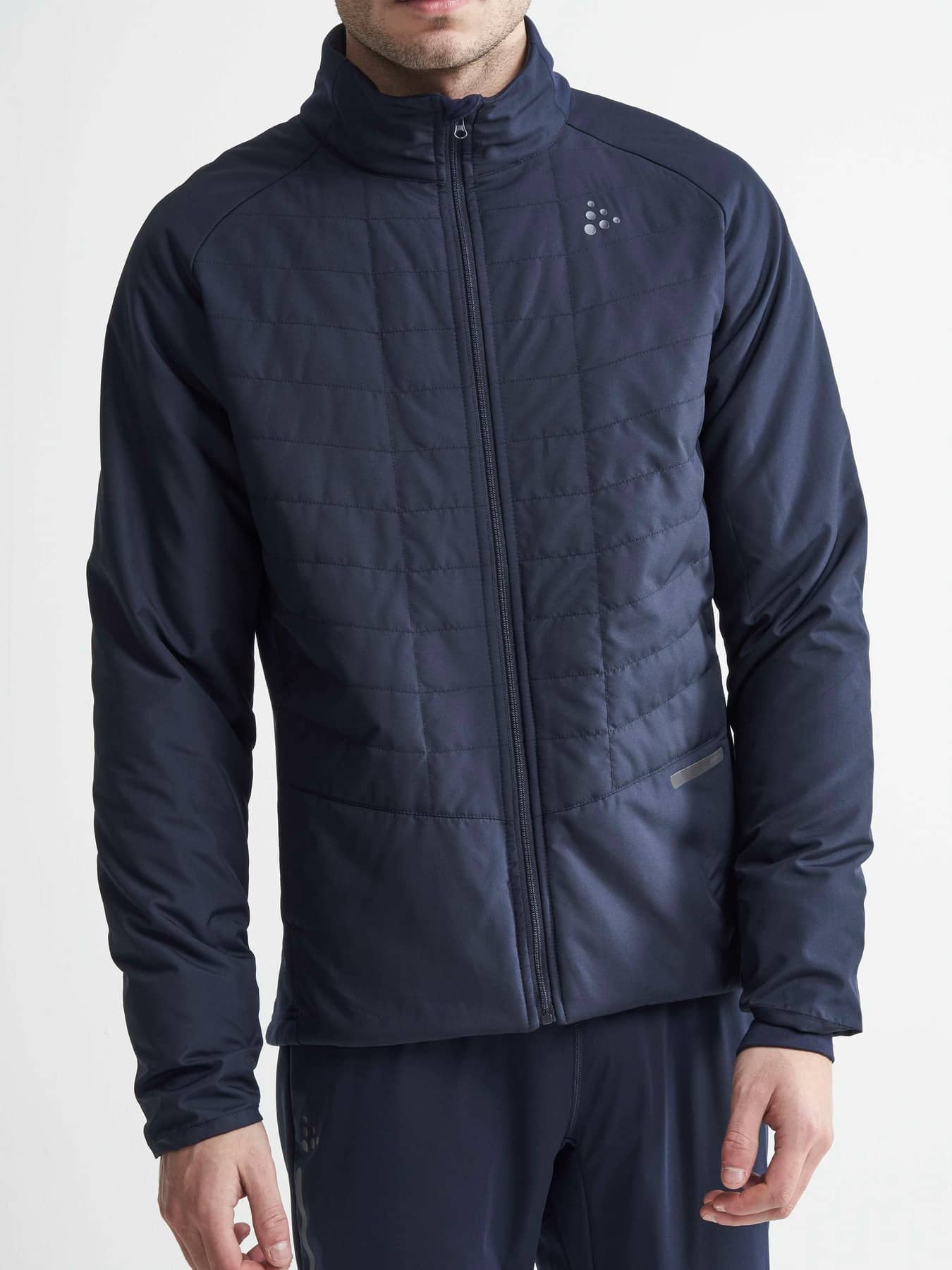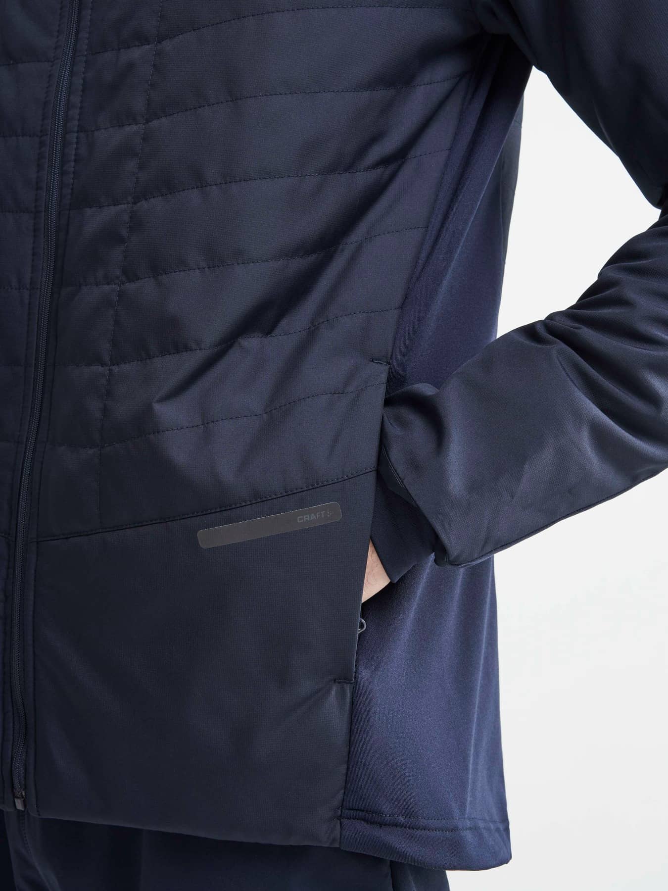 Padded and wind-protective ski jacket for cold conditions. Recycled polyester. - Shell fabric with 45% recycled polyester - Light padded body & sleeves for warmth & comfort in cold conditions - Snug jersey collar with brushed inside for comfort - Zip side pockets - Jersey rib at sleeve endings & bottom for snug fitting - Jersey at sides for freedom of movement