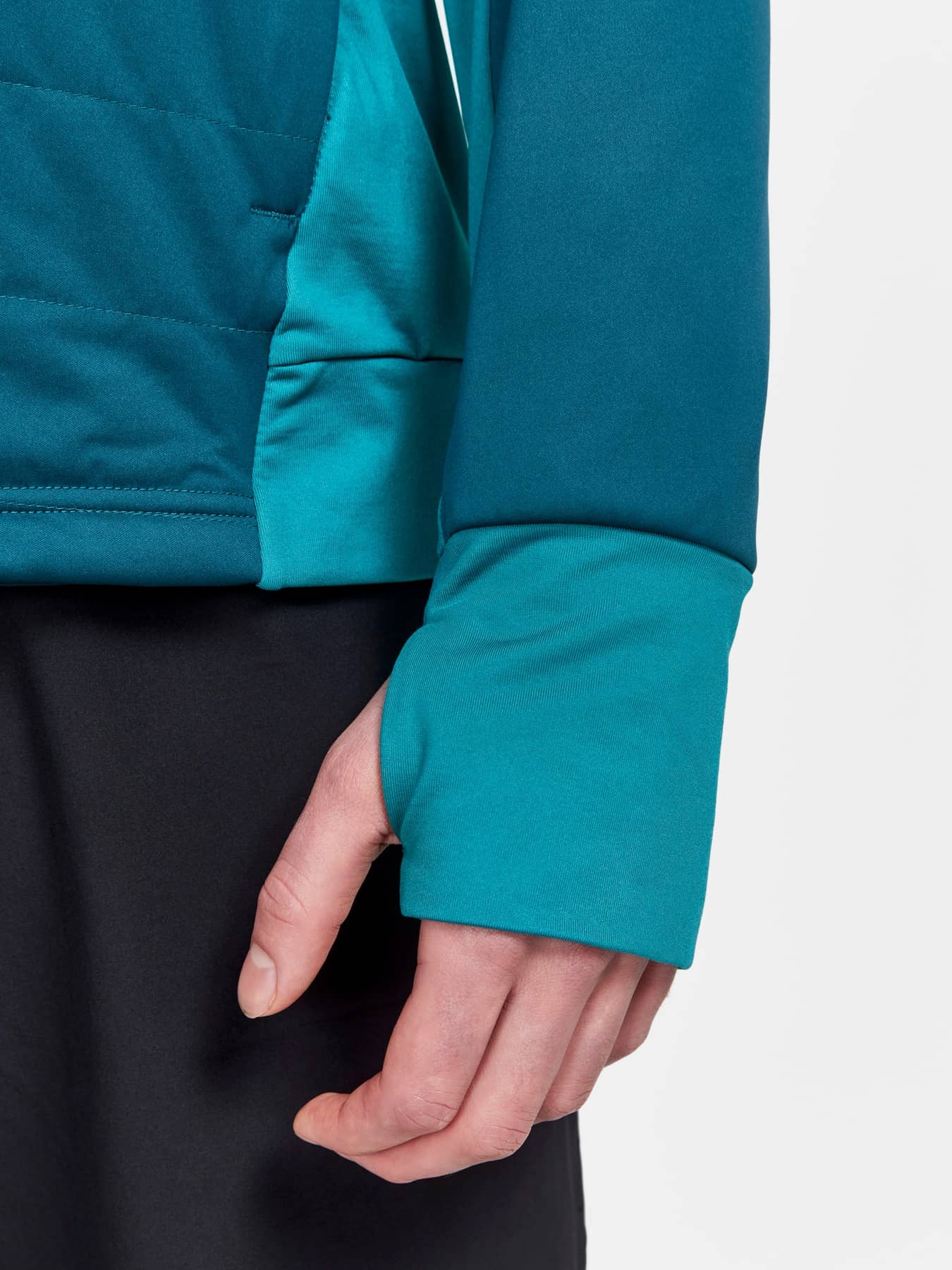 Front body and upper sleeves; Face 100% Polyester Back 100% Polyurethane Back Body and Lower sleeves; 89% Polyester-recycled 11% Elastane Padding; 100% Polyester