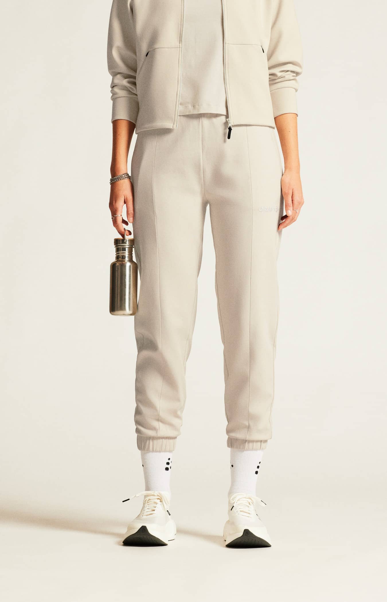 ADV Join Sweatpants er en svært behagelig joggebukse med en ren og elegant stil, som er designet for hverdagsbruk. Den moderne joggebuksen er laget av et førsteklasses materiale, som har myk bomull på utsiden og myk polyester på innsiden. Resultatet er et svært behagelig plagg, som gir et blikkfang både i hverdagsaktiviteter samt på vei til og fra trening. Joggebuksen har en skandinavisk, minimalistisk design, og er enkel å kombinere med en rekke andre sportsplagg og treningsklær. Dessuten har buksen en bred linning for optimal komfort, elastiske benåpninger samt to glidelåslommer for trygg oppbevaring. Sydde innsnitt foran og bak bena samt en brodert logo, gir plagget en førsteklasses følelse og et godt utseende. • Myk og tettstrikket bomulls- og polyesterjersey (320 gsm). • Bomull utvendig og polyester på innsiden. • Sydde innsnitt foran og bak på bena. • Bred, elastisk linning med justerbar snøring. • Elastiske benåpninger. • To sidelommer med glidelås. • Brodert logo på venstre ben. Denne buksen oppleves som stor i størrelsen