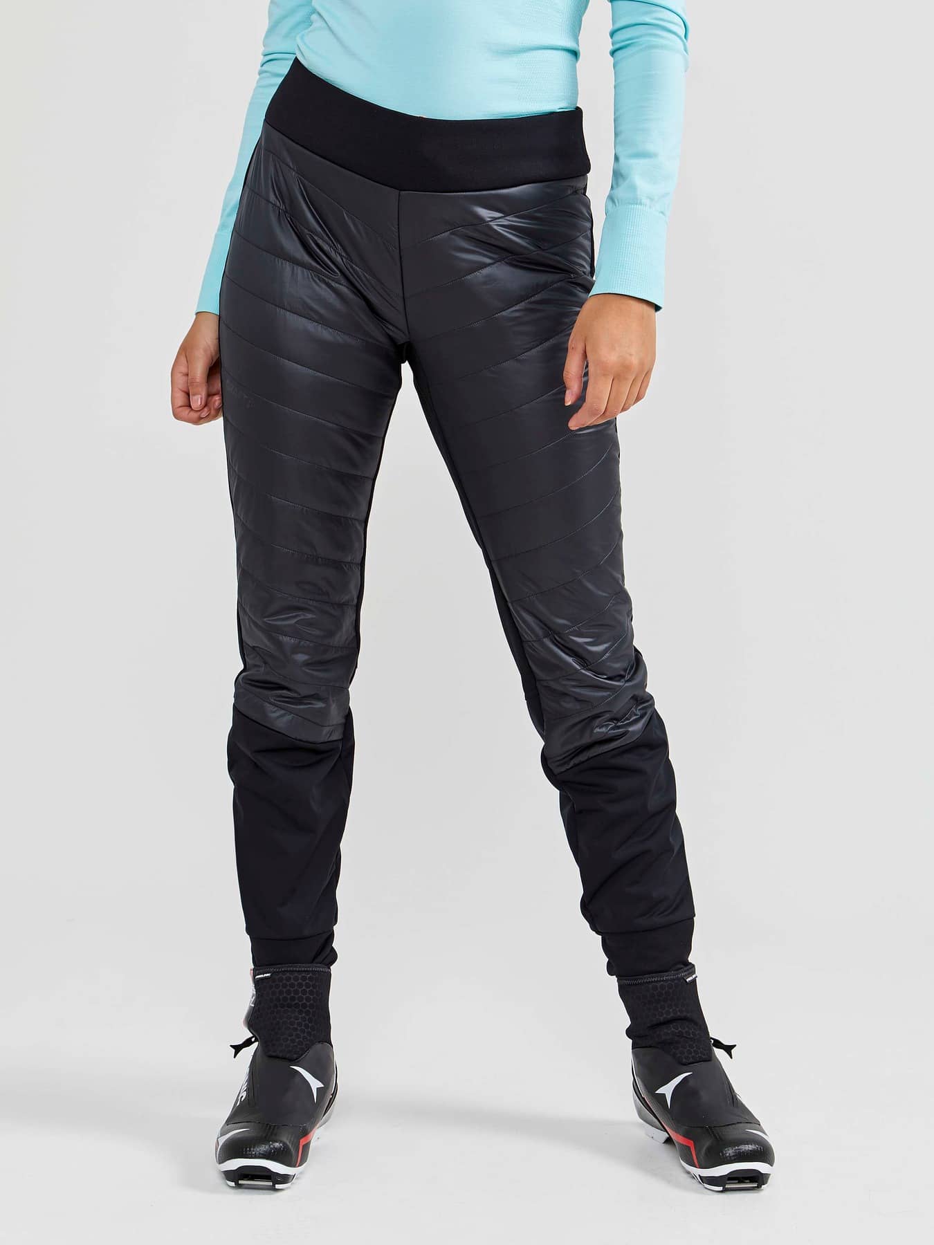 ADV Storm Insulate Pants are warm XC pants with padded insulation at front designed for intense cross-country skiing in cold and windy conditions. These advanced cross-country ski pants come with a quilted light-padded front, brushed inside for extra warmth, recycled jersey at back for optimal body-temperature management, and recycled 2-layer wind-and waterproof stretch fabric at lower leg for protection against slush. In addition, the pants feature wide elastic waistband with adjustable drawstring for optimal fit and zipper at leg endings for easy on and off. • Light, quilted padding at front (40 gsm) • Recycled 2-layer wind- and waterproof stretch fabric at lower leg for protection against slush • Recycled jersey at back for efficient ventilation • Wide elastic waistband with adjustable drawstring • Zipper at leg endings for easy on and off • Regular fit