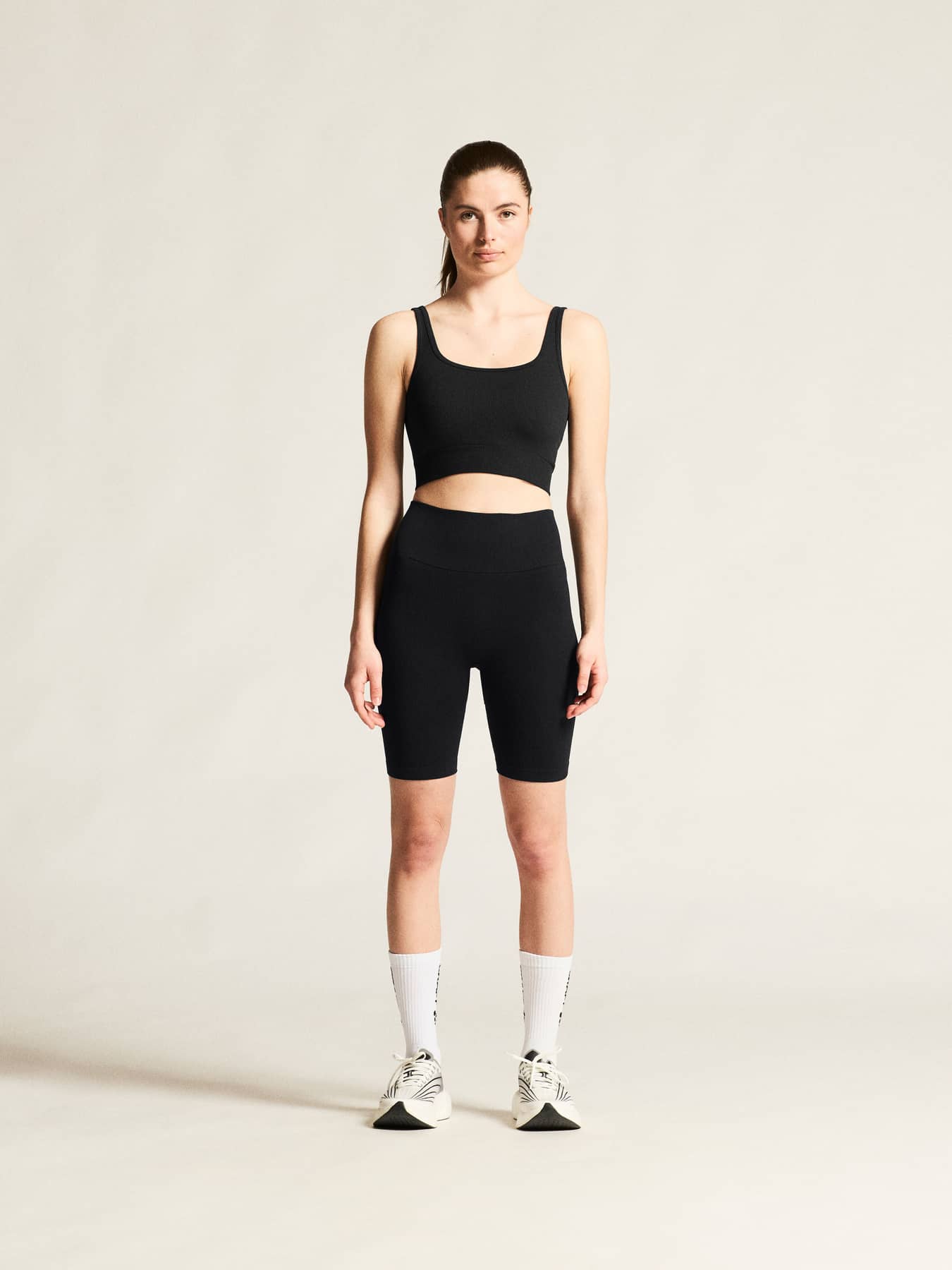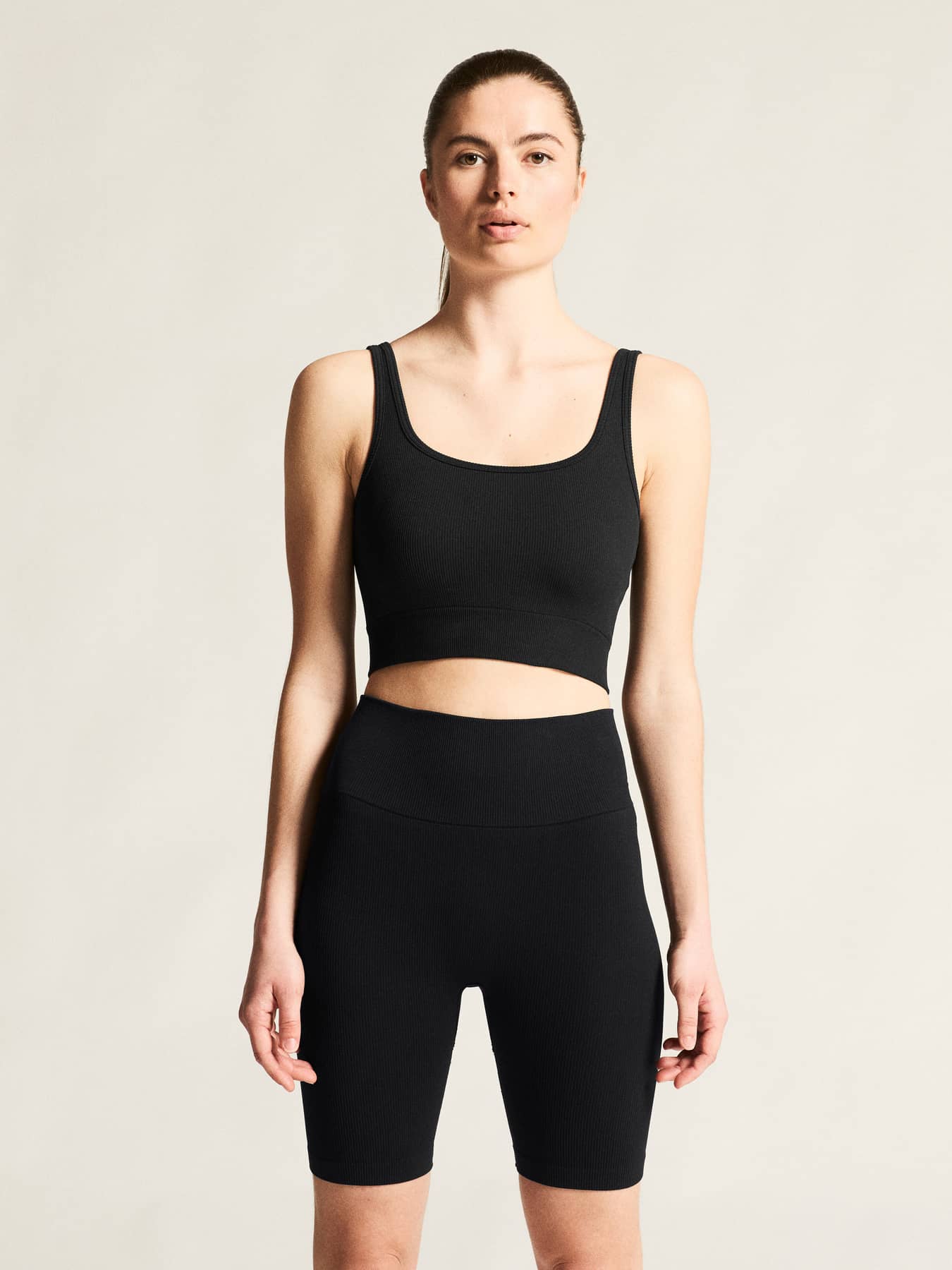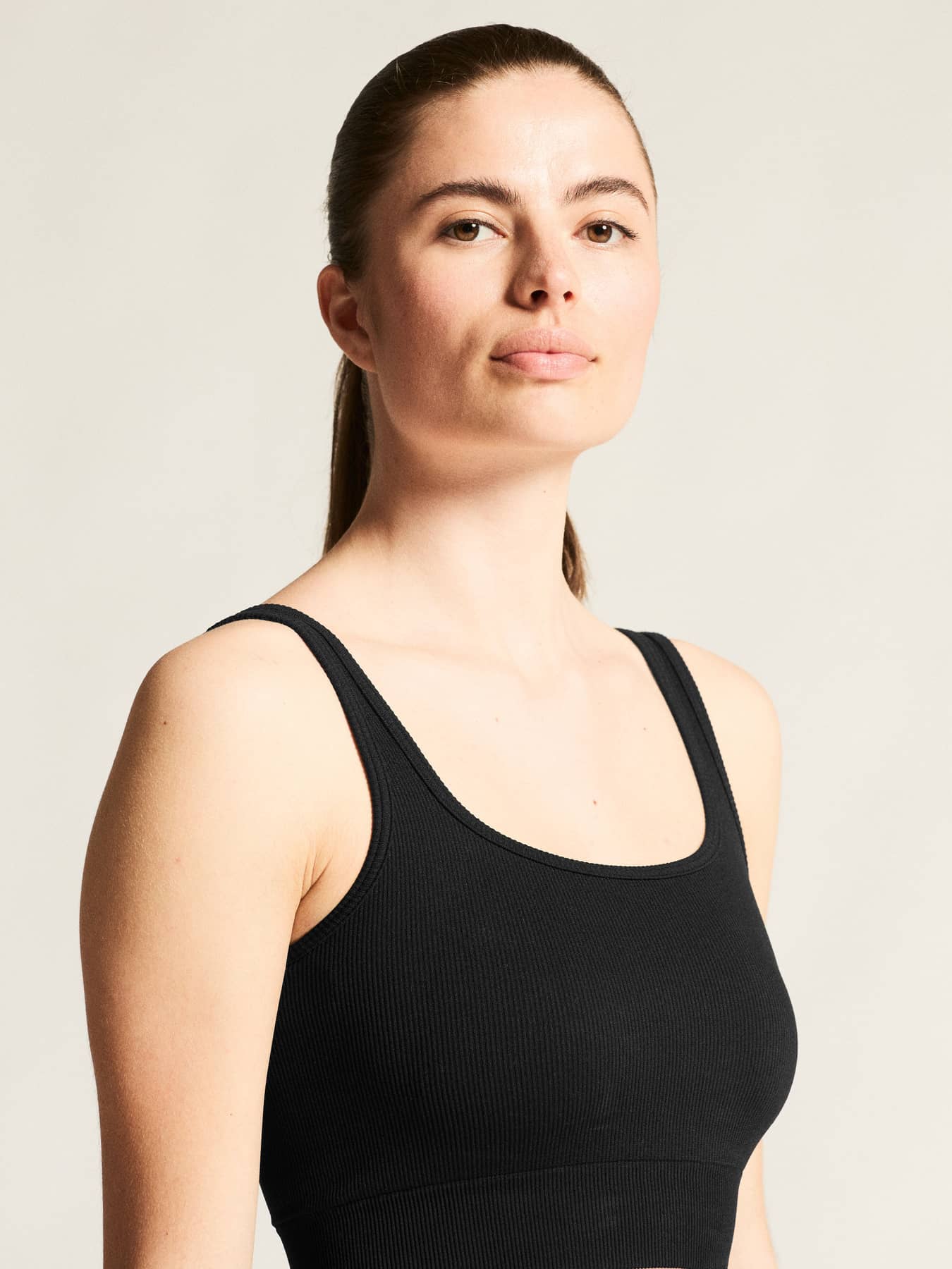 Collective Rib Sports Bra er en tætsiddende sports-bh med polstrede skåle, der overskrider traditionelle grænser og bygger bro mellem sport og fritid med en perfekt balance mellem komfort, ydeevne og stil.