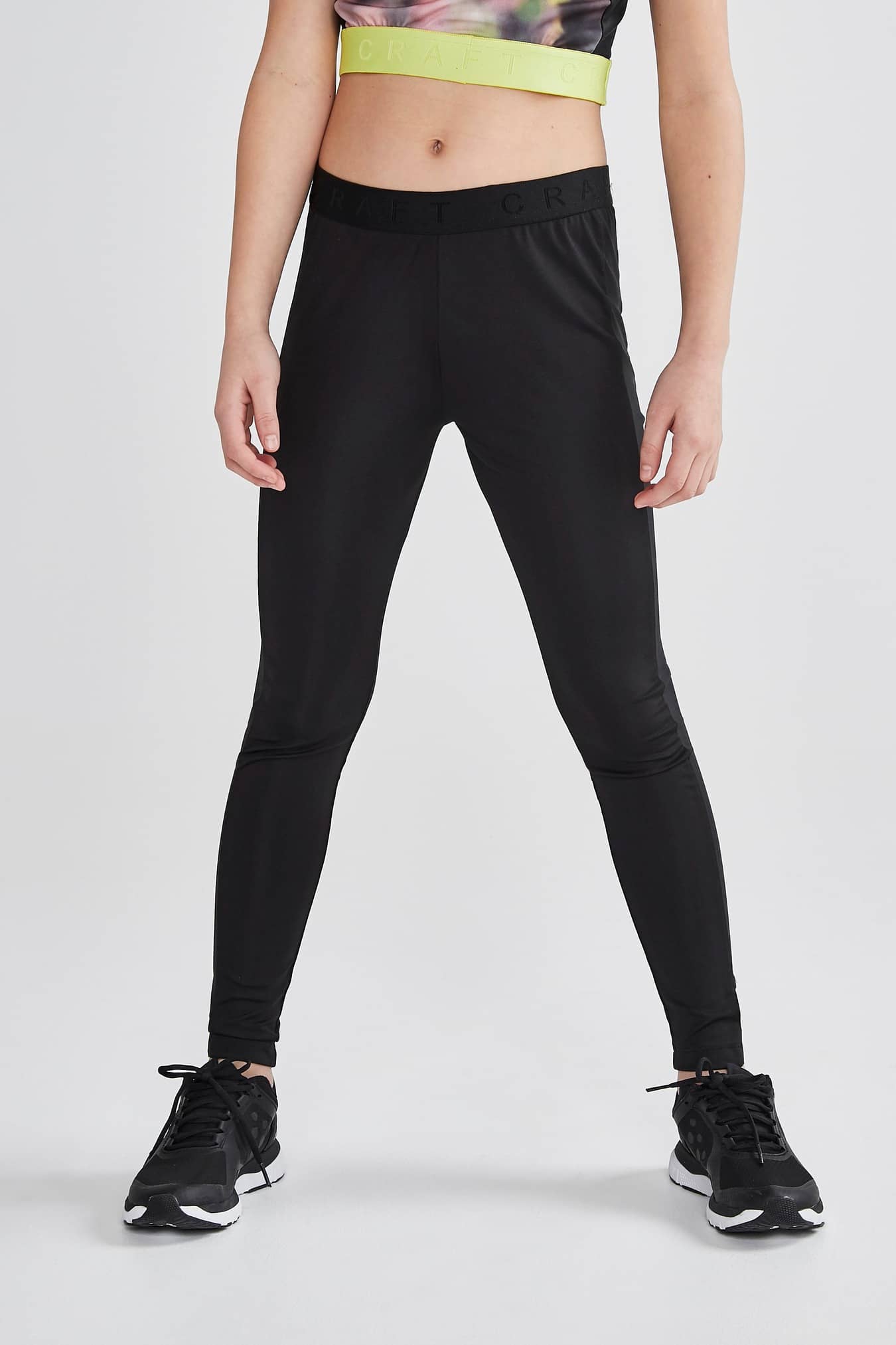 Core Focus Contrast Tights Jr are functional training tights that make a perfect choice for gym class and extracurricular sports activities. The tights feature elastic at waist for optimal fit and a shiny side panel. • Functional polyester fabric • Elastic at waist for optimal fit • Shiny side panel • Craft print at lower leg