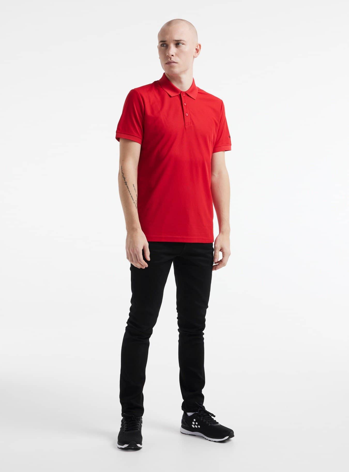 Polo i funktionelt recycled polyester med behagelig pasform og trykt logo på ærmet • Recycled polyester med god fugttransport • Behagelig pasform • Trykt logo på ærmet