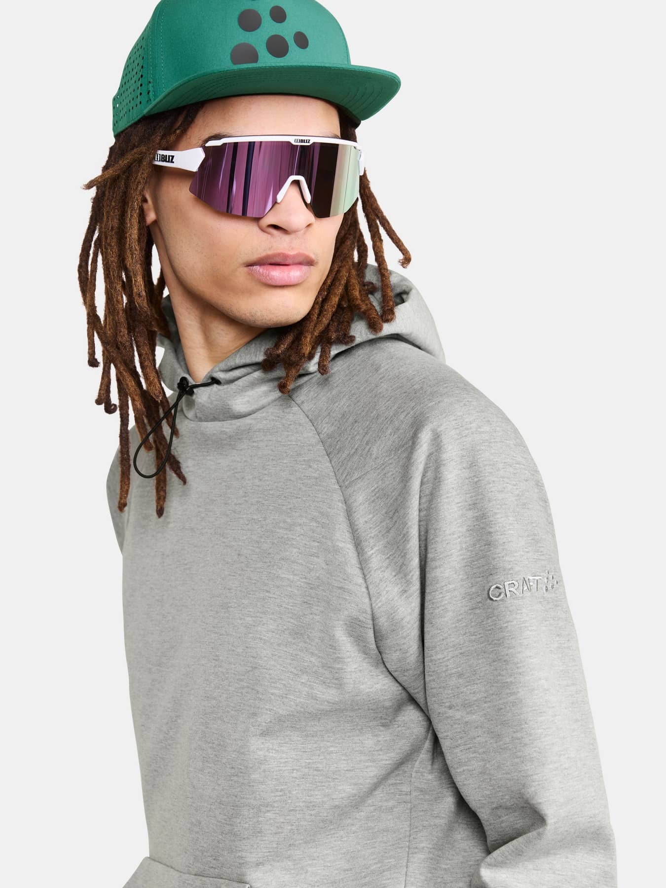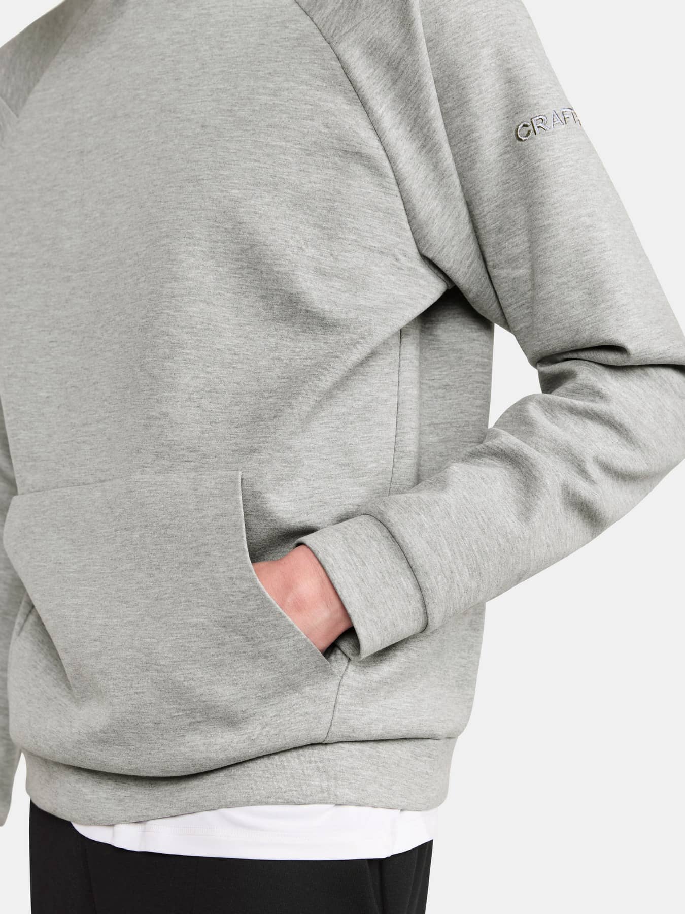 ADV Join Hoodie on erittäin mukava huppari, jonka puhtaan selkeä ilme on suunniteltu jokapäiväiseen käyttöön. Nykyaikainen huppari on valmistettu ensiluokkaisesta kankaasta, jonka ulkopuoli on sileää puuvillaa ja sisäpuoli pehmeää polyesteriä. Tuloksena on erittäin mukava vaate, joka näyttää hyvältä sekä matkalla kuntosalille ja sieltä pois että rennoissa arjen riennoissa. Lisäksi hupparissa on säädettävä huppu, raglanhihat ja vetoketjulliset kengurutaskut. Pohjoismaiseen tyyliin pelkistetysti muotoiltu huppari sopii täydellisesti yhteen monien urheilu- ja treenivaatteiden kanssa. Kirjailtu logo korostaa vaatteen ensiluokkaista tuntumaa ja ilmettä. • Pehmeä ja tiheäneuloksinen puuvilla-polyesterijersey (320 g/m2). • Ulkopuolella puuvillaa ja sisäpuolella polyesteriä • Raglanhihat • Kengurutasku, jossa on piilovetoketjut • Kirjailtu logo vasemmassa hihassa • Normaali mitoitus