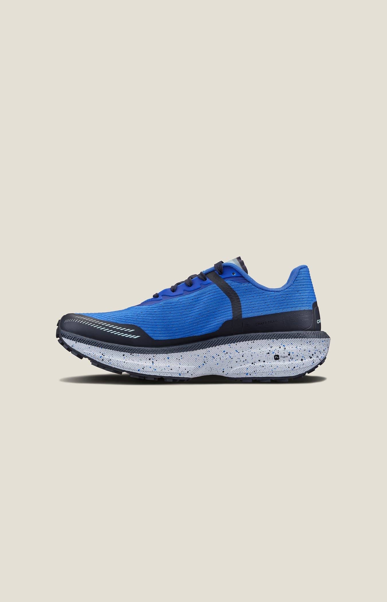 PRO Endurance Trail tuo uuden reagointikyvyn tason vakavasti otettaville maastojuoksijoille. Tässä pro-luokan juoksukengässä on täysi Px Foam™-välipohja, joka yhdistettynä optimaaliseen pohjan paksuuteen tarjoaa räjähtävän varpaiden lähdön, höyhenpehmeän laskeutumisen ja tehokkaan askelluksen. Kengän keskikorkea ulkopohja tuottaa maksimaalisen energian vaihtelevassa maastossa. Se takaa hyvän pidon keskivaativassa maastossa sekä säilyttää ominaisuutensa maantiellä ja helpossa maastossa. Muotoiltu yksiosainen verkkokangaspäällinen toimii saumattomasti jalkaterän kanssa mukavan tuntuisesti ja tukien jokaista nopeaa askelta. Tämä innovatiivinen juoksukenkä tarjoaa pelkistettyä muotoilua ja puhdasta tehoa maastossa. Px Foam™ Px Foam™ on erittäin kevyt välipohjamateriaali. Se tuottaa poikkeuksellisen suuren määrän energiaa ja on samalla iskunkestävä ja joustava. Tämän vihreän innovaation valmistuksessa käytetään yhtä ainoaa, luonnollista vaahdotusaineita ilman kemiallisten silloitusaineiden lisäämistä. Prosessi on myrkytön ja ympäristöystävällinen. Lisäksi raaka-aineet ja valmiit materiaalit ovat täysin uudelleenkäytettäviä. Innovatiivisen vaahdon tiheys on erittäin pieni, joten se on jopa 20 % kevyempää kuin perinteinen EVA. Pienempi paino yhdistettynä räjähtävään palautumiseen tekevät Px Foam™ -materiaalista täydellisen jokaiseen juoksuun. Craft Regular Fit Mukava kantapäässä ja keskellä jalkaa, erinomainen lukitusominaisuus ja lisätilaa kärjessä, mikä takaa erinomaisen mukavuuden ja suorituskyvyn. • Yksiosainen muotoiltu verkkopäällinen • Px Foam™-välipohja takaa ylivoimaisen tuntuman ja palautumisen • Muotoiltu sisäpohja pienentää painoa ja tarjoaa ensiluokkaista mukavuutta • Kontaktinappulallinen kuminen pitopohja lisää vakautta ja pienentää painoa • Craft Regular Fit • Paino: 290 g koossa UK8 - Pohjan paksuus: kantapää 36 mm, kärki 27 mm - Droppi: 9 mm