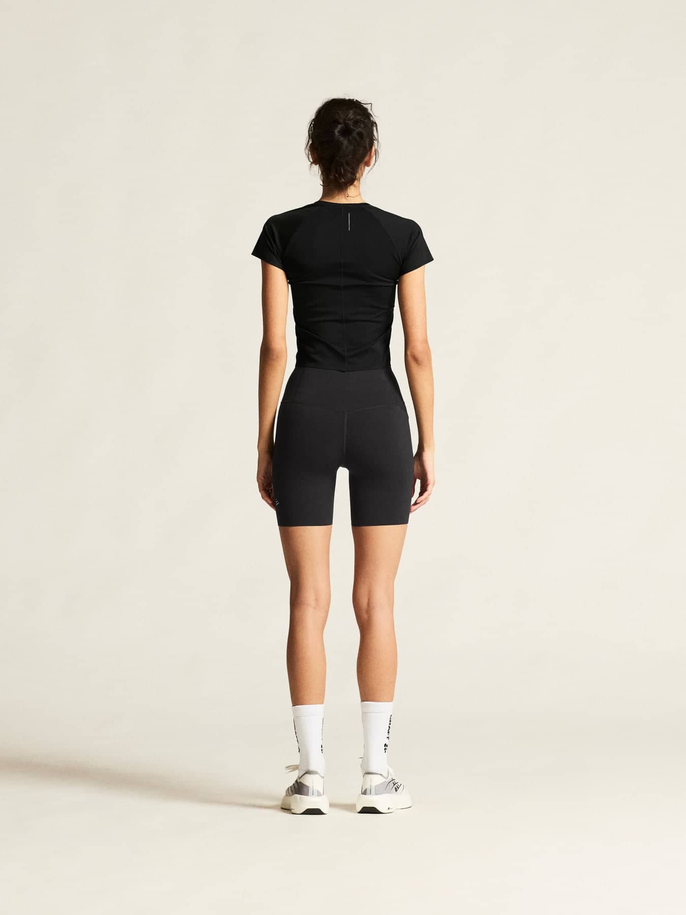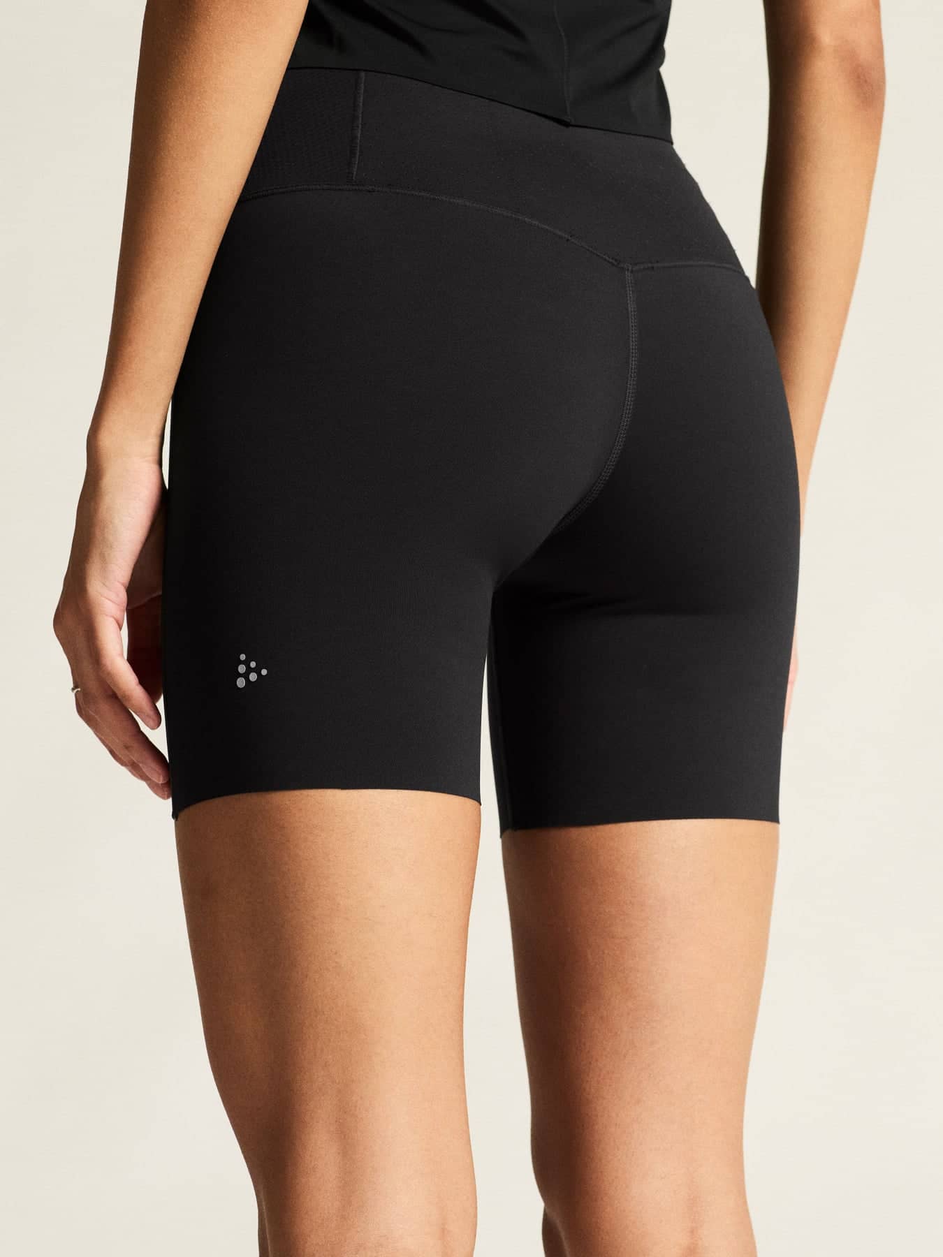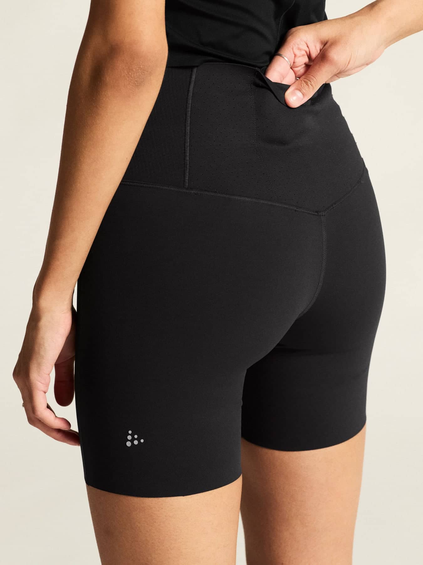 Suorituskykyiset lyhyet tightsit on valmistettu kierrätetystä polyamidijerseystä, joka tuulettaa ja siirtää kosteutta tehokkaasti. Tightseissa on myös on leveä liimattu vyötärökaitale, jossa on säädettävä kiristysnyöri, kolme rei'itettyä takataskua ja yksi vetoketjullinen reisitasku, johon mahtuvat pitkillä lenkeillä tarvittavat tavarat.