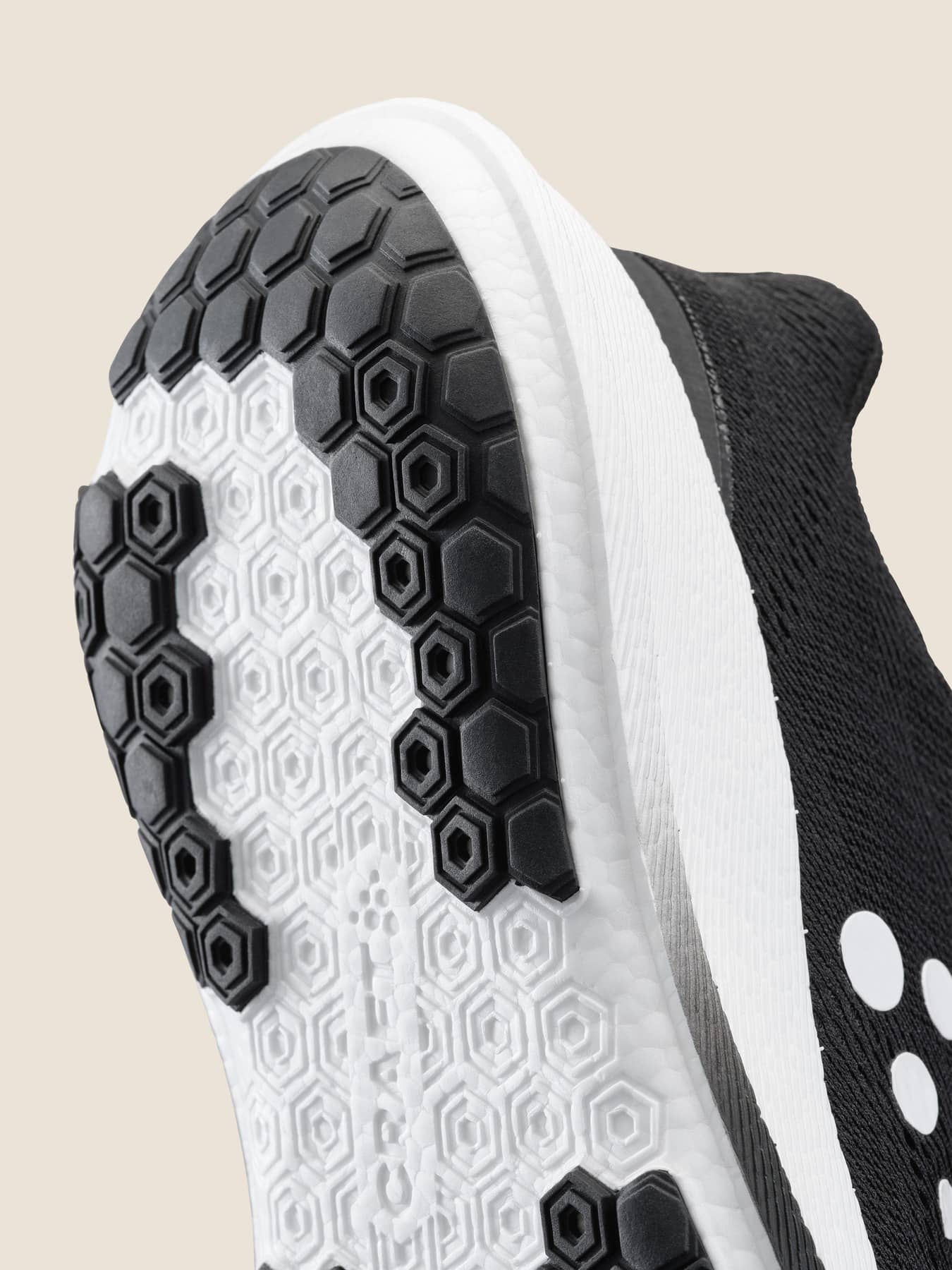 Two layer engineered mesh upper to improve the lock in and fit for a stable and comfortable ride.