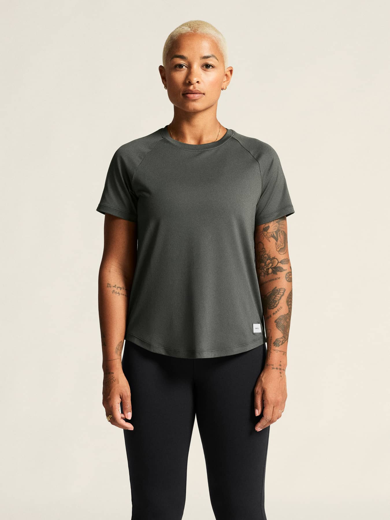 Conçu pour un confort ultime, ce t-shirt d'entraînement polyvalent est confectionné à partir d'un mélange de polyester extensible avec une surface peau de pêche, offrant une sensation luxueusement douce et une excellente gestion de la température corporelle. Il est également doté de manches raglan et d'un bas arrondi pour une silhouette féminine, incarnant un savoir-faire exquis dans chaque détail.