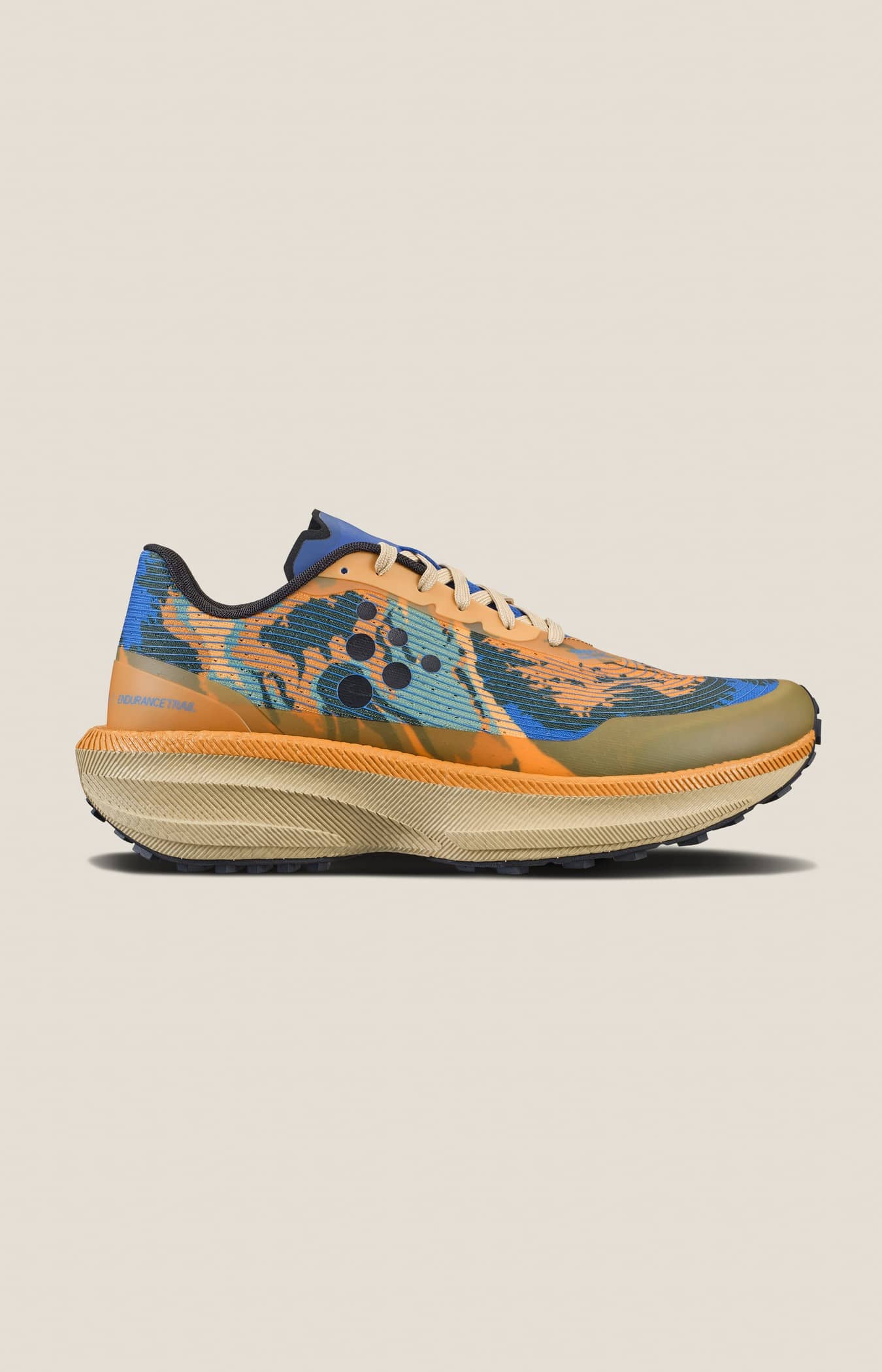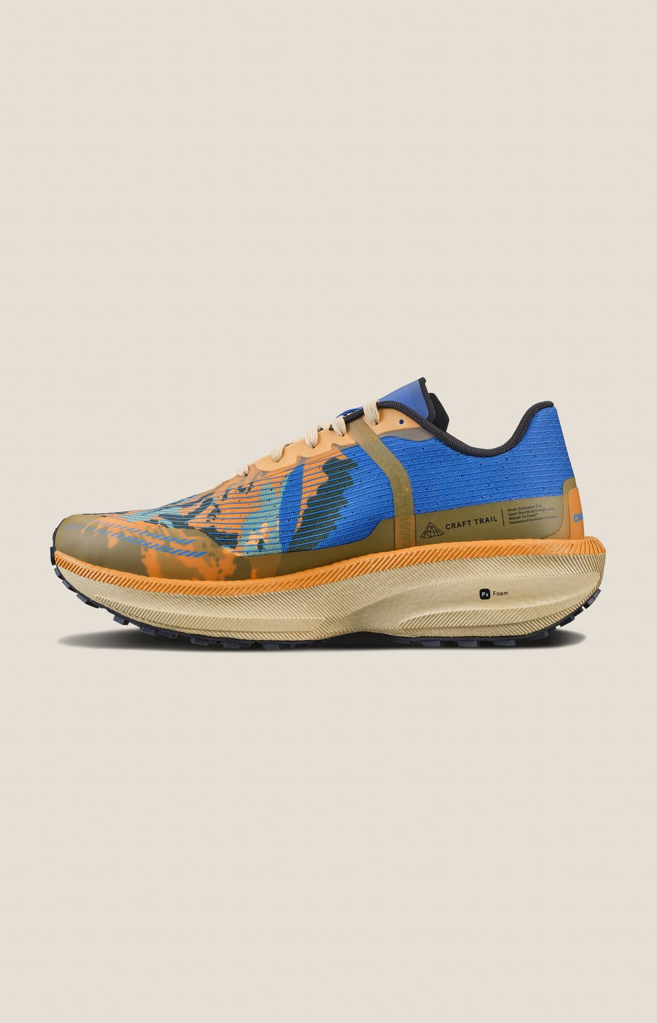 PRO Endurance Trail apporte un nouveau niveau de réactivité aux coureurs de trail sérieux. Cette chaussure de course de qualité professionnelle est dotée d'une semelle intermédiaire complète en Px Foam™ qui se combine avec une hauteur de tige optimale pour offrir un décollage explosif, un atterrissage en douceur et une foulée efficace. Fournissant une énergie maximale sur des terrains variés, la semelle extérieure à crampons mi-hauteur de la chaussure assure une excellente adhérence sur les sentiers modérés et maintient la capacité sur les routes et les sentiers légers. De plus, la tige en maille monobloc entièrement pensée travaille à l'unisson avec le pied pour assurer confort et soutien à chaque foulée agile. Bénéficiant d'une conception simple, cette chaussure de course innovante offre de pures performances tout-terrain. Px Foam™ Px Foam™ est un matériau de semelle intermédiaire ultra-léger qui offre un retour d'énergie exceptionnellement élevé tout en offrant une résistance aux chocs et une flexibilité. Un seul agent de mousse naturel est utilisé dans la fabrication de cette innovation verte, sans ajout d'agents chimiques de réticulation. Le processus est non toxique et respectueux de l'environnement. De plus, les matériaux bruts et finis sont entièrement réutilisables. La mousse innovante a une densité extrêmement faible, ce qui la rend jusqu'à 20 % plus légère que l'EVA traditionnel. Le poids réduit combiné à un rebond explosif rendent le Px Foam™ parfait pour chaque course. Craft Regular Fit Ajusté au talon et au milieu du pied avec une excellente capacité de verrouillage et un espace supplémentaire à l'avant-pied pour un confort et des performances supérieurs. • Empeigne en maille technique d'une seule pièce • Semelle intermédiaire Px Foam™ ? sensation et rebond supérieurs • Semelle intérieure profilée pour un poids réduit et un confort supérieur • Semelle extérieure en caoutchouc à crampons de contact pour stabilité et poids réduit • Craft Regular Fit • Poids : 290 g en taille UK8 • Hauteur de tige : talon 36 mm, avant-pied 27 mm • Drop : 9 mm