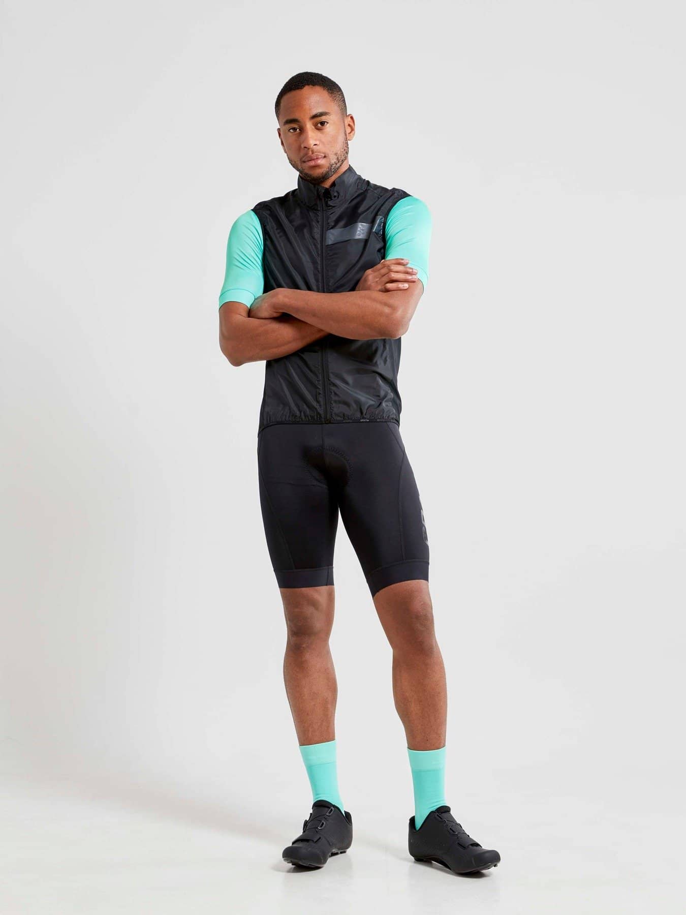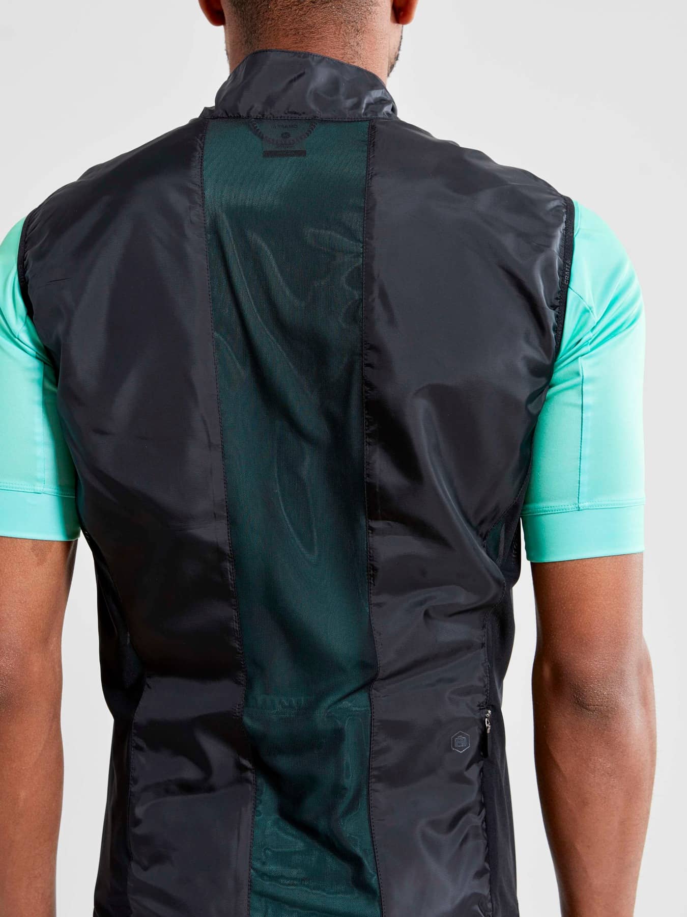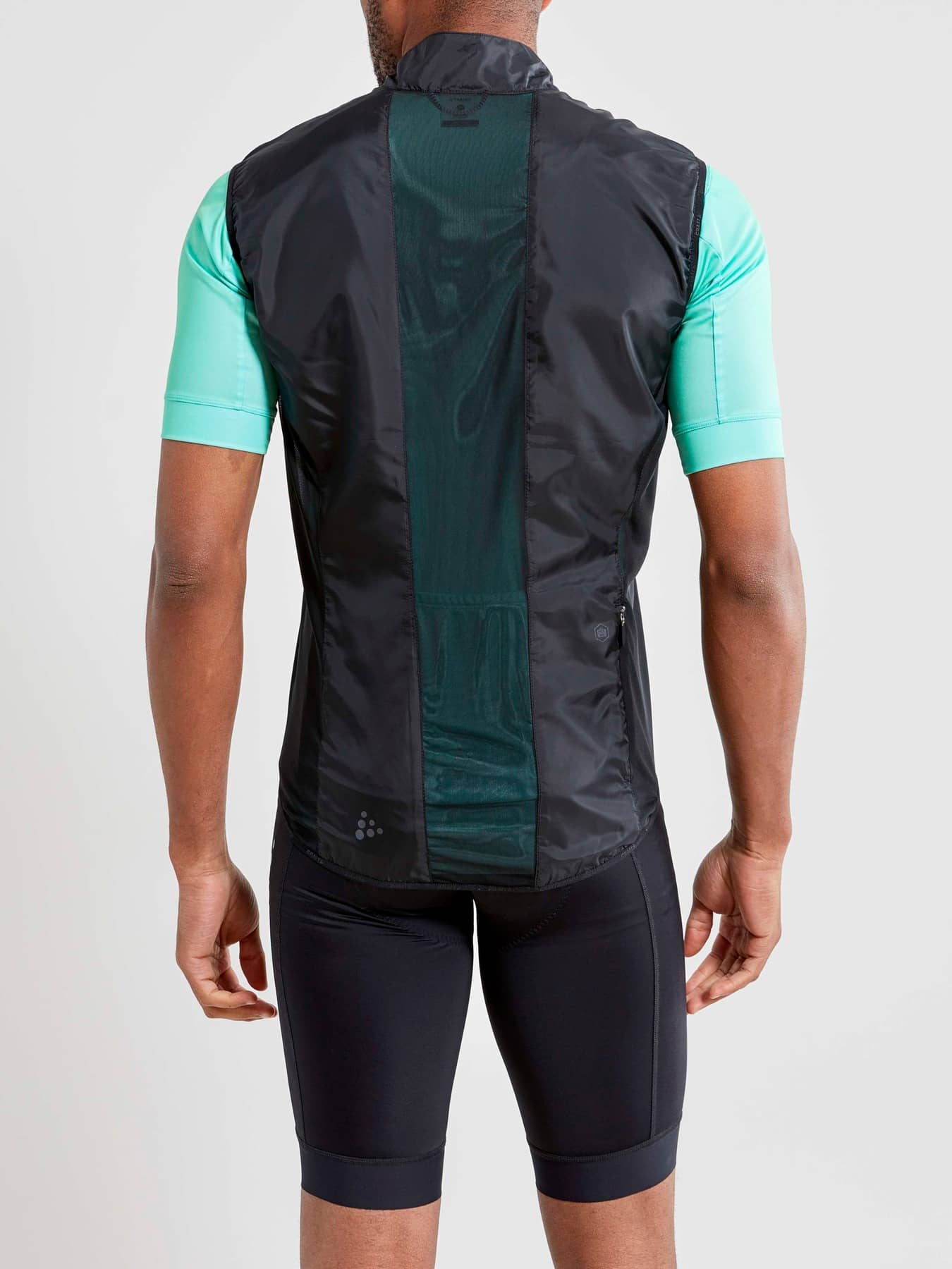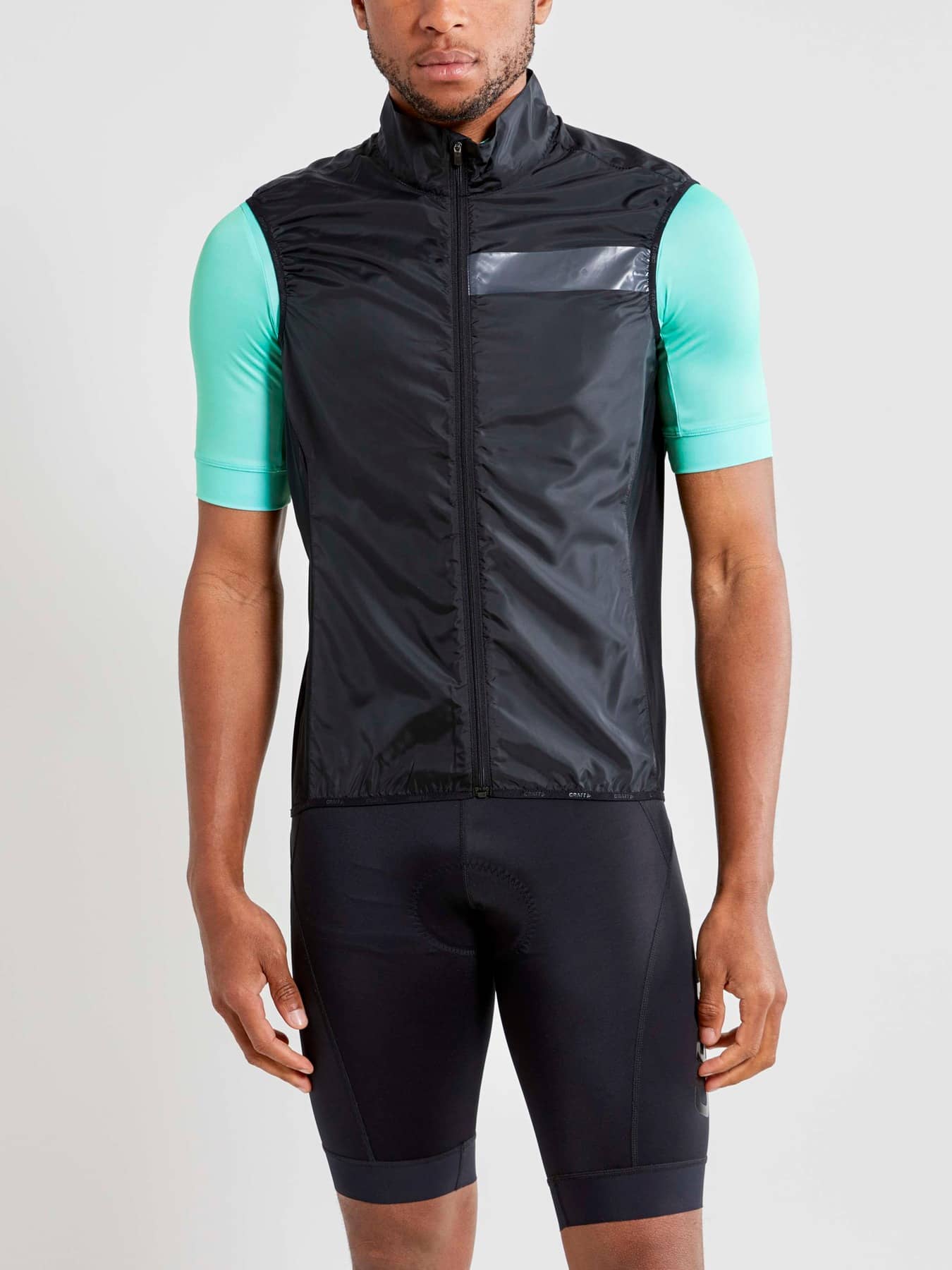 Ultra-lightweight bike vest with wind- and water-repellent front and mesh at back. A bike vest is a must-have in every serious cyclist's wardrobe. With the ultra-lightweight Essence Light Wind Vest (43 gsm) in your back pocket you are always ready to quickly adapt to changing weather conditions. The vest comes with a wind-protective and water-repellent front and elastic mesh at back for optimal fit and extra ventilation. Made of recycled fabrics, the wind vest is a sustainable choice that adds another green dimension to cycling. Packs easily into the back pocket of your bike jersey. - Ultra-lightweight recycled woven polyester, 43 gsm - Wind-protective and water-repellent fabric (DWR finish) - Mesh at back - Brushed fleece at inner collar - Elastic edging at the bottom - Reflective details