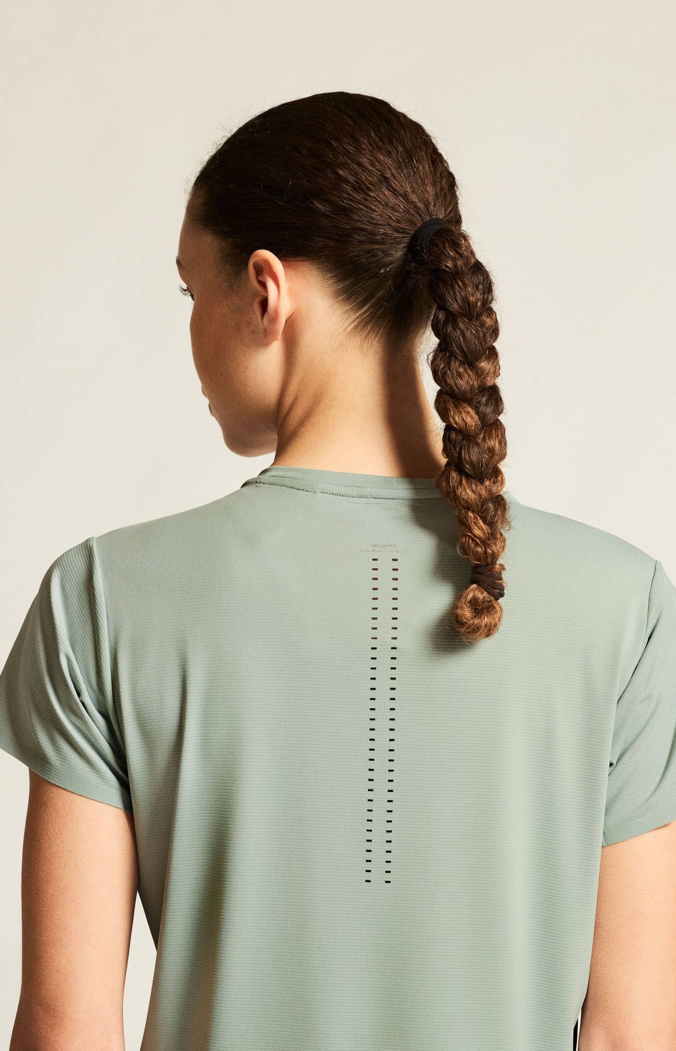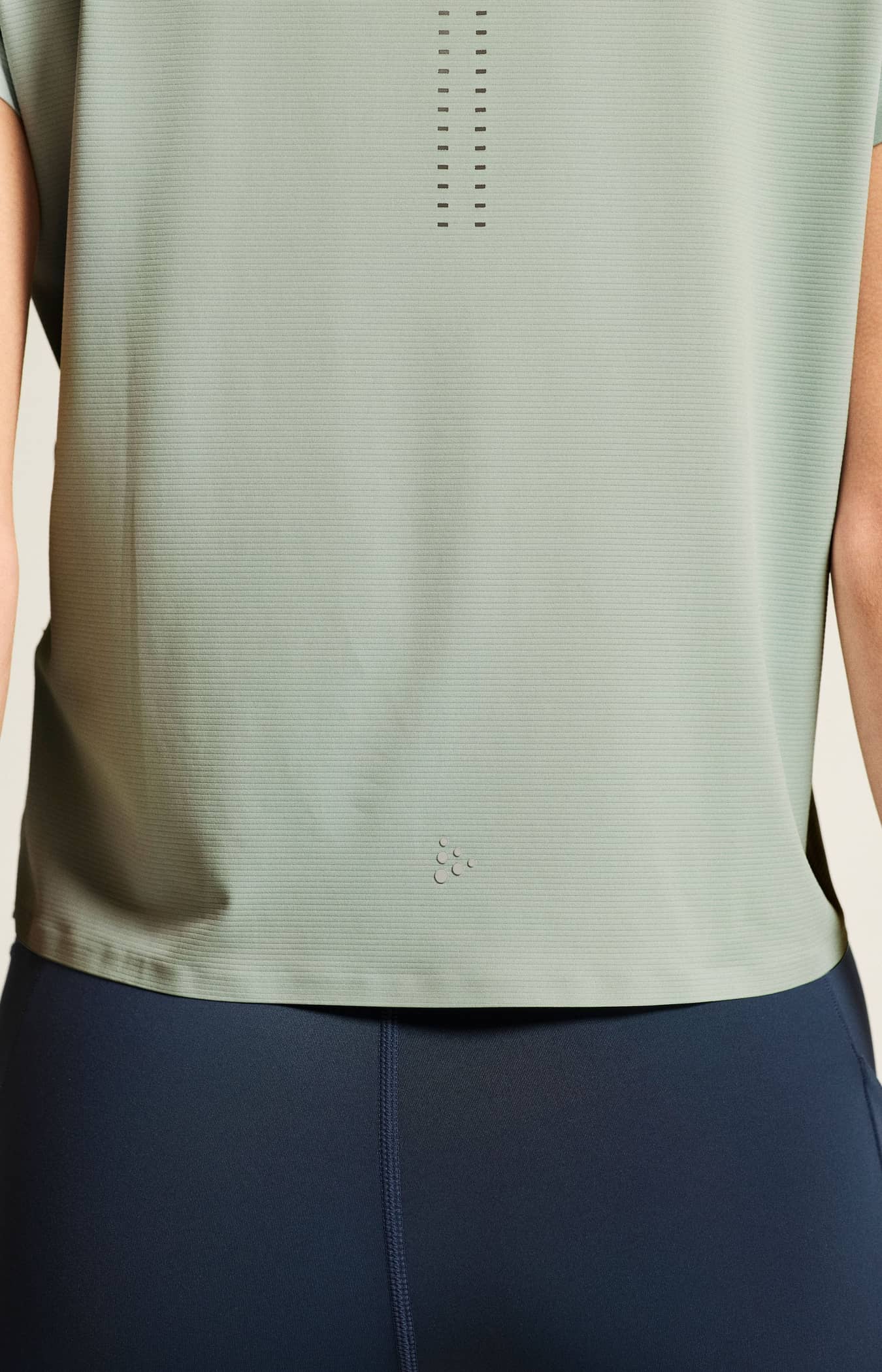 Ce vêtement haute performance est fabriqué en jersey doux à base de polyester recyclé et d'élasthanne, offrant une évacuation exceptionnelle de l'humidité et une excellente liberté de mouvement. Les détails perforés à l'arrière améliorent l'aération, tandis que les finitions collées minimisent les frottements.