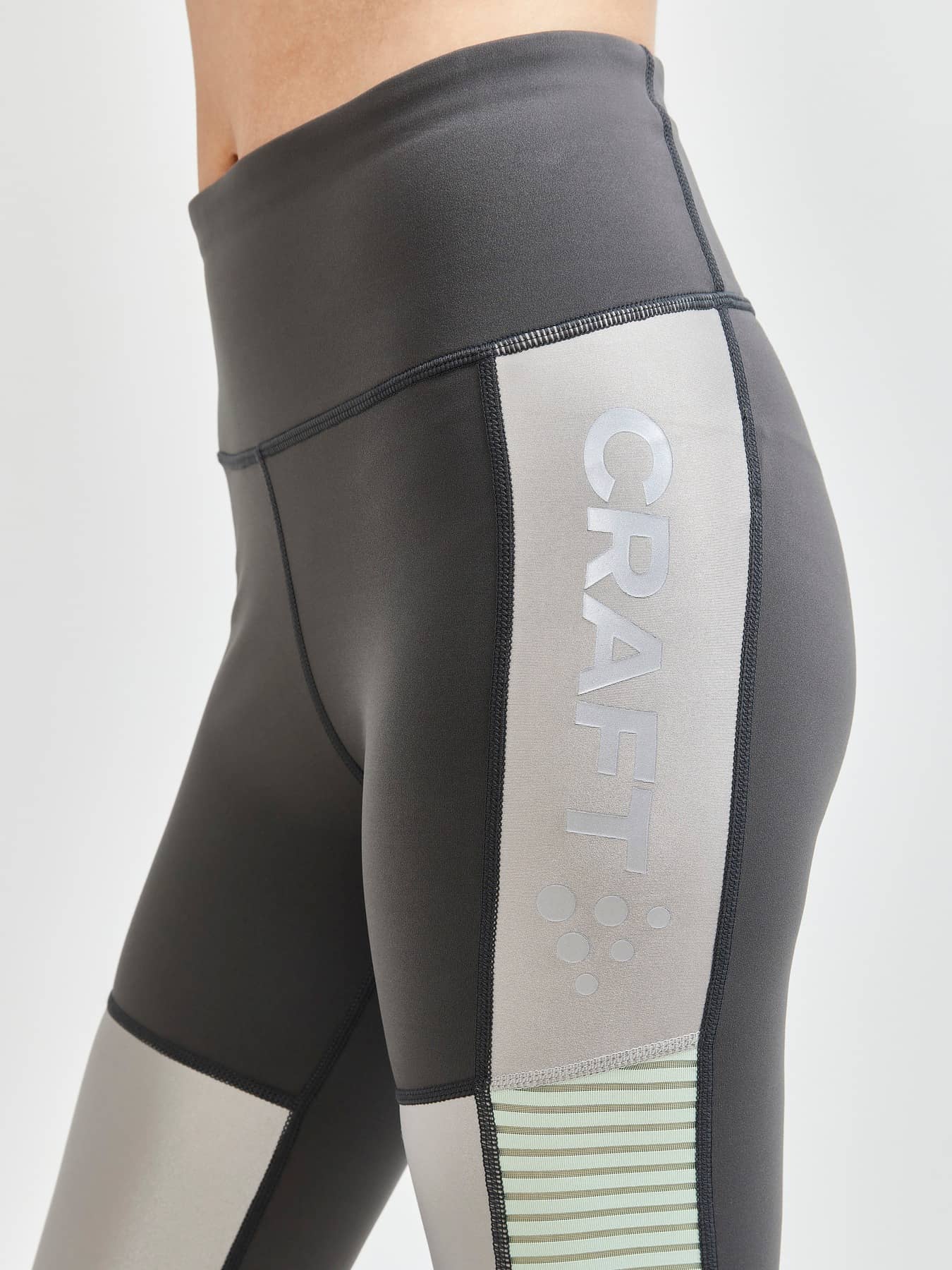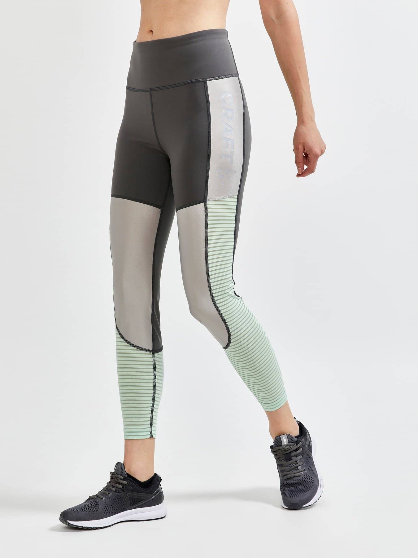 ADV Charge Shiny Tights are highly functional training tights with high waist designed for intense workouts. The training tights are made of shiny and matte jersey fabrics and feature an exceptionally thin, semi-transparent material at the sides and lower leg. In addition, the tights come with a wide waistband for optimal comfort and big Craft logo at left leg. Multi-training concept Charge is a multi-training concept that fuses high-intensity workouts with street fashion to make a bold statement at the gym, in the urban nature and elsewhere. - Functional jersey fabric made of polyamide, polyester and elastane - Thin, striped and semi-transparent fabric at sides and lower leg - High waist - Wide waistband - Big Craft logo at left leg