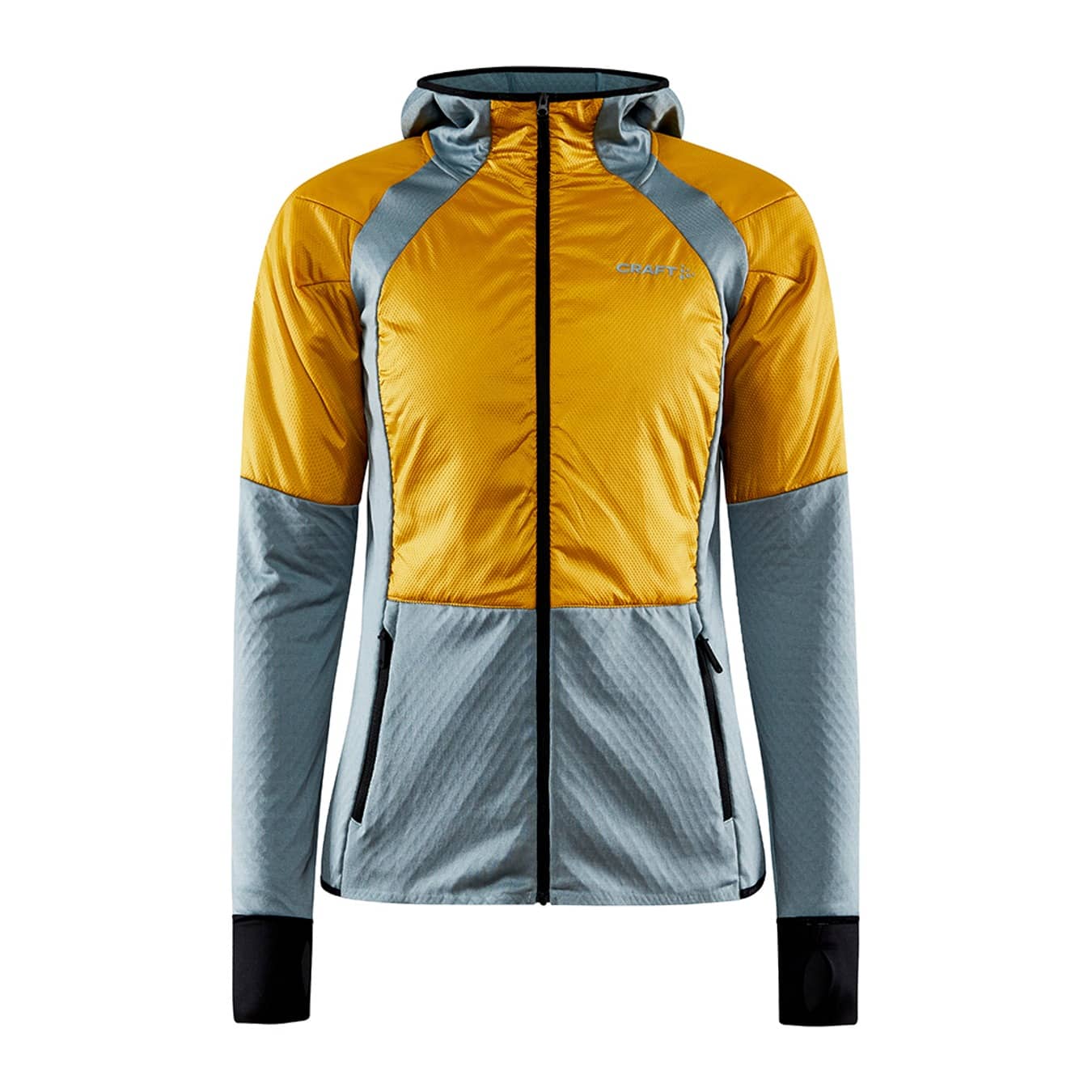 ADV Hybrid Thermal Midlayer is a versatile hybrid jacket that works perfect as an outer layer in milder temperatures or as a mid-layer underneath a shell jacket in colder conditions. The jacket features light-padded panels for extra warmth, jersey hood, two zip side pockets and thumbhole at sleeve ends. • Mix of woven material and knit jersey fabrics • Light-padded panels • Jersey hood • Contrast woven panels • Thumbhole at sleeve ends • Two side pockets with zipper