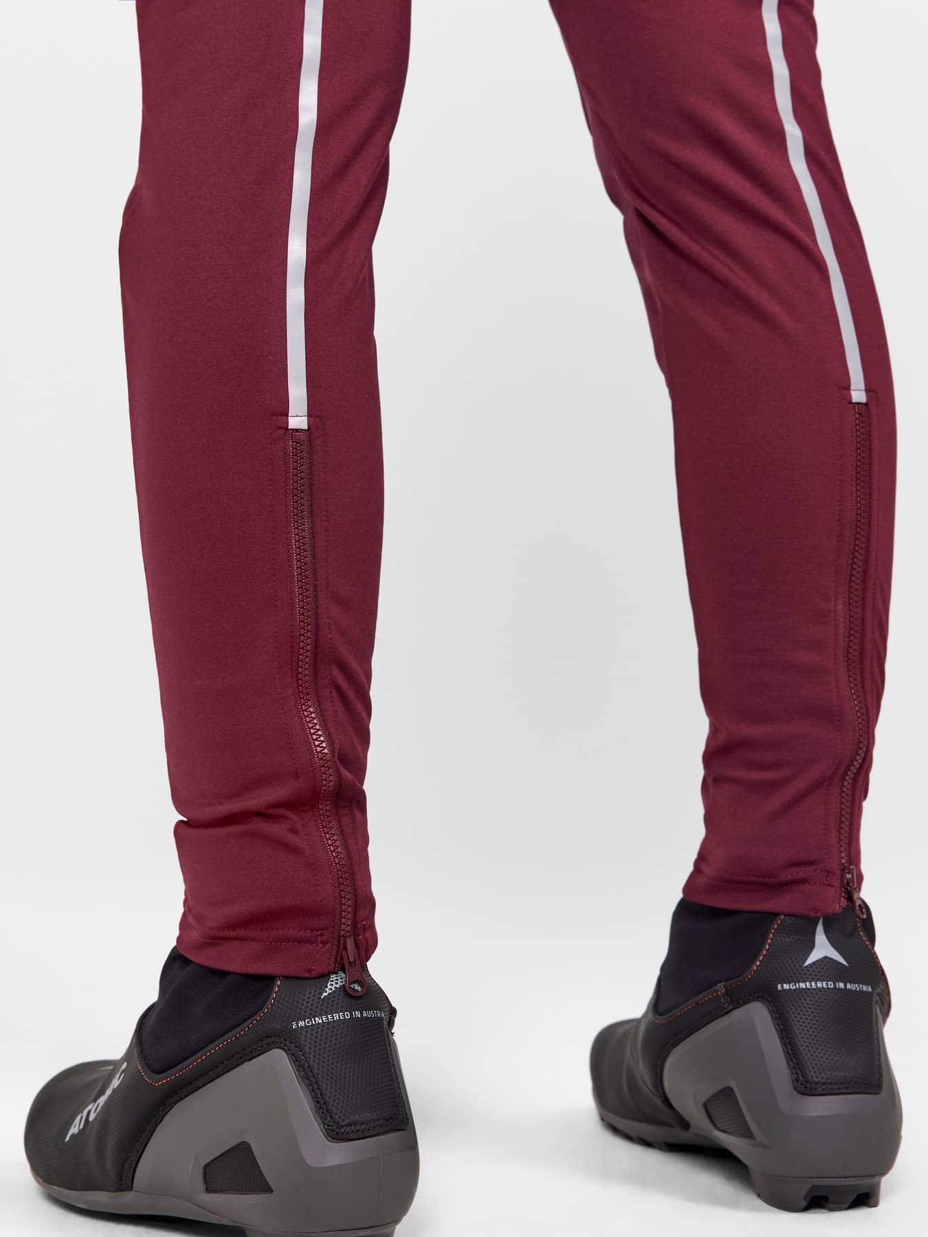 Pursuit Thermal Tights are bodymapped cross-country ski tights with a wind- and water-protective front, light padding at front and upper back, as well as brushed jersey at back for enhanced thermoregulation. The result is a functional garment that offers great weather protection and warmth during intense workouts in cold conditions. In addition, the tights feature shaped knees for freedom of movement, wide waistband and zipper at leg endings. - Wind- and water-protective fabric at front - Light padding at front and upper back - Brushed jersey at back - Pre-shaped knees - Wide waistband with brushed grid mesh inside - Zipper at leg endings