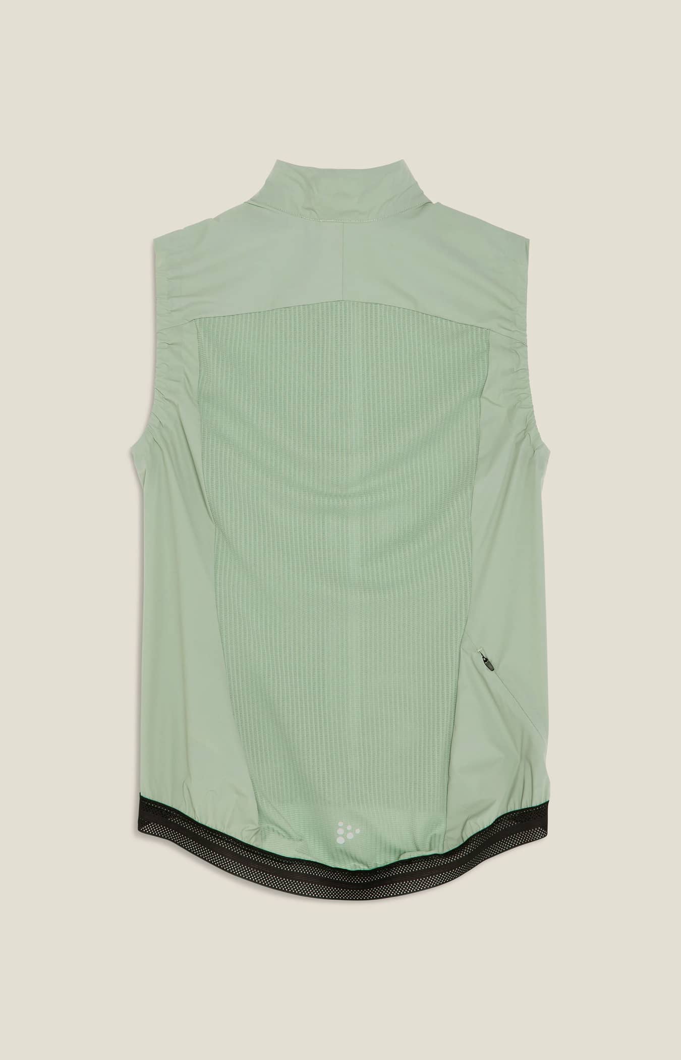 Made from highly functional, recycled materials, this technically advanced cycling vest features a ventilating and elastic mesh back, ensuring great fit and excellent body-temperature management during intense rides. In addition, elastic with silicone gripper at bottom hem keeps the vest in place, while reflective details offer enhanced visibility. Easily stowable in a bike jersey pocket.