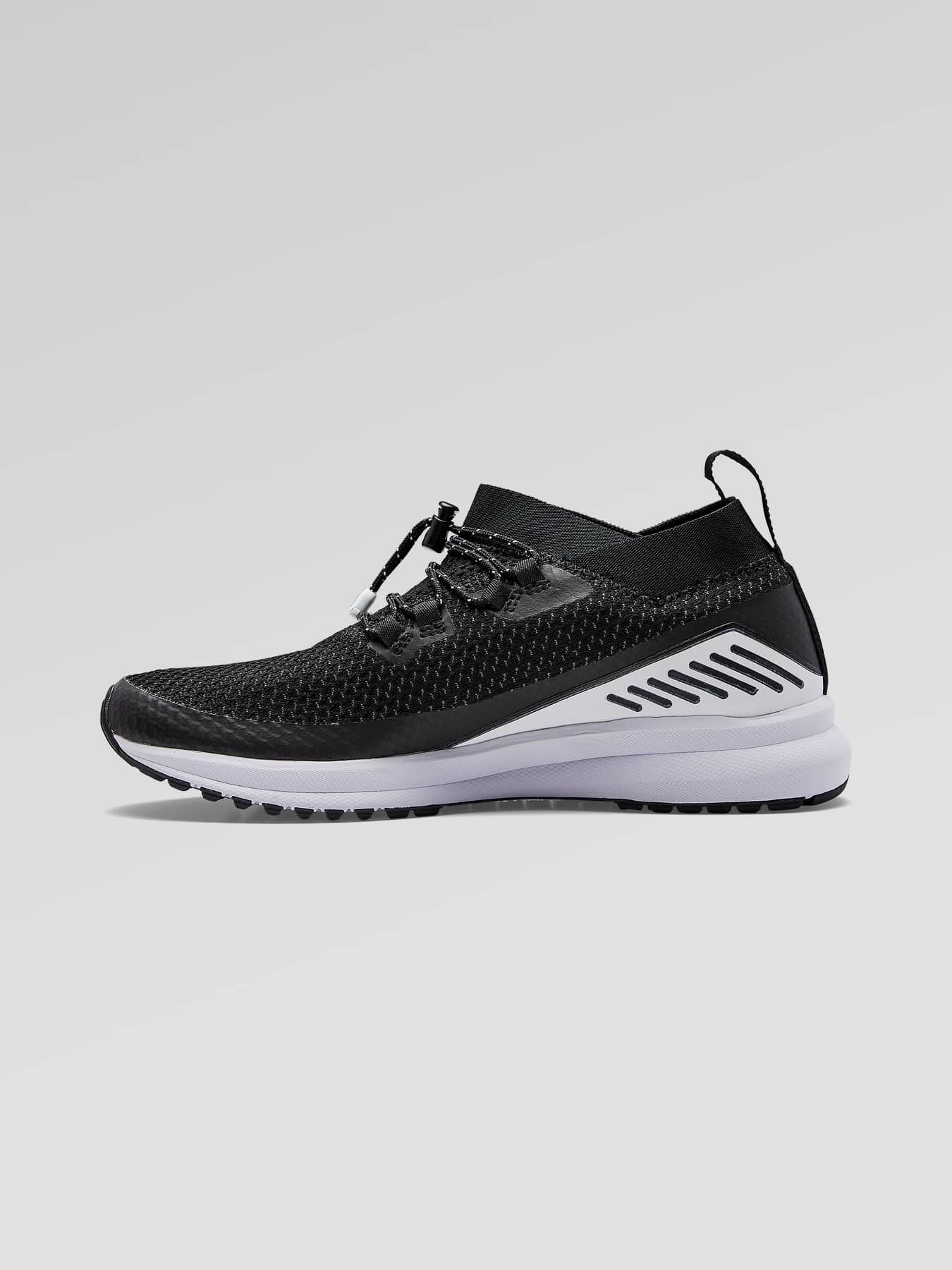 Fuseknit X II is a lightweight multi-purpose running shoe with seamless upper, great shock-absorption and explosive toe-off. The one-piece engineered Fuseknit upper provides an elastic sock-like fit for optimal comfort and performance, and also offers protection against the elements thanks to the tight knit and the toe guard. The shoe's excellent energy return, flex and support makes it a great choice for all kinds of workouts, including speed intervals and longer runs. Fuseknit Fuseknit combines seamless knitting technology with strategic seams to create a soft and supple construction. The result is fewer seams and a smooth, chafe-free and highly comfortable experience. - Engineered upper with seamless Fuseknit design and elastic sock-like fit - Elastic debris protection around ankle - X Support system provides optimal stability and fit with reinforced cords that wrap under the foot and behind the heel - Midsole made from a soft one-piece foam with inserts to perfectly activate the ride - the landing pad in the heel absorbs energy at heel strike while the launch pad at the forefoot returns energy - Isometric triangular lug patterning offers the ultimate in minimal traction - Flex grooves provide superior flexibility in the forefoot - Low decoupling in the heel to disperse energy through the entire stride - Speed lacing with toggle - Weight size UK5 245 g - Drop: 8.5 mm
