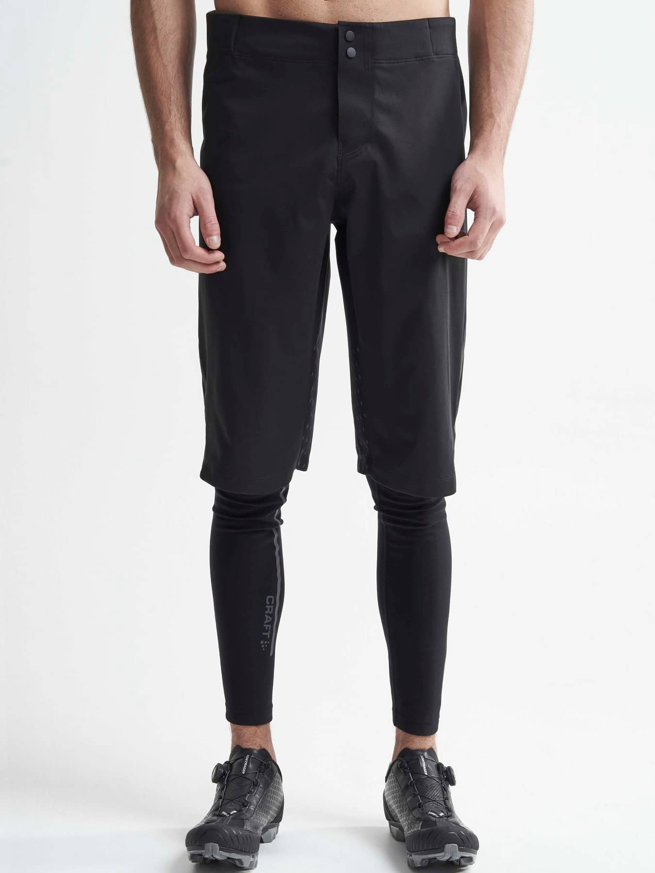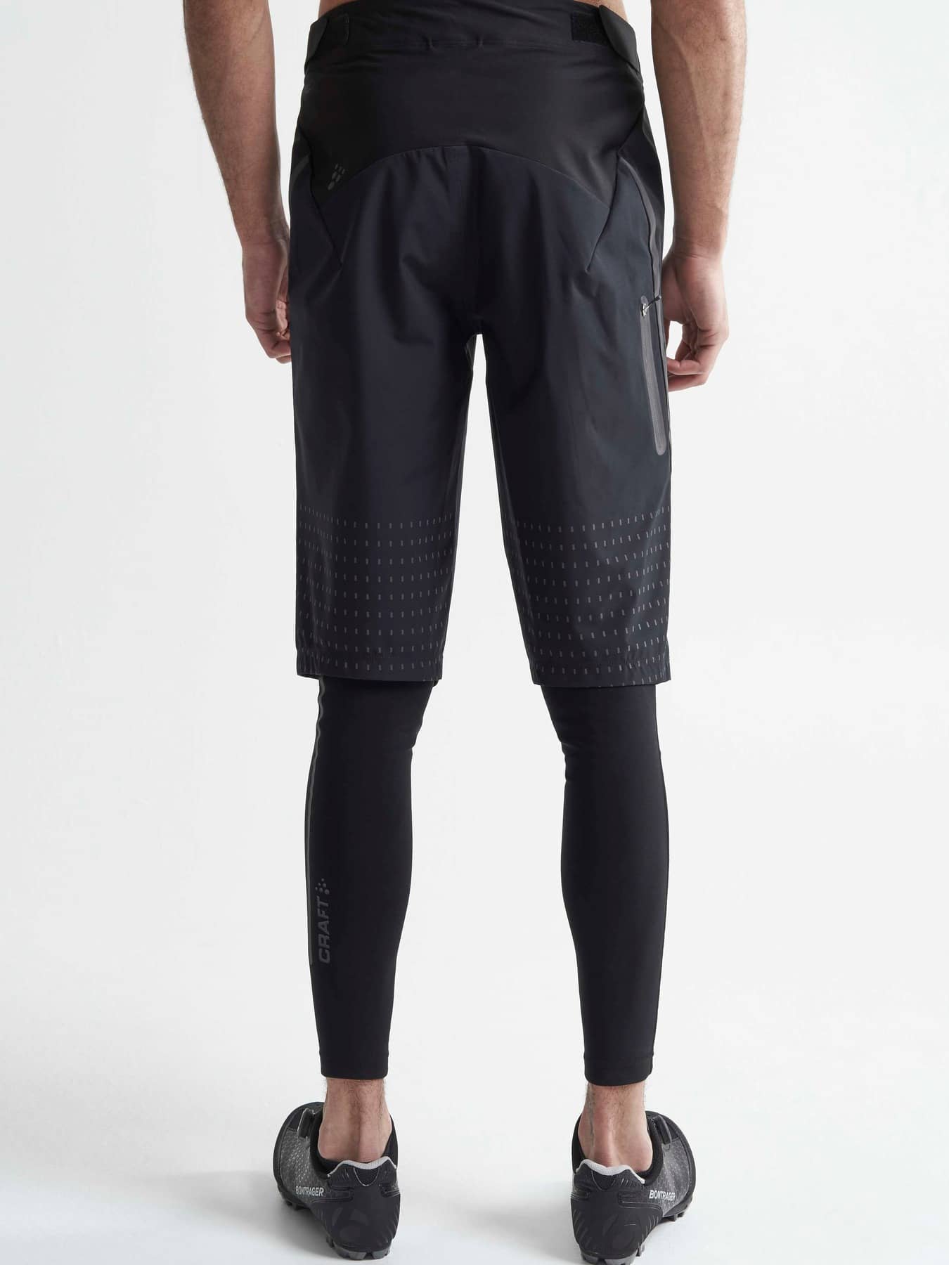 Hale Hydro Shorts are stretchy, durable and water-repellent mountain bike shorts. Made of highly functional and weather-protective fabric, the shorts provide excellent moisture transport, ventilation and protection during intense workouts on cold and wet autumn and winter days. In addition, the shorts come with Velcro adjuster at waist, press button closure at front and zip pocket at left leg. - Durable, windproof and water-repellent fabric (WP 10,000 and MVP 8,000) - Great stretch for enhanced freedom of movement - Elastic insert at back - Pocket at left leg with zipper - Velcro adjuster at waist - Press button closure at front - Reflective logos and taped details
