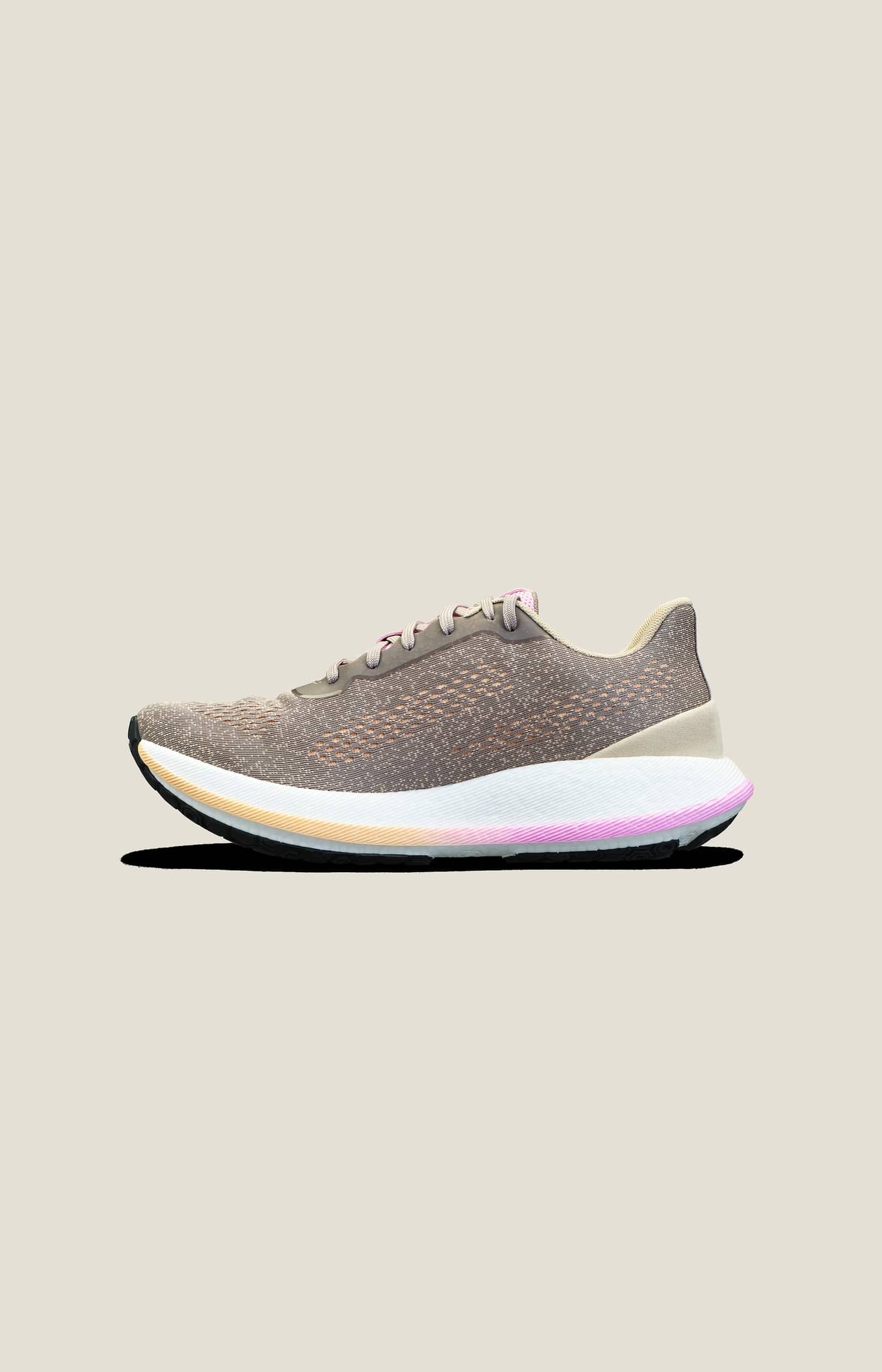 Introducing the Pacer, our most comfortable performance running shoe that provides exceptional bounce and stability for a smooth and speedy ride. An advanced performance running shoe that features a softer version of the successful Px Foam™ in the midsole, Pacer delivers a stable, smooth, and responsive ride with explosive rebound – perfect for speed training and every day running. Its lightweight construction provides a bouncy, energetic experience that propels you forward with each stride, while its minimal outsole design with hexagon lug pattern offers superior road traction for a secure grip on various surfaces. In addition, the upper is made from a lightweight and breathable material that provides a snug and stable fit. A sleek design and lightweight feel make the Pacer an ideal choice for runners seeking a fast, nimble shoe that won't weigh you down. Px Foam™ Px Foam™ is an ultra-lightweight midsole material that offers an exceptionally high amount of energy return while providing shock-resistance and flexibility. A single, natural foaming agent is used in making this green innovation without adding any chemical cross-linking agents. The process is non-toxic and environmentally friendly. In addition, raw and finished materials are completely reusable. The innovative foam has an extremely low density making it up to 20% lighter than traditional EVA. The reduced weight combined with explosive rebound make Px Foam™ perfect for every run. • One-piece engineered mesh upper, made from 50% recycled materials • Px Foam™ midsole: superior energy return • Contoured chassis for reduced weight and premium comfort • Weight: xxx grams in UK size 5 • Heel 39 mm, forefoot 33 mm • Drop: 6 mm