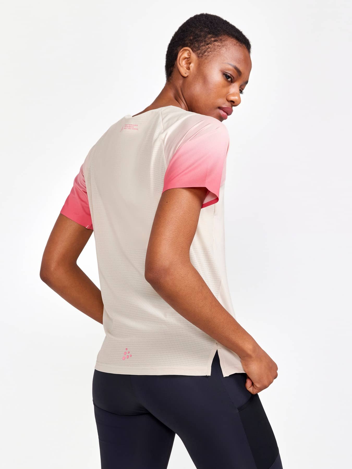 PRO Trail Tee is a pro-grade running tee engineered for high-intensity trail running. This high-performance running tee features a jacquard-knit jersey fabric with ripstop structure at front and woven stretch mesh at back for extra ventilation as well as protection against wear and abrasion from backpack use. The tee also comes with raglan sleeves and side slits for enhanced freedom of movement as well as taped sleeve ends and neck hole to avoid chafing. In addition, the garment features silicone print on the shoulders for a secure grip when carrying a backpack or hydration system during long runs. • Jacquard-knit jersey fabric with ripstop structure at front and sleeves • Woven stretch mesh at back • Taped sleeve ends and neck hole • Raglan sleeves • Side slits • Silicone print on the shoulders • Regular fit