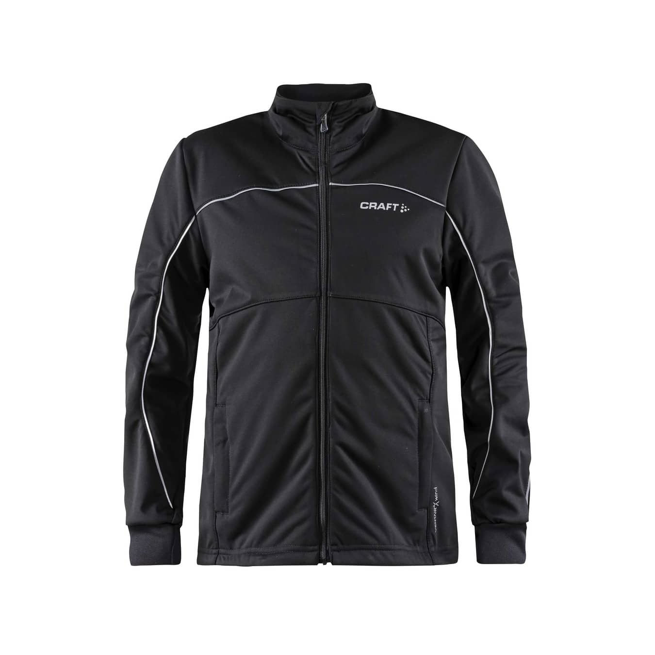 Warm, smooth and elastic fleece jacket with wind-protective front designed for warm-ups, cool-downs and low-intensity winter training in cold, windy conditions.