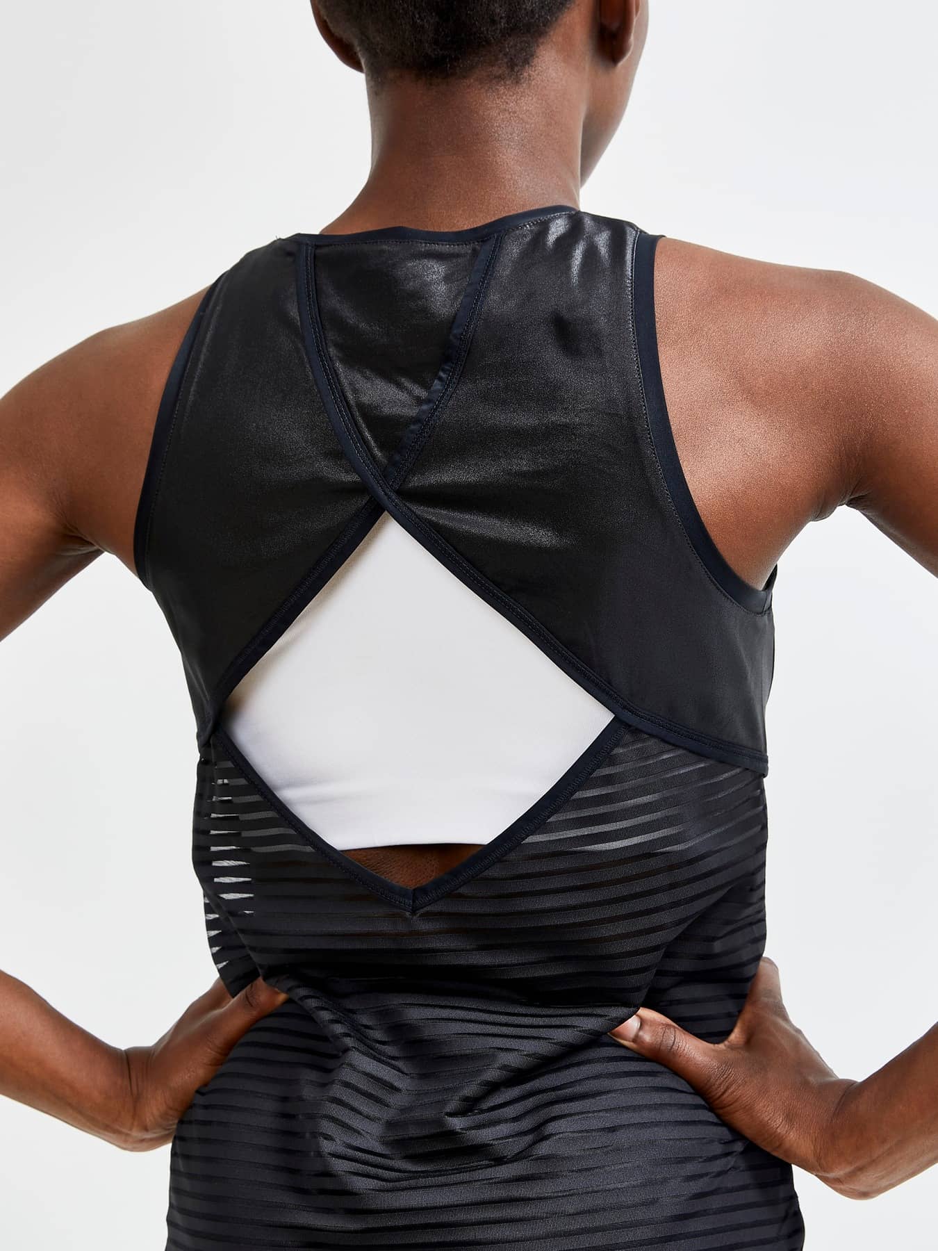 ADV Charge Shiny Singlet is a stylish training singlet that features a functional fabric at front and an exceptionally thin, semi-transparent material at back. Comes with an open back for enhanced ventilation. Multi-training concept Charge is a multi-training concept that fuses high-intensity workouts with street fashion to make a bold statement at the gym, in the urban nature and elsewhere. - Functional jersey fabric at front made of polyamide, polyester and elastane - Thin, striped and semi-transparent fabric at back - Opening at back