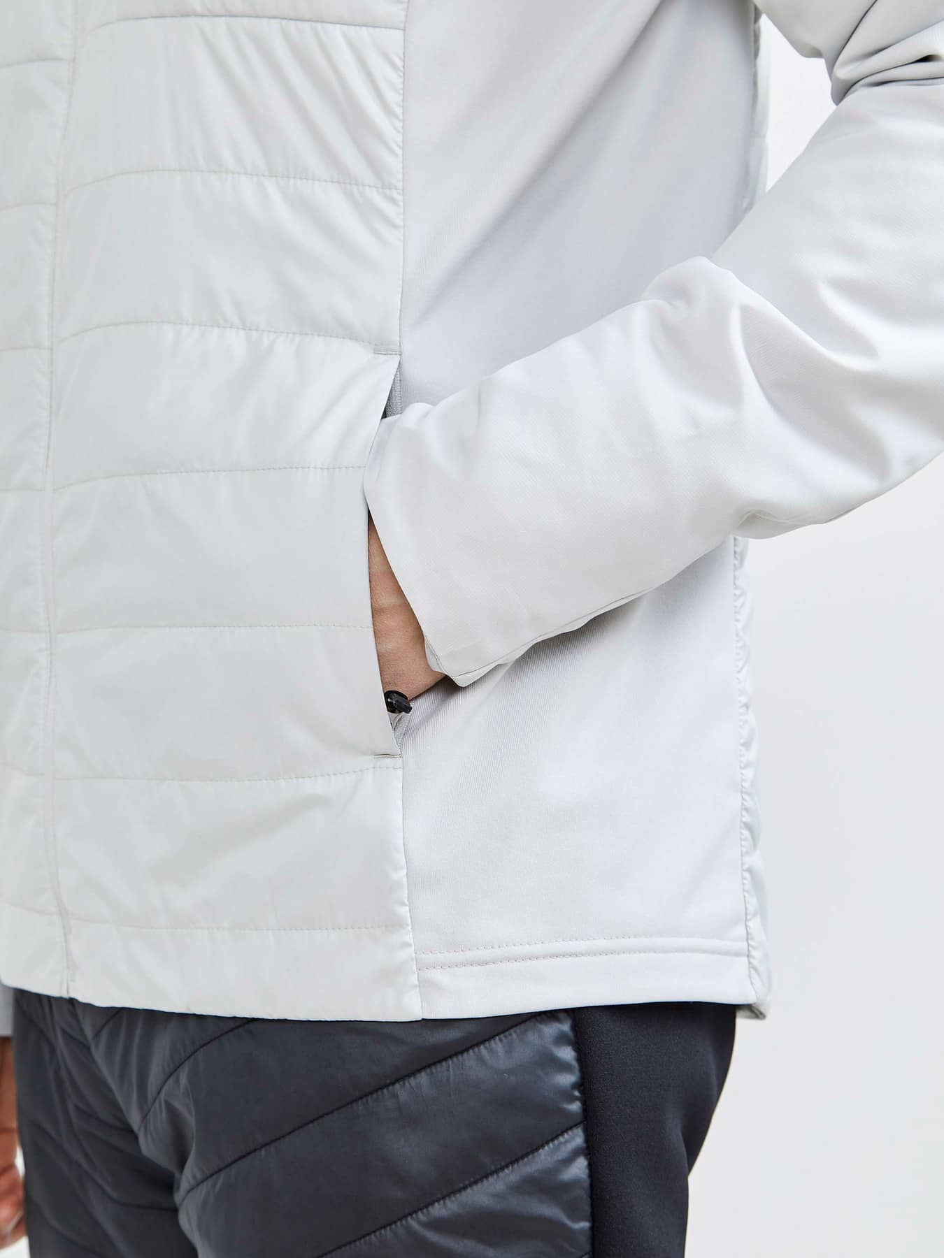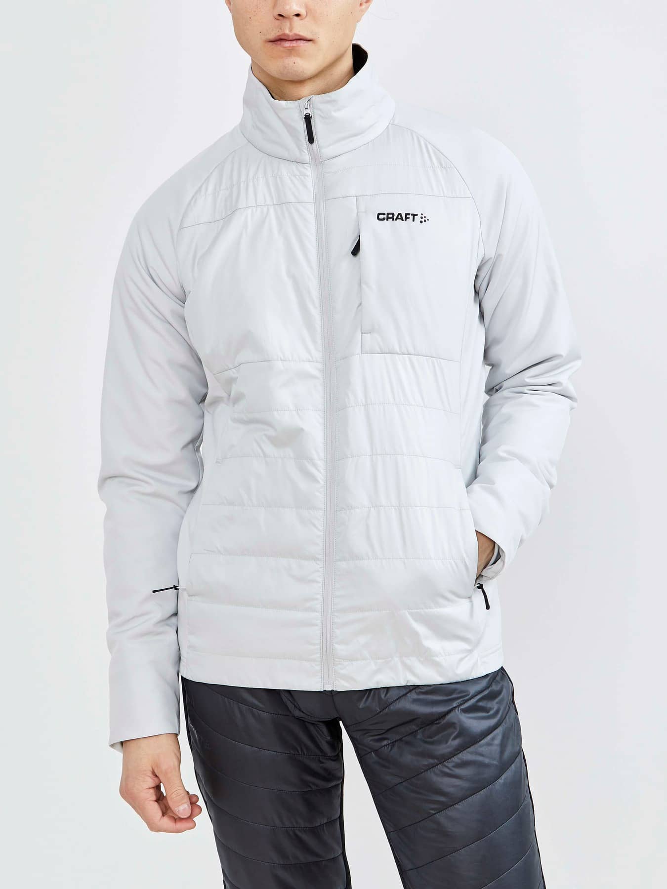 ADV Storm Insulate Jacket is a light-padded jacket developed for cross-country ski enthusiasts who keep on skiing even when the temperature drops and the wind blows fiercely across the tracks. This warm and stretchy cross-country ski jacket features light padding at body and sleeves, quilted wind- and water-resistant polyester at front and back as well as brushed jersey at sides for optimal ventilation. In addition, the jacket comes with elastic jersey at sleeve endings for snug fit around the wrists, brushed jersey at inside collar and two side pockets with zipper. - Light padding at body and sleeves (40 gsm) - Quilted wind- and water-resistant polyester at front and back (Durable Water Repellency) - Brushed, recycled jersey at sides for optimal ventilation - Elastic jersey at sleeve endings for snug fit around the wrists - Brushed jersey at inside collar for comfort to skin - Two side pockets with zippers - Regular fit