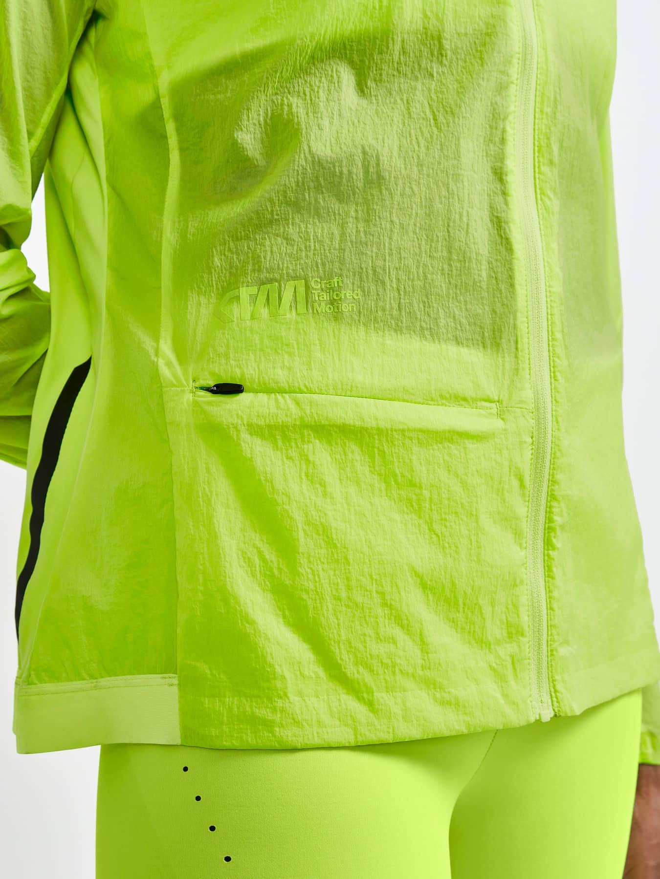 CTM Distance Jacket is een premium hardloopjack ontworpen voor atleten die niets dan het beste eisen. Dit hoogwaardige hardloopjack heeft lichtgewicht winddichte en waterafstotende polyamide aan de voorkant, stretch jersey aan de achterkant en lasergesneden perforaties aan voor- en achterkant voor een betere ademende werking. Het jack heeft ook afgeplakte reflecterende details en een zak met rits. CTM - het beste van het beste CTM staat voor Craft Tailored Motion en bevat de meest geavanceerde stoffen en de nieuwste innovaties voor de meest veeleisende atleten. Wanneer superieure beheersing van de lichaamstemperatuur, bewegingsvrijheid en een echt laag gewicht helemaal jouw ding is, dan is dit wat je zoekt. - Voorkant en mouwen in lichtgewicht wind- en waterafstotend polyamide materiaal - Lasergesneden perforatie aan de voor- en achterkant voor een verbeterd ademend vermogen - Jersey aan de achterkant van de mouwen en op het achterpand voor bewegingsvrijheid en ademend vermogen - Getapete reflecterende details - Elastische tape aan de mouwuiteinden en gripper aan de onderkant voor een goede pasvorm - Omgekeerde rits aan de voorkant - Een verborgen ritszak aan de voorkant